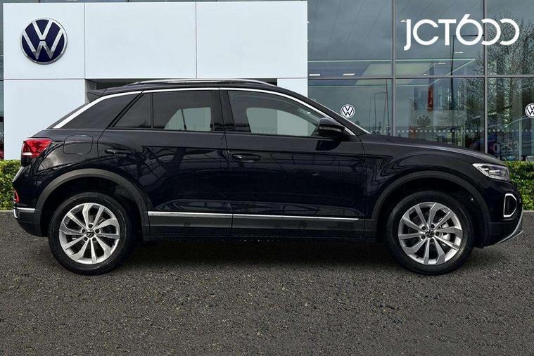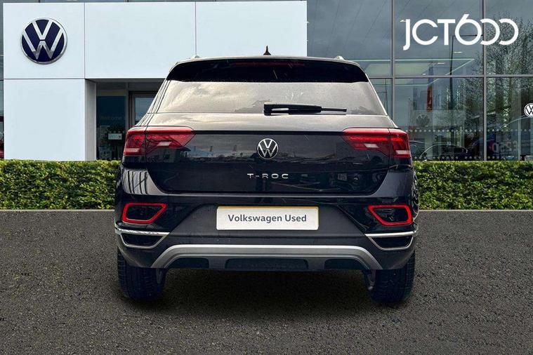 10.25" Digital cockpit pro, Advanced driver attention and drowsiness monitor, Emergency call service, Lane keeping system Lane Assist, Mobile phone interface, Modified key software - reduce switch off time for key status change to Long no motion, Online services, Park assist including front and rear parking sensors, Power assisted speed sensitive steering, Service interval indicator, Tailgate/trunk lid release from outside, Think blue trainer driver tips and journey analysis, Warning sound and light for front seatbelts unfastened, Wireless app connect, Wireless Smartphone charger, Battery regeneration during braking, Start/stop function with battery regeneration, DAB Digital radio, Diversity antenna for FM reception, Front and rear 6 speakers, Music playback - MP3, WMA and AAC files, Premium USB cable in choice of either Apple or Android smartphone compatibility, SD card slot, Simultaneous pairing of 2 compatible mobile devices, Title and cover art display, We Connect and We Connect Plus functionality, Auto dimming interior rear view mirror, Automatic hazard lights activation under emergency braking, Automatic headlight control with LED separate daytime running lights with coming/leaving home function, Body colour sports bumpers with silver metallic underbody fascia, Dynamic headlight range control with self adjusting whilst driving, Electrically adjustable and heated door mirrors, Extended roof spoiler, Exterior mirrors aspherical on driver side, convex on front passenger side, External USB type C socket and charging sockets, Front windscreen wiper with intermittent wipe and 4 position delay, Heated rear window, LED 3rd brake light, LED rear combination lamps, LED rear number plate lights, Light mode for poor weather, rain, fog or snow, Power windows with comfort operation and circuit breaker, Rain sensor, Rear exhaust tailpipe, Rear fog light on one side and reversing lights on both sides, Rear side wing doors, Rear wash/wipe with intermittent wipe setting, Remote electrically foldable door mirrors, puddle lights and reverse activated passenger's door mirror, 12V power socket in centre console, 3 rear head restraints, 3 seat bench in 2nd row, 4 load lashing points in luggage compartment, Air care climatronic air conditoning system with active combination filter and 2-zone temperature control, Chrome plated radiator grille inserts, air vent surrounds and light switch surrounds, Door and side trim panel with leatherette insert, Drawer under drivers seat, Front + rear carpet mats, Front centre armrest, Front comfort sports seats, Front cupholders x 2, Front footwell illumination, Front seat back storage pockets, Glove compartment door with light, Instrument lighting, white adjustable panel illumination, Interior ambient lighting and surround lighting, Interior light delay, Isofix child seat preparation, Leather gearshift handle, LED interior light with switch off delay/dimmer and 2 front/rear LED reading lights, Load-through provision with cup holder when folded down ('Unsplit rear seat bench, split folding backrest, with centre armrest), Luggage compartment lighting, Non-folding front passenger seat backrest, Single front passenger seat, Storage compartment in left and right luggage area, Storage compartment in rear doors, Storage compartments in driver and front passenger doors, Sunvisors with illuminated vanity mirrors, Variable boot floor, height adjustable and removable, Driver assistance pack without proactive passenger protection - T-Roc, 3 point height adj front seatbelts + pretensioners, 3 point seatbelts in outer rear with ECE label, ABS, Child locks on rear doors, City emergency braking and pedestrian monitoring, Driver and front passenger airbag with front passenger airbag deactivation, Driver and front passenger safety-optimised head restraints, Drivers seatbelt reminder, Electronic parking brake, Electronic Stability Control (ESC) inc EDL (Electronic Differential Lock) and ASR (Traction Control), Front and rear passengers curtain airbag system including front side airbags, Predictive pedestrian protection, Rear disc brakes, Two tone horn, Tyre pressure loss indicator, Volkswagen roadside assistance, Trims for alloy wheels,