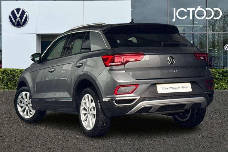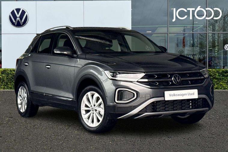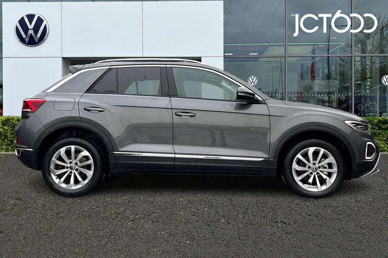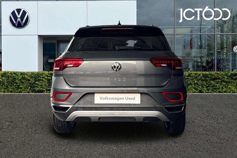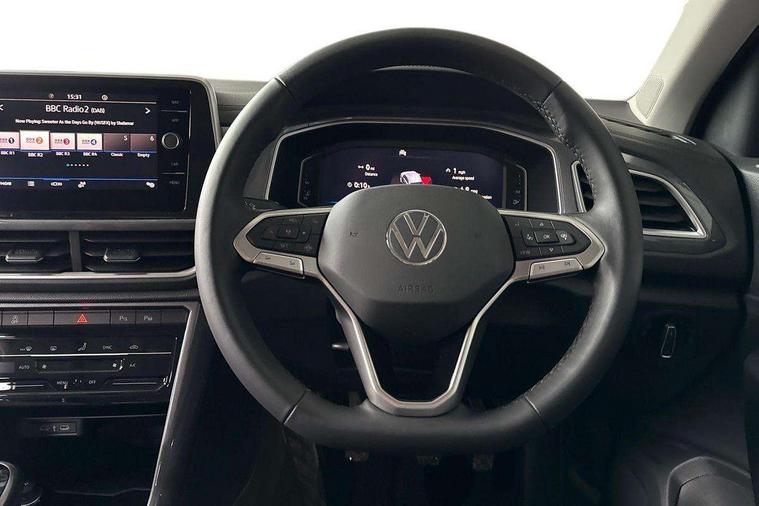 10.25" Digital cockpit pro, Advanced driver attention and drowsiness monitor, Emergency call service, Lane keeping system Lane Assist, Mobile phone interface, Modified key software - reduce switch off time for key status change to Long no motion, Online services, Park assist including front and rear parking sensors, Power assisted speed sensitive steering, Service interval indicator, Tailgate/trunk lid release from outside, Think blue trainer driver tips and journey analysis, Warning sound and light for front seatbelts unfastened, Wireless app connect, Wireless Smartphone charger, Battery regeneration during braking, Start/stop function with battery regeneration, DAB Digital radio, Diversity antenna for FM reception, Front and rear 6 speakers, Music playback - MP3, WMA and AAC files, Premium USB cable in choice of either Apple or Android smartphone compatibility, SD card slot, Simultaneous pairing of 2 compatible mobile devices, Title and cover art display, We Connect and We Connect Plus functionality, Auto dimming interior rear view mirror, Automatic hazard lights activation under emergency braking, Automatic headlight control with LED separate daytime running lights with coming/leaving home function, Body colour sports bumpers with silver metallic underbody fascia, Dynamic headlight range control with self adjusting whilst driving, Electrically adjustable and heated door mirrors, Extended roof spoiler, Exterior mirrors aspherical on driver side, convex on front passenger side, External USB type C socket and charging sockets, Front windscreen wiper with intermittent wipe and 4 position delay, Heated rear window, LED 3rd brake light, LED rear combination lamps, LED rear number plate lights, Light mode for poor weather, rain, fog or snow, Power windows with comfort operation and circuit breaker, Rain sensor, Rear exhaust tailpipe, Rear fog light on one side and reversing lights on both sides, Rear side wing doors, Rear wash/wipe with intermittent wipe setting, Remote electrically foldable door mirrors, puddle lights and reverse activated passenger's door mirror, 12V power socket in centre console, 3 rear head restraints, 3 seat bench in 2nd row, 4 load lashing points in luggage compartment, Air care climatronic air conditoning system with active combination filter and 2-zone temperature control, Chrome plated radiator grille inserts, air vent surrounds and light switch surrounds, Door and side trim panel with leatherette insert, Drawer under drivers seat, Front + rear carpet mats, Front centre armrest, Front comfort sports seats, Front cupholders x 2, Front footwell illumination, Front seat back storage pockets, Glove compartment door with light, Instrument lighting, white adjustable panel illumination, Interior ambient lighting and surround lighting, Interior light delay, Isofix child seat preparation, Leather gearshift handle, LED interior light with switch off delay/dimmer and 2 front/rear LED reading lights, Load-through provision with cup holder when folded down ('Unsplit rear seat bench, split folding backrest, with centre armrest), Luggage compartment lighting, Non-folding front passenger seat backrest, Single front passenger seat, Storage compartment in left and right luggage area, Storage compartment in rear doors, Storage compartments in driver and front passenger doors, Sunvisors with illuminated vanity mirrors, Variable boot floor, height adjustable and removable, Driver assistance pack without proactive passenger protection - T-Roc, 3 point height adj front seatbelts + pretensioners, 3 point seatbelts in outer rear with ECE label, ABS, Child locks on rear doors, City emergency braking and pedestrian monitoring, Driver and front passenger airbag with front passenger airbag deactivation, Driver and front passenger safety-optimised head restraints, Drivers seatbelt reminder, Electronic parking brake, Electronic Stability Control (ESC) inc EDL (Electronic Differential Lock) and ASR (Traction Control), Front and rear passengers curtain airbag system including front side airbags, Predictive pedestrian protection, Rear disc brakes, Two tone horn, Tyre pressure loss indicator, Volkswagen roadside assistance, Trims for alloy wheels,