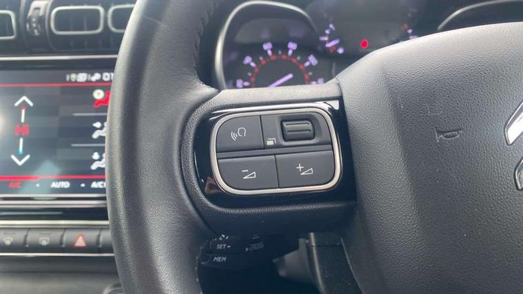 9" Touchscreen display, Citroen connect box emergency and assistance system, Citroen Connect Nav with 3D navigation, Coffee Break Alert, Cruise control with speed limiter, Driver instrument cluster including trip computer and rev counter with white text LCD display and white needles and chrome decor, eCall emergency call system, Engine start button, Lane departure warning system, Mirror screen with Apple CarPlay and Android auto, Outside temperature sensor, Rear parking sensors, Tailgate, Top rear vision reversing camera, Traffic signs and speed limit recognition and recommendation, Variable assistance power steering, Voice recognition for radio, navigation and telephone features, Bluetooth hands free and media streaming with USB socket, Citroen connected DAB radio with 6 speakers, Steering wheel mounted controls for stereo and telephone, 3D effect LED rear lights, Automatic Eco LED headlights, Automatic lights and windscreen wipers, Black roof bars, Body colour painted door handles, Chrome chevrons front grille, Electric front windows + one touch + anti-pinch, Electric rear windows with one touch/anti-pinch, Electrically adjustable door mirrors, Electrically folding door mirrors, Electrochrome rear view mirror, Fog lights integrated into front bumper, Front and rear body coloured bumpers, Heated door mirrors, Heated rear window, Integrated roof spoiler, LED daytime running lights, LED third brake light, Painted door mirrors to match colour pack, Rear side wing doors, Rear wiper, Roof aerial, Tinted rear windows and rear quarterpanel glass, Variable front intermittent wipers, 12V socket in front, 12V socket in rear of vehicle, 60/40 split folding rear seats with sliding rear bench, centre armrest and ski flap, Automatic air conditioning, Boot light, Central adjustable armrest on drivers seat, Centre console with closed storage and chrome insert, Driver and front passenger cup holders, Driver and passenger sunvisor with courtesy mirror, Flex load/Pull out boot floor, Front and rear courtesy reading lights, Front and rear door storage, Front head restraints, Front passengers seat flat folding, Glovebox with closable lid, Height adjustable driver's seat, Height and reach adjustable steering wheel, Integrated retractable rear side window sun blinds, Leather steering wheel with satin chrome inserts and radio controls, Manual handbrake with chrome insert, Passenger compartment headlight adjustment, Rear isofix mounting points (outside seats) with top tether, Row 2 - Three seats with individually adjustable head rests, Satin chrome interior door handles, Single front passenger seat, 3 point, height adjustable, pre tensioned front seatbelts, ABS with Electronic brakeforce distribution and Emergency braking assistance, Active safety brake including Forward collision warning, Automatic illumination of hazard warning lights, Curtain airbags, Driver airbag, Drivers/passengers and rear seats unfastened seat belt warning, ESC (Electronic Stability Control), Front lateral airbags, Front passenger airbag, Front passenger airbag deactivation switch, Hill start assist function, Mono-tone horn, Rear door child safety locks, Three 3 point rear seatbelts, Tyre pressure monitor, Automatic door and boot locking when moving off with automatic unlocking in case of impact, Automatic locking of the vehicle (after 30 seconds if door or boot unopened), Immobiliser, Keyless entry and keyless start, Perimetric and volumetric anti theft alarm, Remote central locking + deadlocks, Vehicle locater function (headlights illuminate when button on key pressed), Satin chrome air vent decors,
