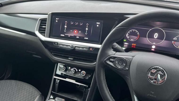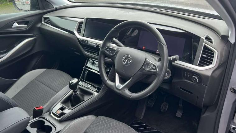 12" colour digital cluster, 180 degree rear view camera, Central facia display with digital clock, outside air temperature and audio information, Cruise control with speed limiter, Digital fuel gauge with low fuel level warning light, Digital rev counter, Digital speedometer, Digital water temperature gauge with warning light, Driver drowsiness alert system, Driver information - Total mileage, service indicator, oil life, Gearshift up/down indication light, Lane departure warning system, Lane keep assist, Lights on audible warning, Multi function trip computer - Trip odometer, vehicle range, average speed and fuel economy, instantaneous fuel economy and driving time, Multimedia navi pro with 10" colour touch+ sat nav+AM/FM/DAB radio, bluetooth audio streaming/mobile phone portal, Apple carplay/Android auto, USB, Speed sensitive electric power assisted steering, Speed sign recognition, Vauxhall connect including Ecall and connected services, Six speaker - four front + two rear, Steering wheel mounted audio/phone/cruise controls, 3rd brake light, Automatic lighting control, Automatically dimming anti dazzle rear view mirror, Black door mirrors, Black side window trim, Body colour door handles, Carbon black door claddings, Collapsible windscreen wipers, Dark tinted rear side and tailgate windows, Door mirror puddle light, Door to door illumination, Electrically adjustable and heated power door mirrors (wide-angle on drivers side) with automatic timed cut-off, Electrically operated front and rear windows with safety auto reverse and one touch up/down facility, Front/rear bumper and wheel arches in carbon black exterior color, GRANDLAND Carline name badge in - High gloss black, Hazard warning lights, Heated rear screen with timed cut off, High beam assist, High gloss black protective front and rear skid plates with C shape bumper inserts, High gloss black roof rails, High level centre rear brake light, Intermittent rear window wash/wipe, LED daytime running lights, LED Headlights, LED tail lights, Manual headlight beam levelling, Rain sensor windscreen wipers, Rear side wing doors, Rear spoiler, Reversing light, Shark fin aerial, Side protection mouldings, Side window demist vents, Soundproof insulated windscreen, Tinted windows, Upper and lower bumper design, Vauxhall brand griffin badge in front and rear in high gloss black, Vauxhall plate door sill cover, Vizor front grille, Welcome lighting, Windscreen demist vents, 12V electrical accessory socket in front, 3 bench rear seats in 2nd row, 3 spoke flat bottom leather steering wheel with satin chrome effect bezel, 4 way electric driver lumbar support, 4 way manual adjustable driver seats with height, reach and backrest, 60/40 split folding rear seat, Advanced predictive logic control system using a sun sensor, Ambient centre console downlighter, Anti submarining ramps in front seats, Automatic air direction and fan speed with manual override, Black premium leather-effect side bolsters, Charcoal filter, Chrome effect interior door handles, Cosmo 1 Harlekin curitiba seats, Covered storage compartment in centre console and in driver armrest, Driver ergonomic active front seat, Driver's centre armrest, Dual zone electronic climate control, Four adjustable facia vents, Front door pockets with 2.6 litre capacity, Front passenger seat, Front passenger seat cushion extension, Front passenger sport style seat, Grey headliner, Height adjustable headrests, Illuminated controls, Illuminated driver/passenger sunvisors, Illuminated luggage area + Ambient lighting in front doors, Interior courtesy light operated by door switches, ISOFIX on front passenger and rear outer seats, Luggage compartment cover, Reach + rake adjustable steering column, Rear centre seat head restraint, Rear door pockets with 1.8 litre capacity, Rear passenger compartment heating ducts, Rear reading lights, Two drinks holders in centre console, Ventilated glovebox with lid, 6 Airbags - Driver and passengers front airbag, two front side impact airbag, full size curtain airbags for driver, Anti-lock braking system (ABS), Automatic emergency braking system, Child proof locks on rear doors, CSC - Cornering stability control, Deactivation switch for front passenger front and side impact airbags, Deflation detection system, Deformation zones front and rear, Dual seatbelt pretensioners on front seats, EBD - Electronic brakeforce distribution, Electronic parking brake, Electronic stability program (ESP) including traction control, Energy absorbing steering column, Engine drag torque control, Hill start assist, Hydraulic Brake Assist (HBA), Inertia reel lap and diagonal seatbelts for all seats, Load limiters on outer rear seatbelt retractors, Rear restraint seat belt pretensioner, Reinforced passenger safety cell, Side impact protection beam, Smart seatbelt reminder for front and rear seats, Tyre pressure monitoring system, Deadlocking system, Electronically protected audio equipment, Engine deadlock immobiliser, Freewheeling door locks, Key left in ignition audible warning, Locking wheel nuts, One rigid one flap-key coloured, Remote control central locking activation switch on driver door, Remote control primary foldable and additional foldable key, Remote security alarm system, Self powered alarm horn, Single horn, Theft deterent body security content and electircal child lock system, Theft deterent electrical, Visible vehicle identification number, Black door panels with black premium leather effect inserts, Dax decor facia panel with palladium medium finish, 18" 5 twin spoke high gloss black alloy wheels, Tyre inflation kit,