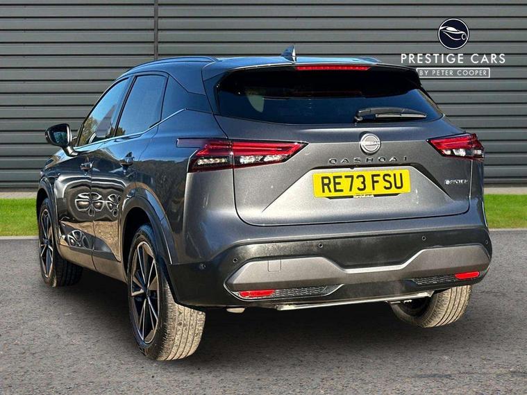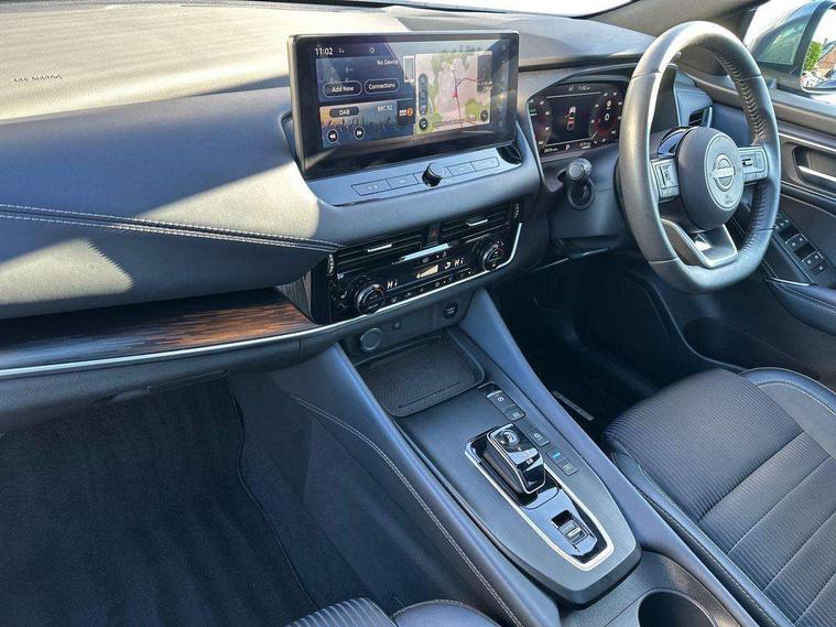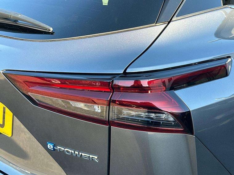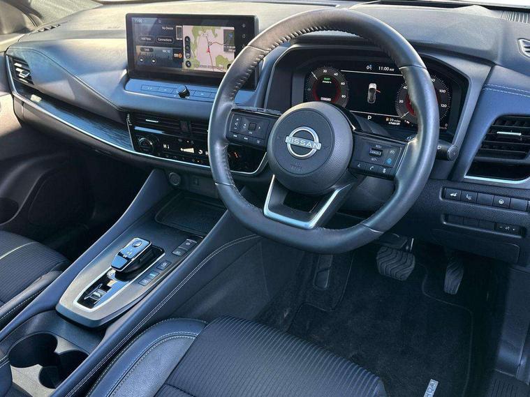 Advanced windscreen head up display, Blind spot warning, Drive modes (sport, normal, eco), e-Pedal step, Electric speed sensitive power steering, Emergency and breakdown call, Front and rear parking sensors, Full Digital 12.3" TFT Digital Combimeter, Google maps services - search, weather, 3D maps and Google street view, Hands free power tailgate, Idle stop/start system, Intelligent around view monitor, Intelligent Cruise control (ICC), Intelligent driver alert system, Intelligent forward collision warning, Intelligent lane intervention, Lane departure prevention, Lane departure warning system, Lane keep assist, Moving object detection, Nissan connect 12.3 inch touchscreen infotainment system, Nissan connect navigation, ProPILOT with Navi-Link, Push button starter, Rear cross traffic alert, Rear view camera, Remote control services - door locks, lights, horn and car locator, Telematics - notifications and connectivity services, TomTom live traffic services, Traffic sign recognition with legal speed adjustment, Trip computer, Virtual personal assistant and firmware over the air capability, Wireless Apple CarPlay and wired Android Auto, Wireless charging pad, 6 speakers, AM/FM audio system with DAB, Bluetooth audio streaming, Front USB connections (Type-A and Type-C), Rear USB charging only ports (Type-A and Type-C), Auto dimming rear view mirror, Auto rear wiper when reversing, Automatic hazard signal with emergency stop signal, Body colour mirror caps, Body coloured door handles, Bodyside mouldings, Chrome side window finisher, Door handle with button, e-POWER badging, Electric auto folding door mirrors, Electrically adjustable and heated door mirrors with LED turn indicator, Follow me home headlights, Front and rear LED turning signals, Headlights auto levelling system, Intelligent auto headlights, LED 3rd brake light, LED daytime running lights, LED headlights with adaptive driving beam, LED rear lights, One touch front and rear electric windows with remote opening and closing, Partially body coloured bumpers, Privacy glass, Rear bumper with graphite insert, Rear reversing light (bulb lighting), Rear roof spoiler, Rear side wing doors, Rear styling plate, Shark fin antenna, Splash free rain sensing wipers, Super UV and infrared cut glass, Thermaclear heated windscreen, Three blink turn signal, 12v power socket in dashboard and luggage, 2x Rear coat hooks, 3 bench rear seats in 2nd row, 3 rear headrests, 4 folding assist grip, 6 Luggage hooks - 4 on floor, 2 on side, 60/40 split folding rear seat bench, Ambient lighting around centre console, Ambient lighting in front doors, Centre console storage tray, Chrome interior door handles, Cloth/syntech leather monoform upholstery, Dark black/blueish PVC wrapping, Dark headlining, Driver and front passenger sunvisors with illuminated vanity mirrors, Driver seat back pocket, Dual zone automatic climate control with pollen filter, e-POWER shifter, Electrically adjustable driver seat, Electrically adjustable lumbar support for driver, Front and rear door storage, Front centre console and armrest, Front cupholders x 2, Front door with bottle holders, Glovebox with light, Hard trunk cover, Heated front seats, Heated steering wheel, Height adjustable driver's seat, Height adjustable front headrests, Height adjustable passenger seat, Leather steering wheel, Luggage board system, Luggage space lighting, Manual lumbar support on passenger seat, Manually adjustable passenger (slide recline + lifter), Multifunction steering wheel, Passenger seat back pocket, Rear armrest with 2 cupholders, Rear door bottle holders, Single front passenger seat, Soft PVC kneepad, Steering wheel switches, Tilt/telescopic adjustable steering wheel, Two rear isofix child seat anchorage points with top tether, Welcome light and doors with console tray ambient lighting, Glass roof pack with roof rails - Qashqai, 3x3 point rear seatbelt pretensioners + load limiters, ABS with EBD and brake assist, Active brake limited slip, Auto hold function, Child locks on rear doors, Curtain and front side, far side airbags, Driver and passenger airbags, Driver, passenger and 2nd row rear seat belt reminder, Electronic parking brake, Front seatbelt pretensioners + load limiters, Height adjustable front seatbelts, Hill start assist, Intelligent blind spot intervention, Intelligent front emergency braking with pedestrian, cyclist recognition and junction assist, Intelligent rear automatic braking, Tyre pressure monitoring system, Vehicle dynamic control, Capless fuel filler, Engine immobiliser, Intelligent Key, Remote central door locking with deadlocking, Thatcham Cat.1 alarm, Interior instrumental panel C finisher, 19" Diamond cut alloy wheels, Tyre puncture repair kit,