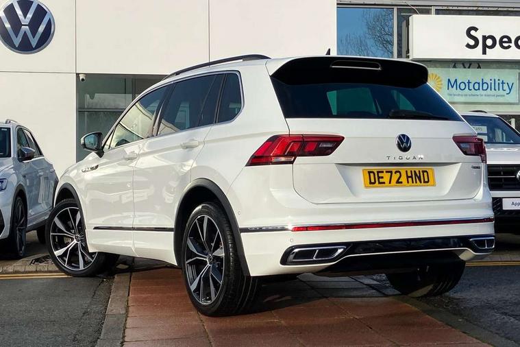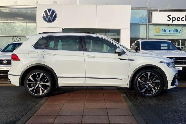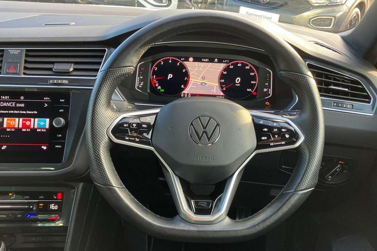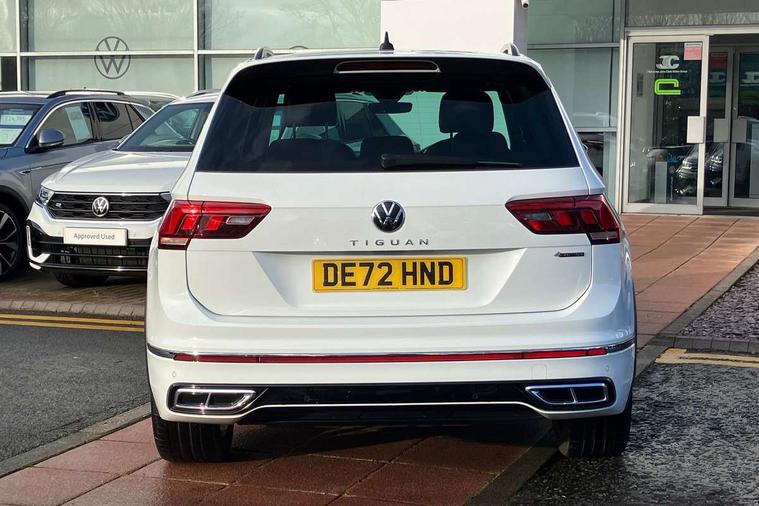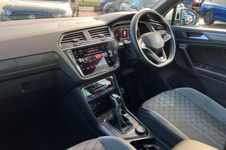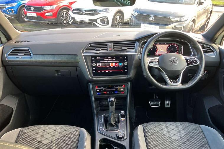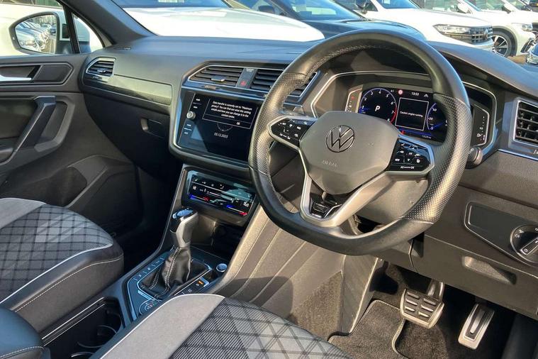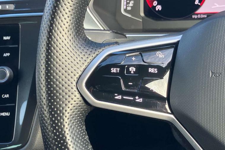 Adaptive cruise control ACC stop and go including speed limiter, App-Connect incl. App-Connect Wireless for Apple CarPlay and Android Auto, Bluetooth phone integration system, Distance control assist, Driver alert system, Driver profile selection, Dynamic road sign display, eCall emergency call system, Electromechanical speed sensitive power steering, Engine start/stop button, Lane keeping system Lane Assist, Lights on warning, Multifunction front facing camera, Outside temperature display, Premium multifunction display with multi colour display, Remote control boot opening, Rev counter, Revision / skills operating concept travel assistant, Service interval indicator, Speed limit display, Start/stop system with regenerative braking, Trip computer, Warning sound and light for doors and tailgate open, All wheel drive - 4Motion, Battery regeneration during braking, XDS electronic differential lock for improved traction and handling, 4 X 20 watt output, 8 Speakers, Diversity antenna for FM reception, Radio, SD card slot, Simultaneous pairing of 2 compatible mobile devices, SMS functionality - read, compose and send SMS messages using touch-screen display, Title and cover art display, USB C ports, Auto dimming interior rear view mirror, Automatic headlight control system, Body colour door handles, Chrome moldings on the side windows, Coming/leaving home lighting function, Dynamic headlight range control, Front and rear electric windows, Heated rear window, High level 3rd brake light, Laminated safety glass windshield, heat and sound insulating, LED headlamps with LED separate daytime running light and dynamic cornering light, LED rear combination lamps, LED rear number plate lights, License plate carrier in front and rear, Poor weather light and cornering light, R Line body kit, R Line side sills, Rain sensor windscreen wipers, Rear exhaust tailpipe, Rear fog lamp, Rear side wing doors, Rear spoiler in R style, Rear windscreen washer and wiper with interval delay, Side and rear windows in heat insulating glass, Trailer Stability Programme, Unique R Line badging, Windscreen wipers/ intermittent wipe + 4 position delay, 12V outlet in center console rear and in luggage compartment, 12V outlet in front and tray, 2 cup holders in front, 2 LED front reading lights, 2 LED rear reading lights, 3 bench rear seats in 2nd row, 3 rear headrests, 4 load lashing points, 40:20:40 split folding rear seats, Air Care Climatronic 3 zone automatic climate control with enhanced air filter and controls in the rear, Backrest release for left front seat, Black headlining, Brushed stainless steel pedals and footrest, Carpet mats in front and rear with decorative stitching in Gray, Climate control unit rear with touch function, Door and side trim panel in foam film, insert in leatherette, Front centre armrest, Front footwell illumination, Front seats head restraints (x-adjustment), Height adjustable front seats, Height/reach adjust steering wheel, Instrument lighting white adjustable panel illumination, Interior light with delay, Isofix Preparation 2 Rear child seats, Leather gear knob, Lockable cooled glovebox, Luggage compartment lighting, Luggage net, Rear bench seat asymetrically split folding, longitudinally movable and folding with load-through hatch and center armrest, Remote unlocking for rear seat backrest, Removable luggage cover, Removable rear headrests, Safety optimised front head restraints, Single front passenger seat, Sliding/reclining rear seats, Standard rear seat release, Storage compartment in driver's door, Storage compartment in passenger's door, Storage compartment in rear doors, Storage compartments in luggage area left and right, Storage tray on dashboard, Sun visors with illuminated vanity mirrors, Top front comfort seats, Variable boot floor, height adjustable and removable, Driver assistance pack plus - Tiguan DSG, 3 point seat belt for centre rear seats, 3 point seat belts with seat belt pretensioners for the outer rear seats, Active bonnet, Curtain airbags for front and rear passengers, Driver/Front Passenger airbags, Drivers knee airbag, Electronic parking brake with auto hold, Electronic Stability Control with driver steering recommendation, ABS, ASR, EDL, EDTC and trailer stabilization, Front assist with autonomous emergency braking (for Adaptive Cruise Control ACC up to 130 mph), Front disc brakes, Front passenger airbag deactivation, Front side airbags, Height adjustable front 3 point seatbelts + pretensioners, Hill hold control, Manual child proof rear door locks, Pedestrian monitoring system, Power assisted brakes, Proactive passenger protection system in combination with front assist, Rear disc brakes, Rigid safety cell with front and rear crumple zones, Two tone horn, Warning sound and light for front seat belts if unfastened, Anti theft alarm system with interior monitoring, backup horn and towing protection, Anti theft wheel bolts, Electronic engine immobiliser, Tool kit,