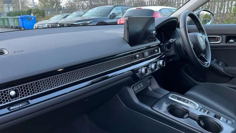 7" Multi information display screen, Adaptive cruise control, Adaptive motion for electric power steering, Adjustable speed limiter, Agile handling assist, BLIS (Blind Spot Information System) with Cross Traffic Monitor, Bluetooth hands free telephone connection, Driving modes, Economy mode, Electric power steering wheel with variable gear ratio steering, Emergency call service, Emergency stop signalling system, Forward collision warning, Front and rear parking sensors, Honda CONNECT with Navigation 9" touchscreen, AM/FM/DAB, Apple Carplay and Android Auto, live traffic info, Honda sensing, Idle stop, Intelligent speed limiter, Lane departure warning system, Lane keep assist, Low speed following, Power meter, Rear parking camera, Road departure mitigation, Tailgate, Traffic jam assist, Traffic sign recognition, Wireless apple carplay, Vehicle stability assist, 'Shark fin' mobile antenna, 2x USB Front socket (1 data & 1 charge), 8 Speakers, Digital Audio Broadcast (DAB) Tuner, Front tweeters, Steering wheel mounted audio controls, Aspherical driver door mirrors, Auto headlight adjuster, Auto headlights, Automatic coming/leaving home lighting function, Automatic rain sensing wipers, Body colour door handles, Chrome window garnish, Electric adjustable heated door mirrors, Electric front and rear windows, Electrically folding door mirrors, Headlight extension black, High beam assist, High level LED brake light, LED daytime running lights, LED front turn type, LED Headlights, LED rear lights, Material finish grille, Pop up hood, Privacy glass, Rear side wing doors, Rear wiper, Single hidden exhaust pipe, Variable front intermittent wipers, 3 seat bench in 2nd row, 60/40 split folding rear seat, Cargo accessory power socket, Cargo net hooks, Driver and front passenger seat armrests, Driver's electric lumbar adjustment, Driver's seat height adjustment, Dual climate control air conditioning system, Fabric upholstery, Front accessory power socket, Front map lights, Front/rear courtesy lights, Glovebox light, Heated front seats, Hybrid emblem, Isofix points/i size, Leather steering wheel, Meter Illumination white, Passenger seat back pocket, Platinum chrome interior door handles, Rear head restraints, Rear reading lights, Rear seat centre armrest, Single front passenger seat, Sunvisors with illuminated vanity mirrors, Tilt/telescopic adjustable steering wheel, Tonneau cover, Trunk light, USB Rear number 2 x charge, White ambient roof light, 3x3 point rear seatbelts, ABS+EBD+Brake assist, Airbags - driver and front passenger, Airbags - Knee (AS), Airbags - Knee (DR), Anti-whiplash front headrests, Brake hold function, Collision mitigation braking system, Collision mitigation throttle control, Deflation detection system, Driver SRS airbag (single stage inflation), Electronic parking brake with auto hold, Front and rear curtain airbags, Front and rear seat belts with emergency locking retractor (ELR), Front centre airbag, Front side airbags, Hill start assist, Low speed brake system, Manual child lock in rear doors, Passenger airbag deactivate switch, Rear airbags, Regenerative braking/deceleration paddle control, Immobiliser, Mirrors and windows key fob, Remote central locking with 2 jack knife keys, Security alarm, Selectable door unlock, Smart entry + Smart start, Superlocking, Tilt sensors, Ultrasonic security sensor, 17" 2 tone diamond cut alloy wheels, Tyre repair kit,