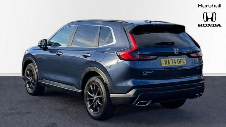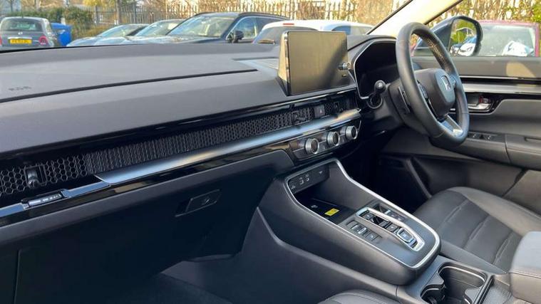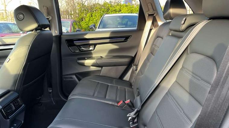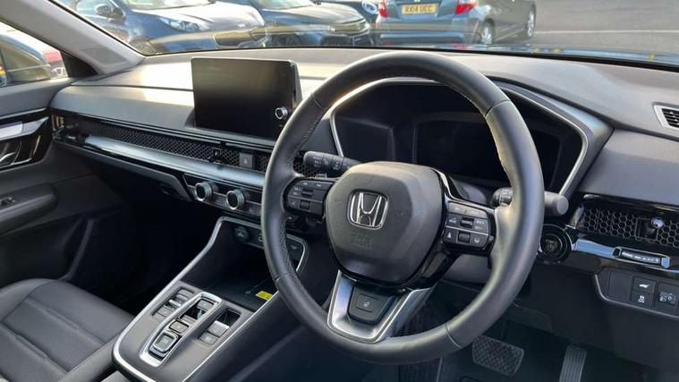10.2" Multi information display, 4 x front and 4 x rear parking sensors, Active lane change assist, Adaptive cruise control with Cornering speed assist, Adjustable speed limiter, Agile handling assist, BLIS (Blind Spot Information System) with Cross Traffic Monitor, Bluetooth hands free telephone connection, Crossing traffic warning front, Drive mode (Econ, Normal, Snow, Sport), Driver attention monitoring system, E-call, eCall emergency call system, Electric power steering, Emergency stop signalling system, Forward collision warning, Handfree power tailgate with kick sensor and walk away close, HEV mode, Honda 360 sensing, Honda CONNECT with Navigation 9" touchscreen, AM/FM/DAB, Apple Carplay and Android Auto, live traffic info, Intelligent speed limiter, Lane change collision mitigation, Lane departure warning system, Lane keep assist system, Lane watch, Lead car departure notification system, Low speed following, Power meter, Rear view camera, Road departure mitigation, Traffic jam assist, Traffic sign recognition, Wireless apple carplay, Wireless charging, Amplitude reactive damper, Vehicle stability assist, 1X USB (A/2.5A) and 1x Charger (C/3A) on Front, 8 Speakers, DAB+ radio, Dashboard centre speaker, Front tweeters, Premium audio speakers, Rear USB 2x Charger (C/3A), Steering wheel mounted controls, Auto dimming rear view mirror, Auto headlights, Auto wipers, Body colour bumpers, Body colour door handles, Body colour plus material colour roof spoiler, Body coloured shark fin antenna, Chrome + black paint grille, Electrically adjustable and heated door mirrors, Electrically folding door mirrors, Exhaust pipe finisher, Exterior mirror tilt for reverse, Front and rear electric windows, Front LED Indicator lights, Front turn type led with sequential, Headlight auto on/off timer, High beam assist, LED 3rd brake light, LED daytime running lights, LED front fog lights, LED Headlights, LED rear lights, Low gloss black window garnish, Panoramic opening glass sunroof, Privacy glass, Rain sensor, Rear side wing doors, Rear wiper, Roof rails, Trailer stability assist, Welcome home function, 3 seat bench in 2nd row, 4 way driver lumbar support, 4 way electrically adjustable passenger seat without height adjust, 60/40 split folding rear seat, 8 way electrically adjustable drivers seat, Accessory sockets in Front & Trunk, Air conditioning - Rear vent, Ambient light in roof, Cargo net hooks, Courtesy lights, Driver and front passenger seat armrests, Driver/passenger front seatback pockets, Driver/passenger sunvisors and vanity mirrors, Driver/passenger sunvisors with illuminated vanity mirrors, Dual zone automatic climate control, Film hairline interior panels, Footwell ambient interior light front and rear, Front and rear ambient light (door handle&door line) and front cup holder, Front centre armrest, Front map lights, Genuine leather steering wheel, Heated front seats, Heated steering wheel, Hybrid emblem, I-Size ISO Fix Points, Instrument panel with garnish wood film, Leather upholstery, Light roof lining, Luggage floor box, Meter illumination, Normal pedals, Platinum chrome interior door handles, Rear centre armrest, Rear headrests, Rear reading lights, Reclining rear seats, Single front passenger seat, Sunglasses holder, Synthetic headrest, Tilt/telescopic adjustable steering wheel, Tonneau cover, Trunk light, Exclusive styling pack - CR-V, 5 x 3 point seatbelts, ABS/EBD, Anti-whiplash front headrests, Brake assist function, Collision mitigation braking system, Deflation detection system, Driver airbag, Driver SRS airbag (single stage inflation), Electronic parking brake with auto hold, Front and rear collision mitigation throttle control, Front and rear curtain airbags, Front and rear seat belts with emergency locking retractor (ELR), Front centre airbag, Front passenger airbag, Front side airbags, Hill descent control, Hill start assist, Knee airbags (DR) and (AS), Low speed brake system, Manual child lock in rear doors, Paddle deceleration control, Passenger SRS airbag with cut off switch, Rear side airbags, Honda super locks, Immobiliser, Mirrors and windows key fob operation, Remote central locking with 2 key fobs, Security alarm, Selectable door unlock, Smart entry + Smart start, Tilt sensors, Ultrasonic security sensor, Flat tyre solution temper tyre/repair kit,