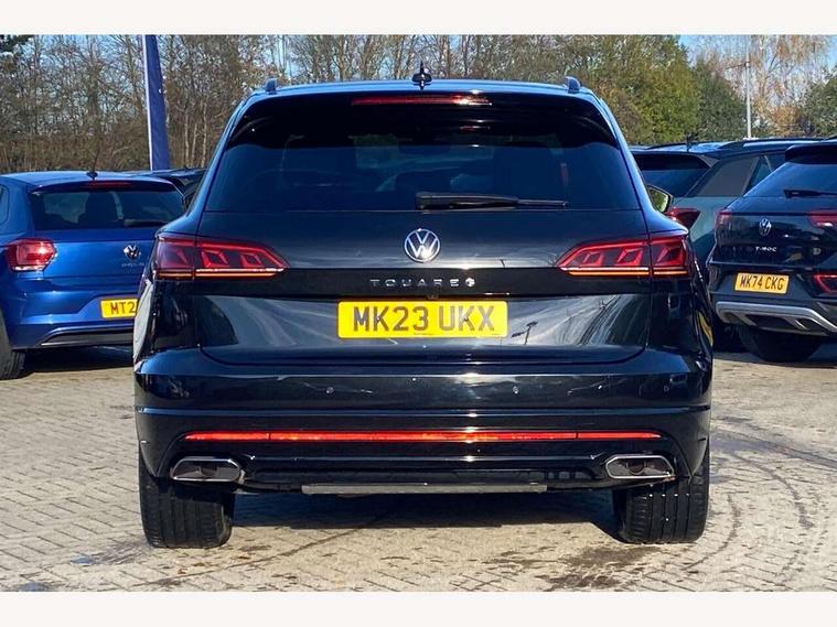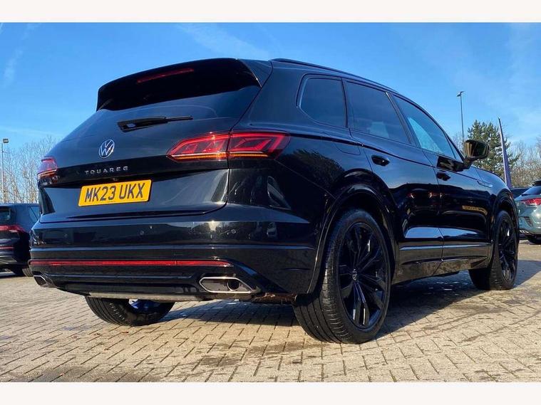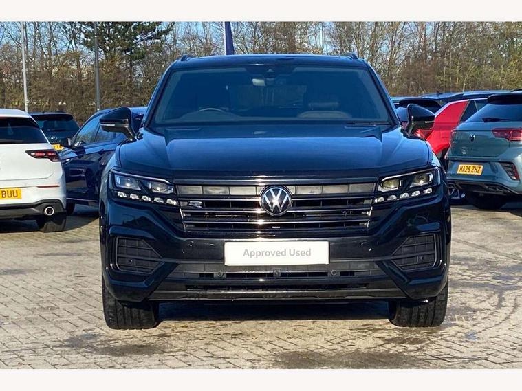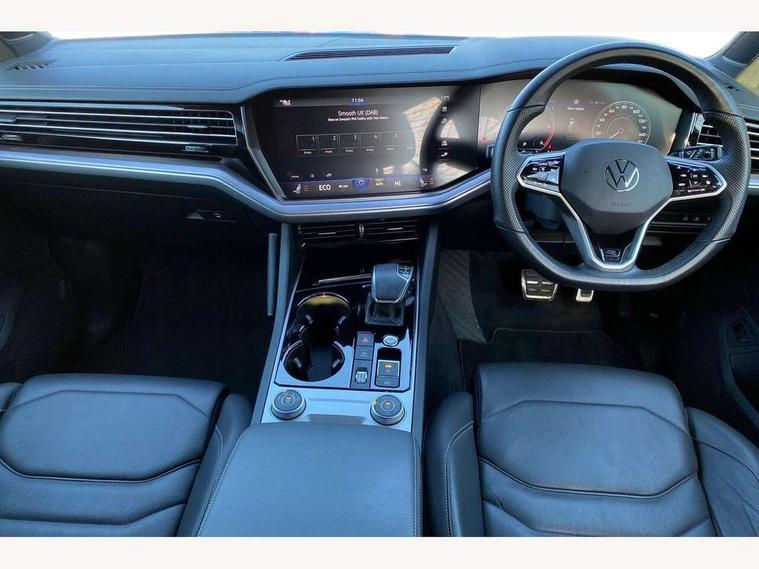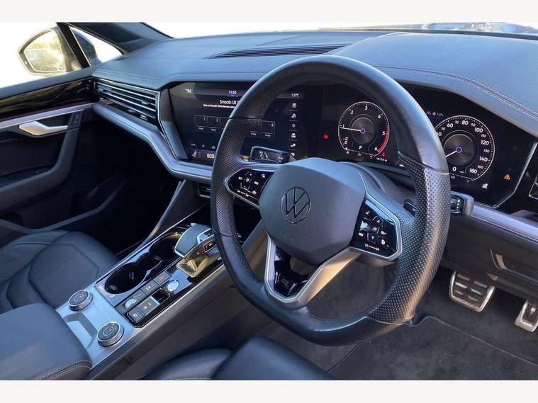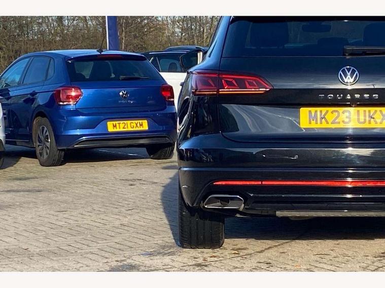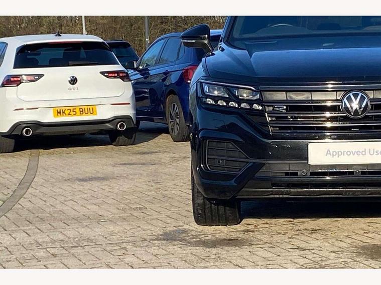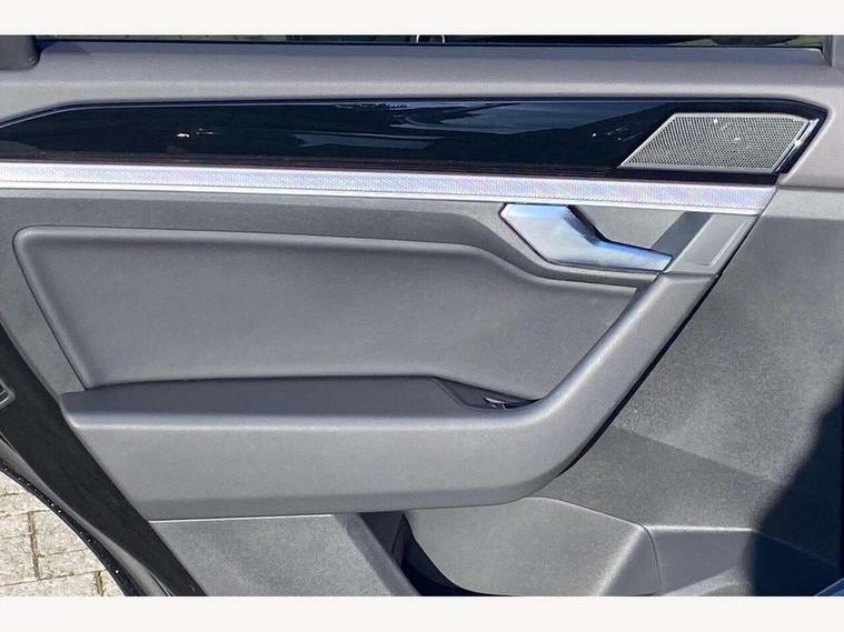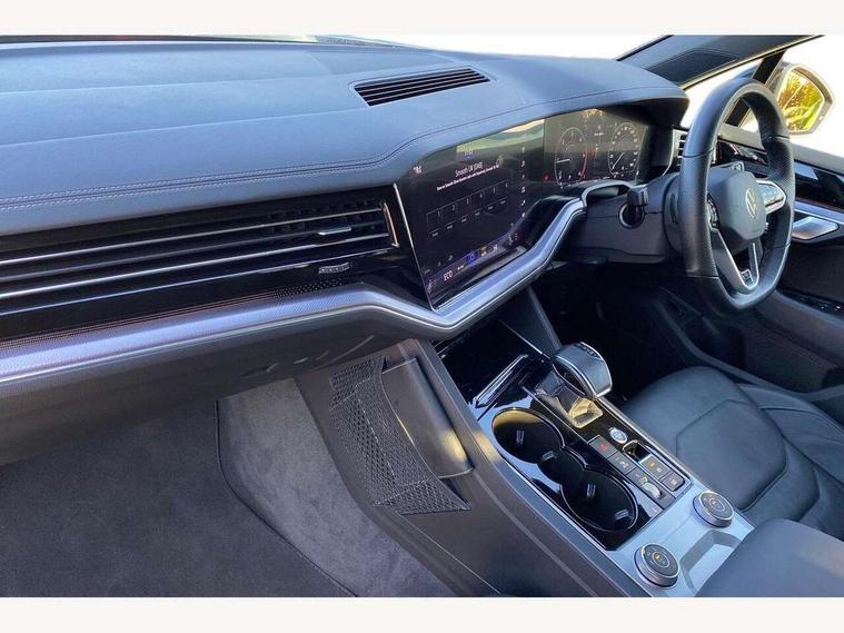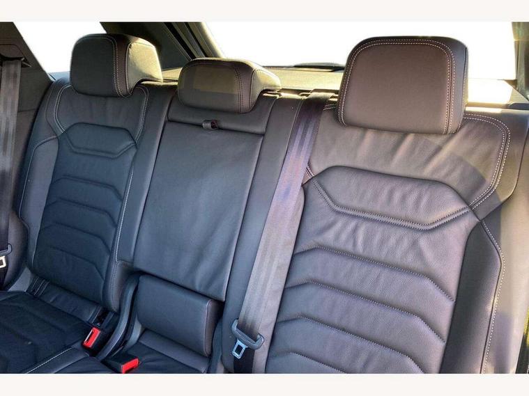 2D/3D map view, ACC - Adaptive cruise control with front assist, forward collision warning, distance monitoring, city emergency brake and speed limiter, Apple car play/Android Auto, Audible and visual fatigue detection system, Bluetooth hands free telephone connection, Car information display, Drive select with Damper control, Driver alert system, Driver profile selection, Dynamic road sign display camera controlled system with visual warning for traffic and road signs, eCall emergency system, Fully electric tailgate + keyless entry and start, Instrument cluster, MirrorLink, Multifunction camera, Multifunction computer premium with 7" colour display, One touch indicators with repeat function, Service interval indicator, Speed sensitive power steering, Start/stop system with regenerative braking, Tailgate power latch, Think blue trainer driver tips and journey analysis, Traffic sign recognition, Voice control system, Wireless Smartphone charger, 24 litre AdBlue tank, Torsen limited slip differential, DAB Digital radio, Dynamic navigation based on TMC+, Gesture control for infotainment system, Multi device interface (MDI) with illuminated USB-C connection, Music playback - MP3, WMA and AAC files, SD card slot, Simultaneous pairing of 2 compatible mobile devices, SMS functionality - read, compose and send SMS messages using touch-screen display, Title and cover art display, Volkswagen media control, Adaptive low beam for urban and motorway use, Auto dimming rear view mirror, Automatic coming/leaving home lighting function, Automatic headlights, Black anodised roof rails, Black door mirrors, Black rear diffuser, Black side window surrounds, Black upper and lower grille louvres extending into headlights and radiator grille, Body colour door handles, Body coloured wheel arches, C signature gloss black front air intake, Chromed tailpipe on the left and right integrated in the bumper with trapezoid design, Dusk sensor, Dynamic headlight range control, Electric front tilt/slide panoramic sunroof and fixed rear sunroof, Electrically power adjustable, heated, folding, auto dimming, front passenger exterior door mirror lowering function, Front and rear electric windows, Galvanised body, Gloss black finish B pillar, Gloss black rear diffuser, Headlight washers, Heat insulating darkened glass in side and rear windows, Heated windscreen washer jets, IQ.Light-LED matrix headlight, daytime running light with dynamic cornering light and indicator, LED 3rd brake light, LED rear fog light, LED rear number plate lights, Plastic scuff plates in door apertures, Poor weather light, Puddle lights, Rain sensor, Rear side wing doors, Rear wiper, 12V socket in front and rear centre console and boot, 2 Coat hooks on B pillar, 3 rear head restraints, 3 seat bench in 2nd row, 3 spoke sport heated leather multi-function sports steering wheel with gear shift paddles - generation 2, 4 way adjustable front head restraints, 4 way electric lumbar support for driver and front passenger, 4 zone climate control, 40:20:40 split folding slide/recline rear seat, B pillar vents, Black lower edge of door extending sills, Branded points of interest, Double sun visor for drivier and passenger with LED illuminated vanity mirrors, Electric luggage compartment cover, Folding rear centre armrest with 2 cupholders, Front + rear carpet mats, Front centre armrest with storage box, Gear shift indicator, Height/reach adjust steering wheel, Illuminated air conditioned glovebox, Isofix preparation for 2 rear child seats, Jack and tool kit, Leather trimmed gear knob with gloss black inlay/aluminum trim, Leatherette door trim, LED luggage compartment lighting, Load through provision, Luggage compartment with load lashing rings, Plastic loading edge protection, Rear seat remote release levers, Single front passenger seat, Soul black headlining, Stainless steel pedals, Innovision cockpit pack - Touareg, 3 point front seatbelts with pre-tensioners, ABS, Active bonnet, Automatic post collision braking system, Curtain airbags, Driver/Front Passenger airbags, EBD + Brake Assist, EDL, Electronic parking brake with auto hold, ESC with ASR, Front seat side impact airbags, Hill descent control, Hill start assist, Passenger airbag deactivate switch, Seatbelt warning lamp and buzzer, Three 3 point rear seatbelts, Two tone horn, Volkswagen roadside assistance, Warning triangle and first aid kit, Alarm with interior monitoring in cab, backup horn and towing protection, Child security locks for front and rear doors, Electronic engine immobiliser, Remote central locking, Black decorative trims on the side windows, High gloss black centre console,