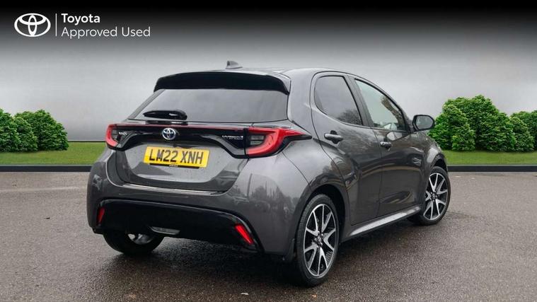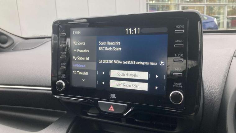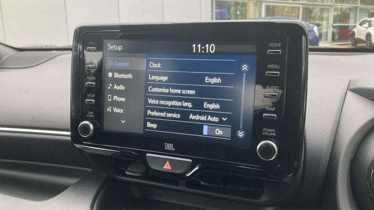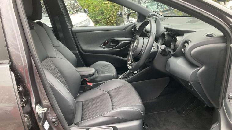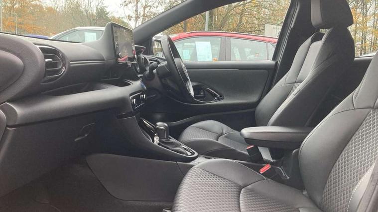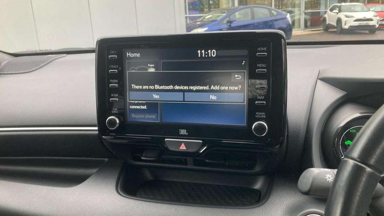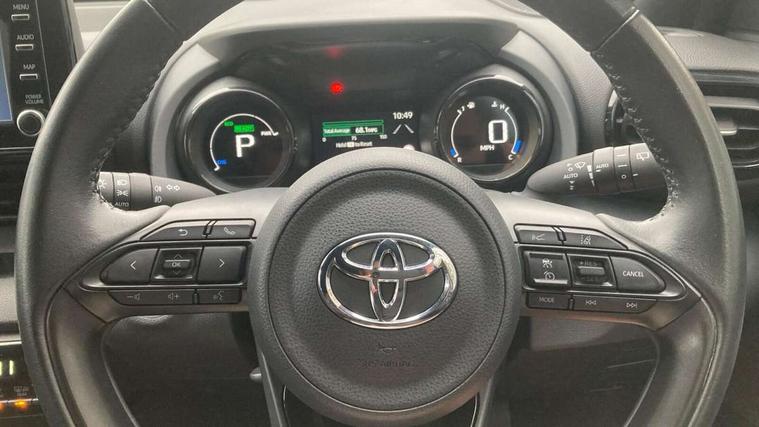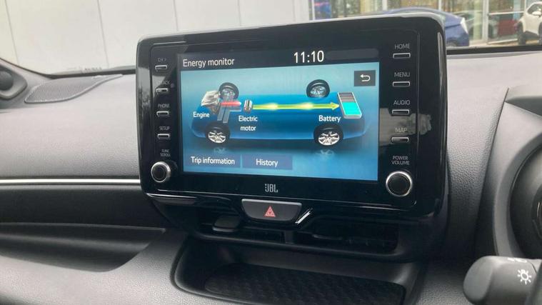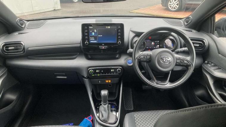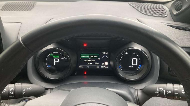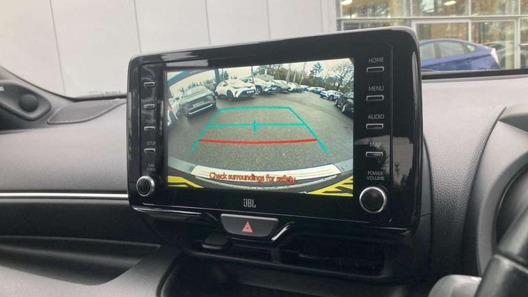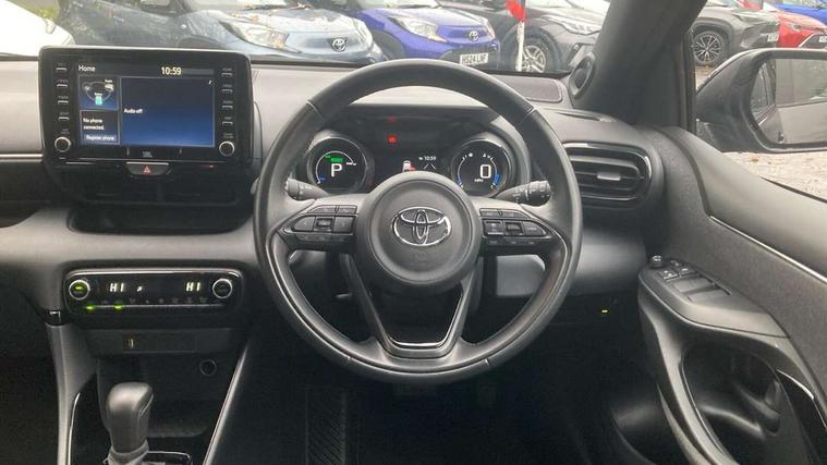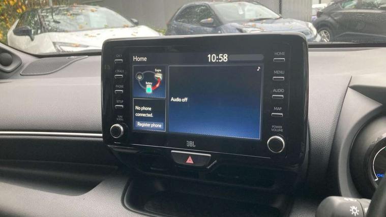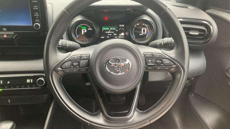 Adaptive cruise control, Adjustable speed limit with speed warning, Bluetooth connectivity, Colour binocular inspired displays with digital speedometer, E-call, Electric power steering, Hybrid energy display, Multi information display switches on steering wheel, Reversing camera, Smartphone integration with Apple CarPlay and Android auto, Vehicle Stability Control (VSC), 8" Multimedia display touch screen, JBL Premium sound system with 8 speakers, Toyota Touch 2 with DAB, USB connection, Acoustic windscreen glass, Automatic headlights, Automatic windscreen wipers with rain sensor, Body coloured door mirrors, Electric adjustable heated door mirrors, Follow me home headlights, Front auto power windows with anti jam protection, Full LED rear lights, LED daytime running lights, LED front fog lights, LED Headlights, LED High mounted stop lamp, Painted front grille, Rear auto power windows with anti jam protection, Rear privacy glass, Rear side wing doors, Rear spoiler, Rear wiper, Shark fin antenna, Turning signal integrated indicators in door mirrors, 3 adjustable rear headrests, 3 seat bench in 2nd row, 3 spoke leather steering wheel, 60/40 split folding rear seat, Active headrests, Adjustable boot height, Coat hooks in rear grab handles, Cup holders (2 front & door), Data Communication Module (DCM) connected services, Dual zone automatic air conditioning, Fabric seat with partial synthetic leather upholstery, Front armrest, Front sport seats, Glovebox, Height adjustable driver's seat, Height adjustable passenger seat, Isofix seat fixing, Leather gearshift, Map pockets on the backs of the front seats, Pollen filter, Shopping bag hooks, Single front passenger seat, Tilt/telescopic steering column, 3 point seatbelts on all rear seats, ABS+EBD+Brake assist, Electronic parking brake, Emergency brake light system (EBS), Front passenger airbag on/off switch, Front seatbelt reminder, Hill start assist control (HAC), Rear child proof door locks, Rear seat belt reminder, Supplemental Restraint System (SRS) 8 airbags: Driver & passenger's airbags, dual side curtain airbags, side impact airbags, front centre airbag, Toyota Safety Sense 2, Precollison + Night time Pedestrian & Cyclist Detection, Lane Trace Assist, Auto High Beam, Intelligent ACC & Road Sign Assist, Tyre pressure warning system, Alarm/immobiliser, Keyless smart entry with push button start, Remote powered central double locking doors, Piano black interior trim, Soft touch instrument panel, Space saver spare wheel,