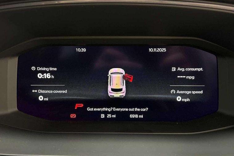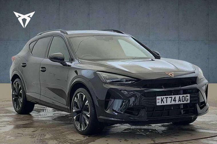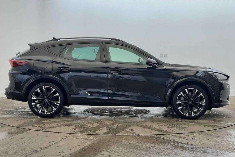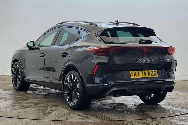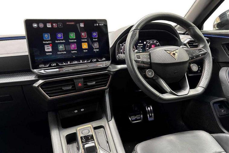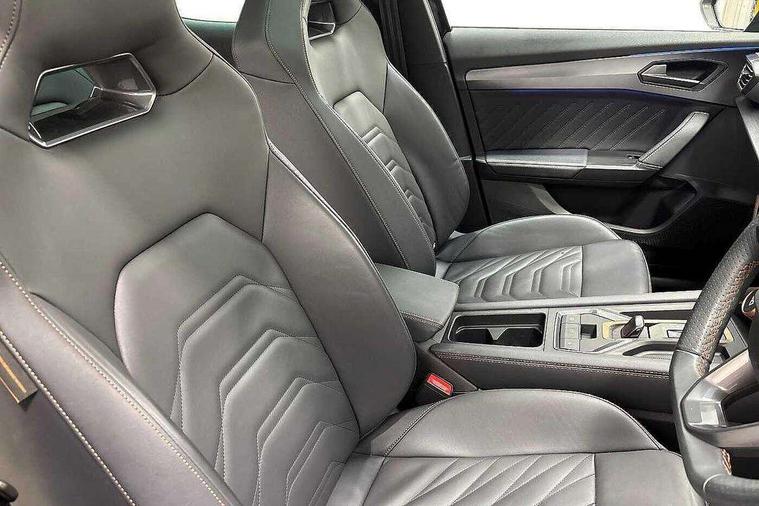 10.25" digital cockpit and configurable dashboard, Adaptive cruise control with follow-to-stop and speed limiter, Advanced driver alert system, Advanced lane assist with semi-automatic vehicle control in a medical emergency and traffic jam assist, Dynamic chassis control with driving profile selection (Comfort, Sport, CUPRA, Individual), Dynamic road sign display, Emergency steering support with turn assist, Forward collision warning with automatic braking, Full link phone integration, Intelligent park assist, RPM, trip computer, outside temp gauge, instrument light brightness, low fuel warning light, lights on reminder, gearshift indicator, Service interval indicator, Side and exit assist, Speed sensitive power steering, Start/stop system with regenerative braking, Top view camera, Virtual pedal and electric tailgate, Voice control system, Wired Android Auto, Wireless apple carplay, Wireless phone charger, Adaptive chassis control with continuous operation, CUPRA sport suspension, Electronic locking differential and dynamic traction support, 2 front and 2 rear USB type C sockets, Media system with navigation, 12.9" touchscreen display, voice control, DAB, steering wheel mounted controls, Auto dimming rear view mirror, Body colour door handles, Body coloured bumpers, Dark grey wing mirror, Daytime running light with automatic headlight control and coming home feature, Door panel ambient lighting, Dynamic headlight range control, Electric front/rear windows, Electrically adjustable heated and folding door mirrors with memory function, Gloss black roof rails and window surrounds, High beam assist, LED 3rd brake light, LED front fog lamps with cornering function, LED Taillights with dynamic indicator, Matrix LED headlights with multifunction camera, Rain sensing wipers, Rear diffuser with twin exhaust pipe on each side, Rear fog lights, Rear side wing doors, Rear wash/wipe, Tinted rear windows, Welcome lights (within exterior mirror housing), 12V socket, 2 front and 2 rear reading lights, 3 seat bench in 2nd row, 60/40 split rear bench seat with armrest and mechanical seat release, Black headlining, Black interior roof lining, Cupra sports pedals, Dust/pollen filter, Electrically adjustable front seats with lumbar support and memory function, Front and rear head restraints, Front centre armrest, Heated front seats, Heated supersports multifunction leather steering wheel with satellite buttons and gear shift paddles, Height/reach adjust steering wheel, Illuminated aluminium doorsteps, Illuminated interior front door sills, Illuminated sunvisor with mirror, Isofix, Leather dashboard, door insert and side trim panel, LED smart wraparound lighting, PVC/Leather upholstery, Satellite steering wheel, Single front passenger seat, Storage pockets on rear of front seats, Three zone climate control with control panel in rear, Variable luggage/load compartment floor, 3 point seatbelts on all rear seats, ABS, Brake control system - ESC and brake booster, Child proof door locks, Driver and front passenger airbags with front passenger airbag de-activation, Electronic parking brake, Front and rear disc brakes, Front side curtain airbags, Hill hold control, Pre-crash front and rear seat belt tensioner, window closure and hazard lights, Public e-call, Seat belt reminder for front and rear seats, Tyre pressure monitoring system, Anti theft alarm system, KESSY Advanced - Keyless start, keyless entry with SAFELOCK, Locking wheel bolts, Copper and aluminium interior detailing, 19" Artic machined sport black and silver alloy wheels, Breakdown and tool kit,