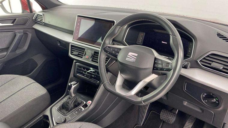'Lights On' Reminder warning buzzer, 10.25" digital cockpit, Bluetooth audio streaming with handsfree system, Cruise control with speed limiter, Digital clock, Digital cockpit, e-Call (emergency call), Front assist city emergency braking and pedestrian protection, Full Link Wireless Smartphone Integration with Mirror Link, Apple Car Play, Lane assist, Low fuel warning light, Outside temperature gauge, Power assist steering, Rear parking sensor, RPM counter, Seat connect with safety, service, remote and online, SEAT Drive profile-4 different modes, progressive steering, 4Drive versions with off-road/snow, steering response, throttle response, gear shifts mode, Trip computer, Wash water level indicator, Comfort suspension, XDS electronic differential lock, Navigation system with 9.2" colour touchscreen with proximity sensor, 3D Map display, DAB, AM/FM Radio, 3 USB (type C), Aux-in, 8 speakers, SD card, Steering wheel mounted audio/telephone controls, USB (type C) cable for Apple and Android compatibility, Auto dimming rear view mirror, Auto headlights with automatic coming and leaving home function, Automatic headlight adjustment, Black bumpers, Black roof rails, Black window trims, Body colour door mirrors and handles, Chrome front grille frame, Coast to coast lighting, Dark tinted rear windows, Electric front/rear windows, Electrically adjustable and folding door mirrors, Exterior black mouldings, Front halogen fog lights with cornering function, Fuel door linked to central locking, Full LED headlights with LED rear lights, Heated door mirrors, Hidden exhaust pipe, LED daytime running lights, LED licence plate lighting, Rain sensing wipers, Rear fog lights, Rear side wing doors, Rear wash/wipe, Welcome lighting, 2 individual 3rd row seats, 3 seat bench in 2nd row, 3 zone climate control, Ambient spot lighting and front footwell illumination, Black interior roof, Centre armrest in front with air outlet in rear, Comfort front seats, Driver and passenger sunvisor with covered and illuminated mirror, Driver/passenger lumbar adjustment, Easy fold rear seat system - second and third row, Forward and backward adjustable seats 2nd row, Four cargo rings in the boot, Front cupholders, Front seat back storage pockets, Gear shift indicator, Height adjustable driver's seat, Height adjustable front headrests, Height adjustable passenger seat, Illuminated boot, Illuminated glovebox, Instrument lighting with brightness control, ISOFIX points in outer 2nd row seats and front passenger seat with top tether anchorage points, Leather gear knob, Leather wrapped multifunction steering wheel, Luggage compartment floor with split function, Multicolour ambient lighting in front and rear door panels + LED lights in interior door handles, Olot cloth upholstery, Rear armrest and easy back seat release mechanism from boot, Rear head restraints, Single front passenger seat, Sliding boot cover, Storage compartment in roof console for sunglasses, Storage draw under front passenger seat, Three 12V sockets, 3x3 point rear seatbelts, ABS, Active front head restraints, Driver/front passenger airbag, Drivers knee airbag, Electronic parking brake with auto hold, Electronic stability control, Front passenger airbag deactivation, Front side airbags, Hill hold control, Manual rear child locks, Seatbelt reminders for all seats, Tiredness recognition system, Traction control, Two curtain airbags, Tyre pressure monitoring system, Alarm, Central locking, Keyless entry and go, Locking wheel bolts, Power locking and remote control with two foldable keys and opening boot selector, Chrome interior detailing - door and dashboard decorative inserts, 18" Performance machined alloy wheels 37/1, Tool kit,