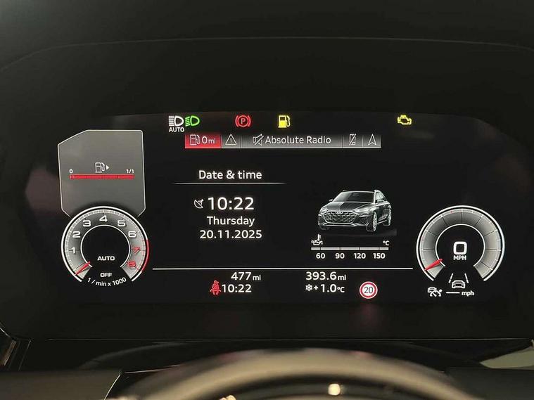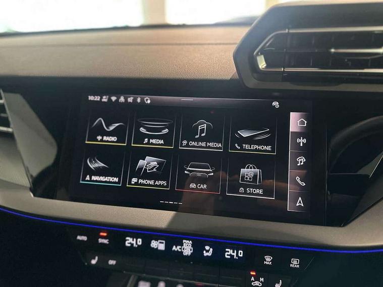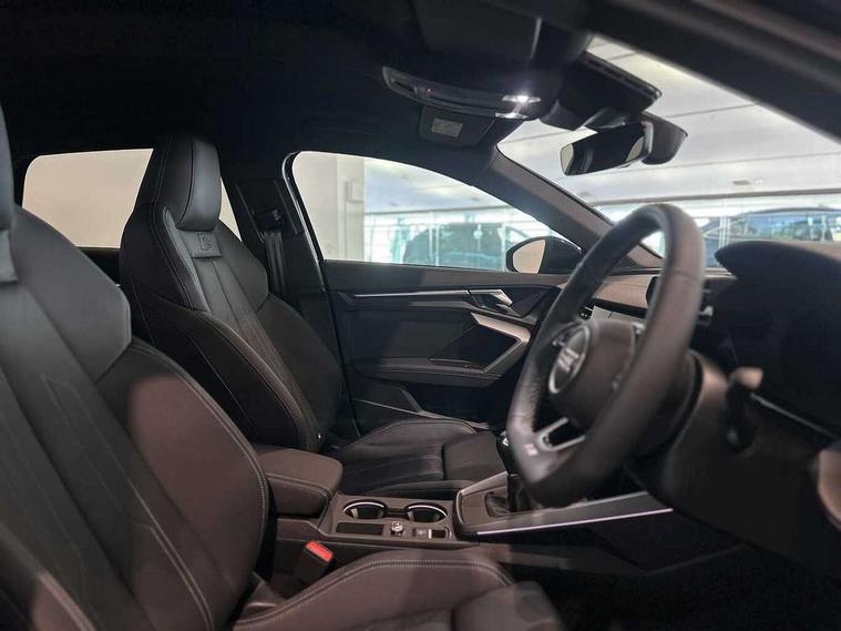 Adaptive cruise control (ACC), Adjustable speed limiter, Audi drive select (Auto, Comfort, Dynamic, Efficiency and Individual), Audi virtual cockpit plus - 12.3" full HD resolution dynamic digital instrument cluster, Automatic start/stop system with recuperation, Bluetooth interface, Camera based traffic sign recognition, Collision avoidance assistant, Driver attention and fatigue detection, e-Call (emergency call), Electromechanical power speed sensitive steering, Intersection assist, Lane departure warning system, MMI Navigation Plus with high resolution 10.1" colour touch screen display, Park Assist with parking system Plus, Reversing camera, Service indicator, Smartphone interface with app store includes wireless Apple carplay, Android auto and Amazon alexa integration, Trip computer, Voice control system with natural language interaction, Sports suspension, Audi Phonebox light with wireless charging, Audi sound system - 10 loudspeakers including centre loudspeaker and subwoofer, DAB Digital radio, USB ports with charging function in the rear, Acoustic glass windscreen, All weather light, Aluminium window trim, Auto dimming frameless rear view mirror, Automatic dynamic range control, Body colour exterior mirrors, Dipped beam, main beam, position light and turning light, Electrically adjustable/heated/folding/auto dimming door mirrors with integrated LED indications + kerb view function for passenger side, Exterior model badging, Front and rear side air inlets in grained matt black with dark liquid chrome frame, Front electric windows, Front radiator grill in high gloss dark chrome, Heat insulating glass windscreen, Illuminated door sills with aluminium inserts at the front with S logo, Intersection light, Invisible tailpipe, LED 3rd brake light, LED brake lights, LED daytime running x3, LED headlights with LED rear lights and dynamic rear indicators, LED rear number plate lights, LED reverse light, LED tail lights, Light and rain sensors, Manoeuvring light, Motorway light, Privacy glass - dark tinted rear window, rear door and side windows, Rear diffuser and grill in grained matt black with inlay in dark liquid chrome, Rear electric windows, Rear side wing doors, Rear wiper, S line bumpers, S roof spoiler, Side S line emblems on front wings, Side sill trim in dark liquid chrome, Static cornering light, 12V socket and storage compartment in front centre console, 3 seat bench in 2nd row, 3 spoke flat bottomed multi-function leather sport steering wheel, 3-zone deluxe automatic air conditioning, 4 way electrically adjustable lumbar support for driver and front passenger, 40/20/40 split folding rear seat bench, Black cloth headlining, Black front and rear floor mats, Front and rear centre armrest in artificial leather with contrasting stitching on armrests and instrument panel, Front and rear headrests, Heated front seats, Height and reach adjustable steering wheel, i-Size child seat mounting on the front passenger side and outer rear seats, i-Size and top tether on the outer rear seats, Manual boot compartment lid, Manually adjustable front seats, Rear centre armrest with cupholder, S badging on the steering wheel, Seat side bolsters, Single front passenger seat, Stainless steel pedals and front footrest in black, Twin leather upholstery with front sports seats S embossed logo, Aluminium interior elements pack - A3, Multi-coloured LED interior lighting package with Multi-coloured contour lighting of instrument panel - A3, 3x3 point rear seat belts, Driver and front passenger airbag with passenger airbag deactivation, Electronic Stabilisation Control (ESC) including ABS, ASR and EDL, First aid kit with warning triangle and 2 safety vests, Front side airbags with head airbags and interaction airbag, Hill hold assist, Pre-sense front with pedestrian and cyclist detection, Seatbelt monitoring, Tyre pressure loss indicator, Anti theft alarm, Anti-theft wheel bolts, Electronically operated child locks, Immobiliser, Black dashboard, Inlay in dark aluminium spectrum,