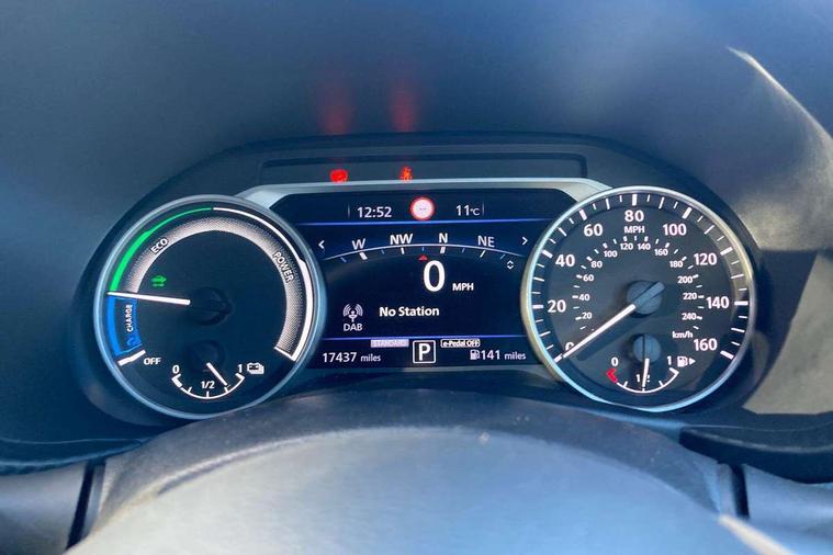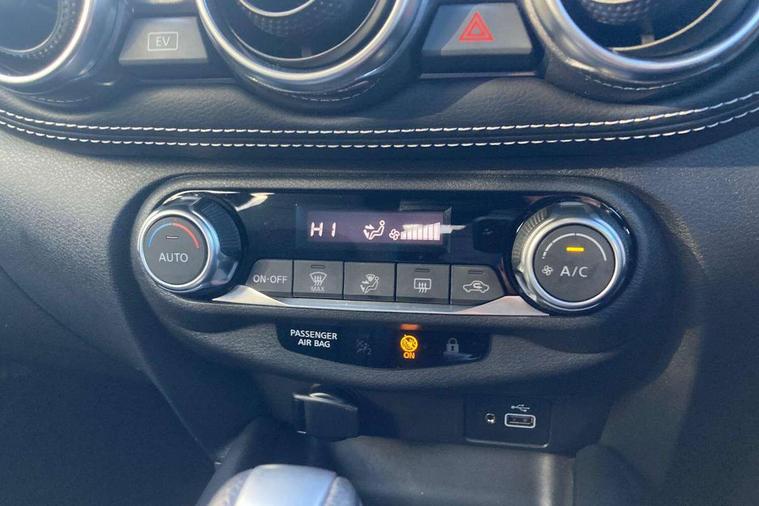 7" full colour TFT screen combimeter, Apple CarPlay and Google Android auto, Drive modes select (Eco, normal and sport), e-Pedal step, Emergency and breakdown call, EV mode selector, Front parking sensor, Intelligent lane intervention, Lane departure warning system, Nissan connect 8" touch screen entertainment system, Nissan connect nav with TomTom traffic, Nissan connect services and Wifi connection, Outside temperature sensor, Power Steering, Rear parking sensor, Traffic sign recognition, Trip computer, Voice recognition, Gasoline particulate filter, 6 speakers, Bluetooth system, USB, Aux-in and 12V socket, DAB Digital radio, Rear console USB port, Auto dimming interior rear view mirror, Auto headlights, Automatic hazard signal with emergency stop signal, Body colour bumpers, Body colour door handles, Electrically adjustable door mirrors with integrated indicators, Follow me home headlights, Front and rear electric window with one touch driver window, Heated and auto folding door mirrors, High beam assist, LED daytime running lights, LED headlamps, LED rear fog lamp, LED rear lamps, Rain sensor windscreen wipers, Rear privacy glass, Rear side wing doors, Rear wiper, Shark fin roof antenna in Pearl Black, Three blink turn signal, 3 height adjustable rear headrests, 3 seat bench in 2nd row, 60/40 split folding rear seat, Automatic climate control, Card holder on driver sunvisor, Cloth upholstery with black and metallic grey syntech leather inserts, Driver and passenger sliding and reclining seats, Driver side rear coat hanger, Driver/passenger sunvisors and vanity mirrors, Front and rear cabin lights, Front armrest, Front door pockets with bottle holders, Front head restraints, Front/rear passenger grab handles, Grey synthetic leather kneepad, Height adjustable driver's seat, Internal chrome door handles, Leather gearshift knob, Leather steering wheel, Luggage board, Luggage space lighting, Monoform sporty seats, Multifunction steering wheel, Rear door bottle holders, Single front passenger seat, Steering wheel mounted gearshift paddles, Telescopic steering wheel adjustment, Two cupholders in front centre console, Two rear isofix child seat anchorage points with top tether, Welcome light and console tray ambient lighting, ABS with EBD and brake assist, Active ride control, Active Trace Control, Driver and passenger airbags, Driver and passenger side airbags, Electric handbrake with auto hold function, Electronic Stability Programme (ESP), Front and rear curtain airbags, Height adjustable seatbelts, Hill start assist, Intelligent emergency braking with pedestrian and cyclist recognition, Rear door child safety locks, Seatbelt reminder for driver/front passenger and rear seats, Single tone horn, Three 3 point rear seatbelts, Traction control, Tyre pressure monitoring system, VDC Dynamic Vehicle Control, Ventilated rear brake discs, Alarm, Immobiliser, Intelligent key and start push button with walk away lock and approach unlock functions, Remote central locking,