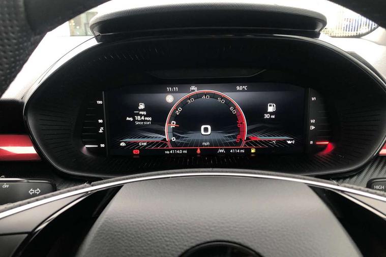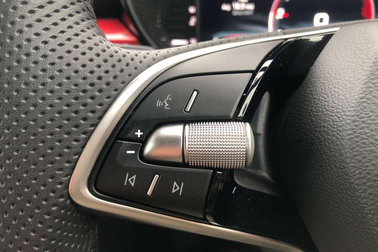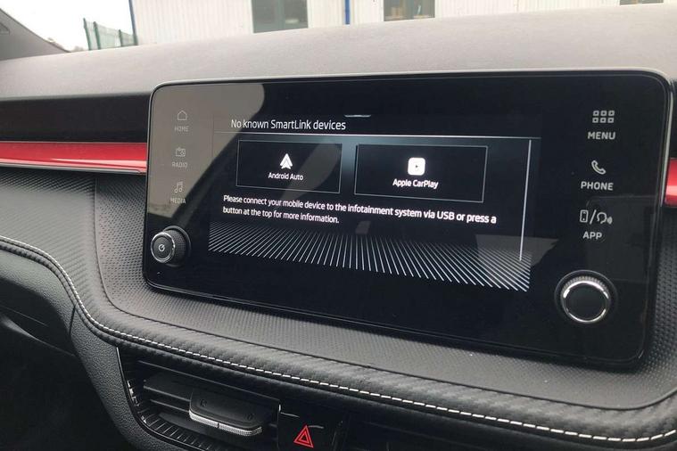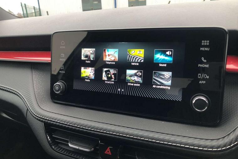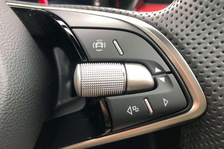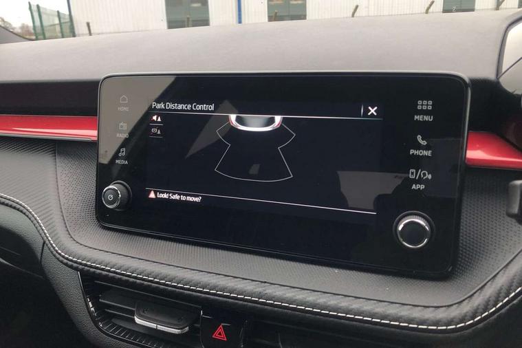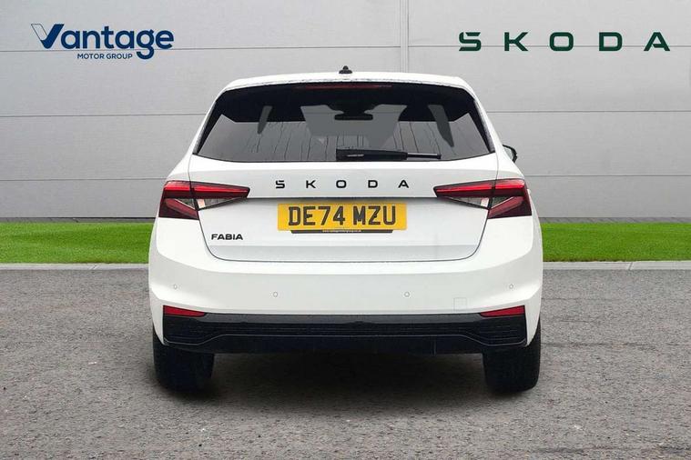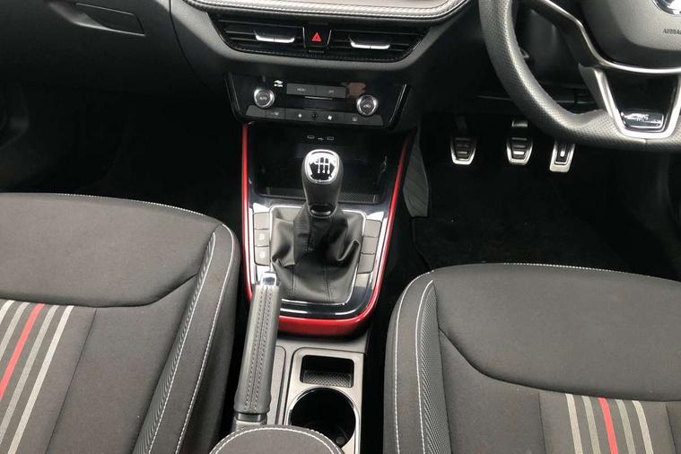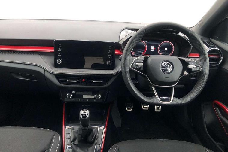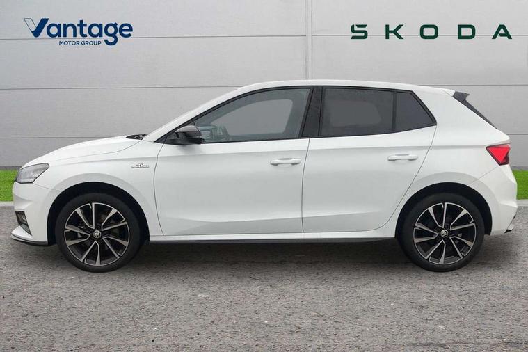 Advanced driver attention and drowsiness monitor, Bluetooth connection, Electromechanical power steering, Exterior temperature gauge, Service interval indicator, Traffic sign recognition, Virtual cockpit with 10.25" colour display, Wireless SmartLink for Apple CarPlay and Android Auto, 6 Speakers (4 in front and 2 in rear), Auxiliary socket for external MP3 player, DAB digital radio reception, Auto dimming rear view mirror, Black radiator grille, Body coloured bumpers, Door mirror integrated indicators, Front and rear electric windows, Front window wiper intermittent control, Headlight range control - Automatic, Ice scraper in fuel cap, LED daytime running lights with coming and leaving home feature, LED rear lights, Monte Carlo badging, Privacy glass, Rear LED fog light, Rear side wing doors, Rear window wiper with washing nozzles, Roof mounted spoiler, SKODA tailgate lettering in black, Sports bumpers, Third brake light, 2 reading lights in front and 2 reading lights in rear, 3 rear headrests, Aluminium pedals, Backrest split and folding, Black headlining, Central console with removable cup holder and storage box, Chrome handbrake release button, Door sills with fabia badging, Dual zone air conditioning with climatronic electronic control, Fabric/artificial leather upholstery, Front centre armrest, Front sports seats, Gearshift knob/handle in leather, Hand brake lever handle in leather, Height adjustable front headrests, Height adjustable front seats, Height adjustable steering wheel, ISOFIX and TopTether anchorage points to the outer rear seats, ISOFIX and TopTether on the front passenger seat, Luggage compartment lighting, Manually adjustable lumbar support in front seats, Metallic painted red central console cover, Metallic red interior door handles, Pollen filter, Rear seat bench unsplit, Single front passenger seat, Sun visors with mirror and airbag label on passenger side, Textile floor mats, Ticket holder, Umbrella in drivers door, 3-point height adjustable front seats belts with pretensioner and force limiter, Automatic warning lights in case of crash, Driver and passengers airbag with switch off function, e-Call+, ESC including ABS, MSR, ASR, EDS, HBA and XDS, Front and rear seat belt warning, FRONT ASSIST (AEB City and AEB Inter Urban), Front side airbags, Head airbags, One tone horn, Pedestrian protection, Three rear 3-points safety seat belts with pretensioner and force limiter including stop function for outer rear seat belts, Tyre pressure monitoring system, Anti-theft alarm system including immobiliser, interior monitoring, backup horn, and towing protection, Central locking with radio remote control, interior controls, SAFE function and 2 foldable keys, Carbon effect door and side trim panels, Carbon effect lower decorative trim with white stitching, Monte carlo air vents, Red metallic upper decorative trim, Anti-theft wheel bolts protection, Super-low rolling resistance tyres,