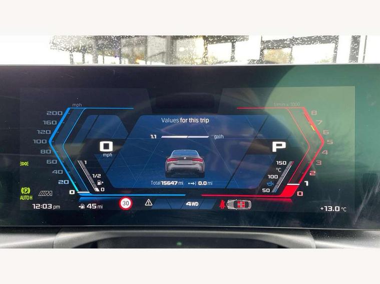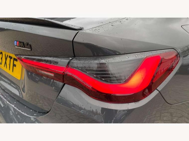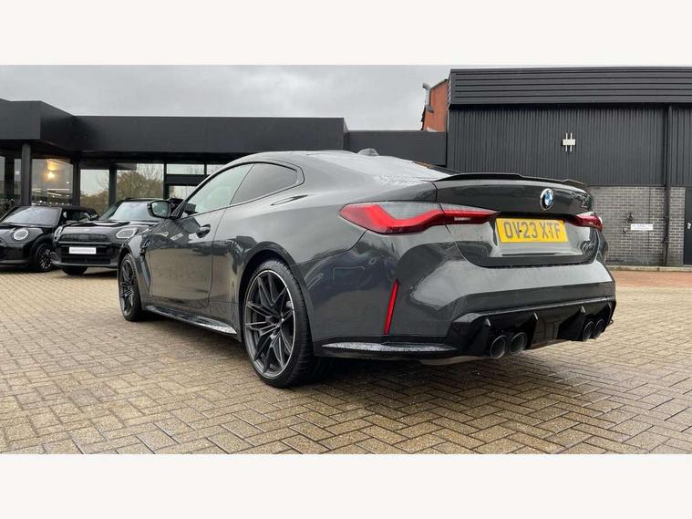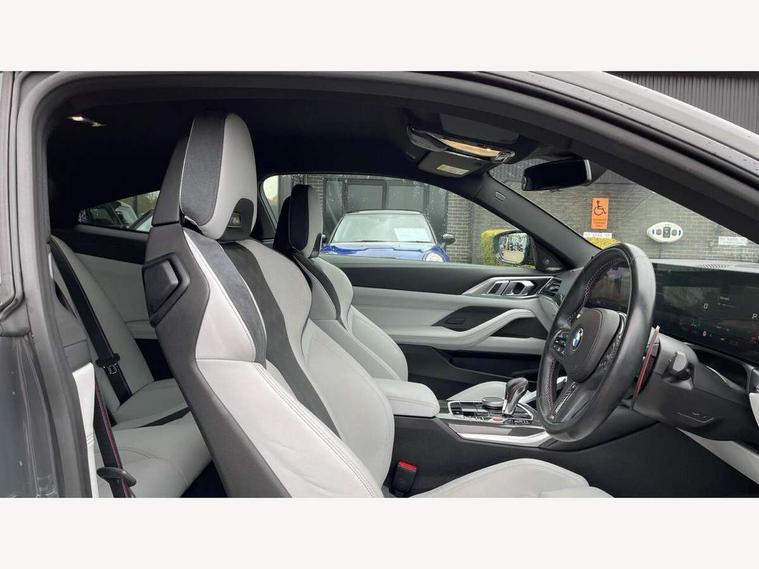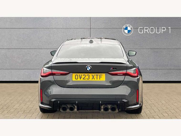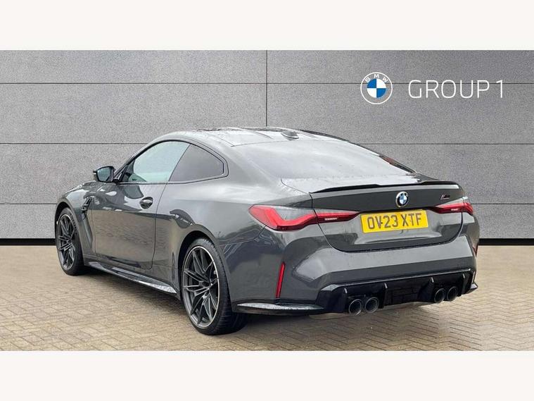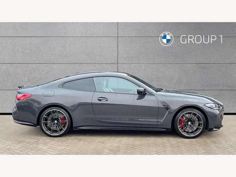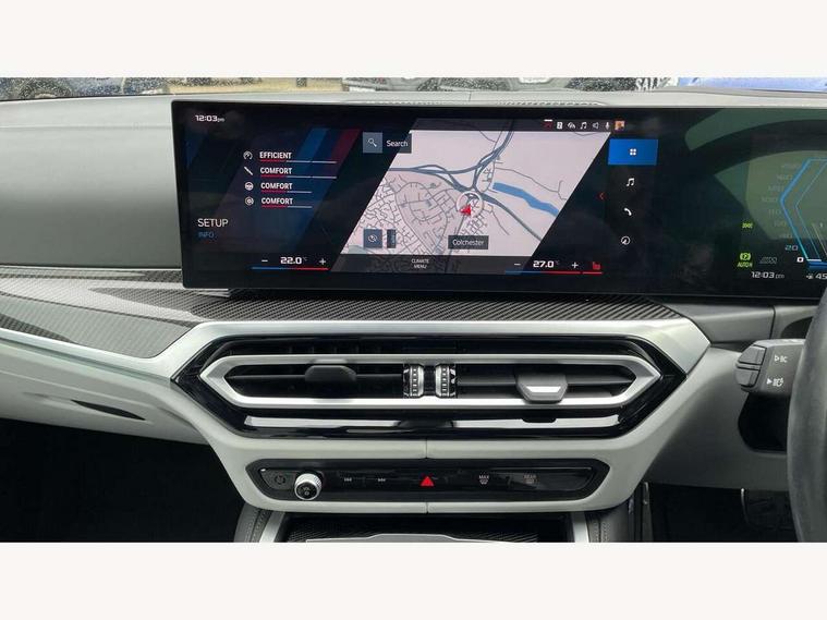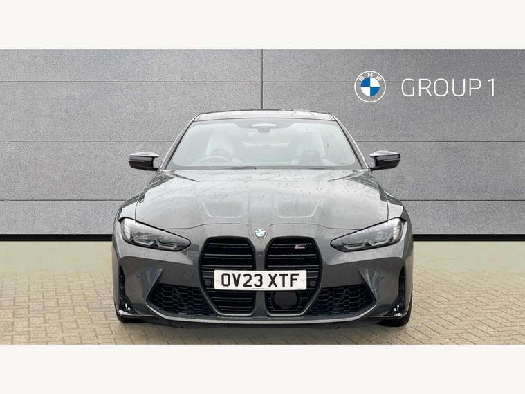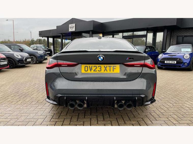 Active guard plus, Automatic start/stop system, BMW ConnectedDrive online services, BMW iDrive controller on centre console, BMW legal emergency call, BMW Live Cockpit Professional sat nav system with 12.3" instrument display and high resolution control display, BMW Teleservices, Brake pad wear indicator warning light, Condition based service, Door/boot open warning light, Driving experience switch, Electric Power Steering (EPS) with Servotronic, Instrument cluster with extended contents, Lights on warning, M drive buttons, Oil sensor for level and grade, warning by check control system, Oil temperature gauge, On board computer, On board diagnostics, Optimum shift indicator, Outside temperature display, Park distance control, Pull away assistant, Run flat indicator, Service interval indicator, Shifting point display, Speed limiter, Variable sport steering, Adaptive M Sport suspension, Double joint spring strut front axle, M Drive Professional including track mode, laptimer, traction control & Drift analyser, M Sport differential, M steptronic sport transmission with drivelogic, Safety battery terminal clamp, 8 programmable favourite buttons, Auxiliary point for auxiliary devices, BMW professional radio/CD/MP3, DAB Digital radio, Harman/Kardon loudspeaker system, Acoustic laminated side glass, Auto dimming driver's door mirror, Auto dimming rear view mirror, Automatic headlights + automatic windscreen wipers, Black chrome exhaust tailpipes, Black model designation badges, BMW high gloss shadow line with extended contents, BMW Individual shadowline lights, Body colour bumpers, Body colour door handles, Carbon fibre reinforced plastic (CFRP) roof, Day time running light, Door mirror integrated indicators, Door sill finishers with aluminium inserts, Dynamic brake lights, Electric adjustable heated door mirrors, Electric folding door mirrors, Follow me home headlights, Front and rear bumper system, Front electric windows with open and close fingertip control, anti trap facility and comfort closing, Headlight beam throw control, Heat protection, sun protection glazing, Heated washer jets, High beam assistant, High gloss black frameless kidney grille with M badge, LED number plate light, LED tail lights with 3D L-shaped LED light design, M designation, Mirror glass aspheric on driver's side, convex on passenger side, Rain sensor, Rear boot, Rear fog lights, Rear reflectors, Reversing light, Shark fin roof aerial, Third brake light, Visible VIN plate, Welcome lighting, 2 cupholders in front centre console, 2 cupholders in rear armrest, 2 rear head restraints, 2 x 12 V Power sockets (luggage compartment and front centre console), 2 x USB Type C ports for charging and data transmission in front centre console, 40:20:40 split folding rear 2 seat bench with loading system, Ambient lighting, Anthracite headlining, Battery in luggage compartment, Carbon fibre centre console incl. cover for cupholders and storage compartment, Carbon fibre decorative steering wheel finishers, Carbon fibre shift paddles, Carbon fibre strip in instrument panel on front passenger side, Centre console armrest with storage compartment, Compartment in front of cupholder, Driver/passenger sunvisors with illuminated vanity mirrors + covers, Electric front seats + driver memory, English handbook, Floor mats in velour, Footwell lighting, Front and rear door exit lights, Front door storage bins with bottle holder, Front interior light, Front isofix attachment + airbag deactivation, Front seat backrest width adjustment, Front seats lumbar support, Front/rear door armrests, Gearshift lever with embossed M badge, Heated front seats, Height adjustable front headrests, Interior mirror lighting, Isofix on 2nd row outer seats, Lockable/illuminated glovebox, Luggage compartment lighting, Multifunction steering wheel, Rake/reach adjustable steering wheel, Single front passenger seat, Storage compartment in rear doors, Storage tray and compartment with cover in centre console, Three zone automatic air conditioning, Toolkit located in luggage compartment, Wireless charging tray, Additional storage compartment pack - M4, Connected package professional - M4, High gloss shadowline exterior trim pack - M4, 4 x 3 point seatbelts, ABS/EBD, Automatic Stability Control (ASC), Brake energy regeneration, Brake fade compensation, Compound structure brake discs, Cornering brake control (CBC), Crash sensor, Curtain airbags, Driver/Front Passenger airbags, Dry braking, Dynamic brake control, Dynamic Stability Control with M Dynamic mode, Dynamic Traction Control - DTC, Electromechanical parking brake, Electronic differential lock control (EDLC), Front and rear head airbags, Front seat side impact airbags, Front seatbelt pretensioners + load limiters, Hill start assist, M Sport seat belts, Seat occupancy detection for driver and passenger side, Seatbelt warning, Side impact protection, Two tone horn, Tyre pressure sensor, Warning triangle and first aid kit, Centre lock switch, Closing system with central locking, Digital key, Electronic immobiliser, Remote central locking, Thatcham cat 1 remote alarm, Vehicle Key with 4 buttons including the integrated key, Galvanic finish to control surrounds, High gloss black interior trim, Tyre repair kit,
