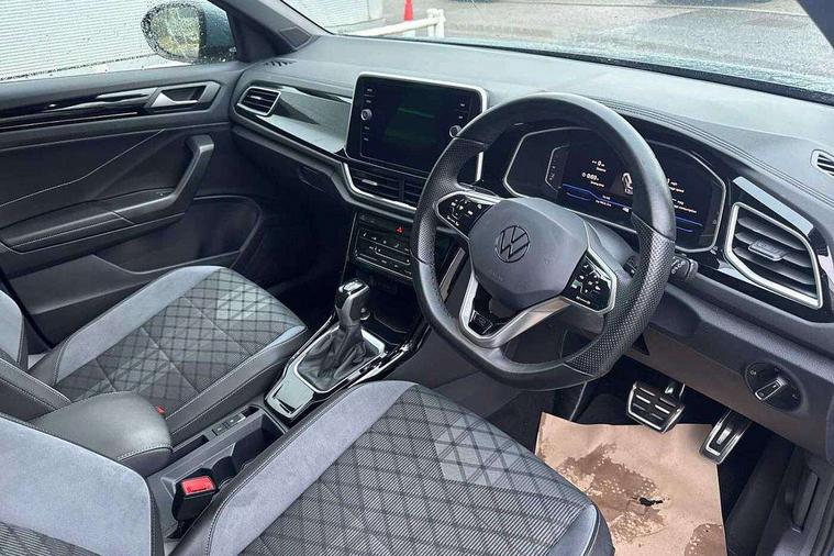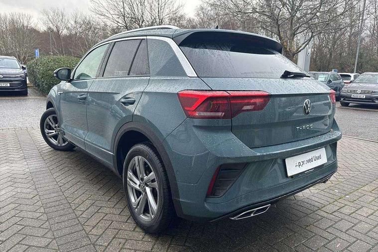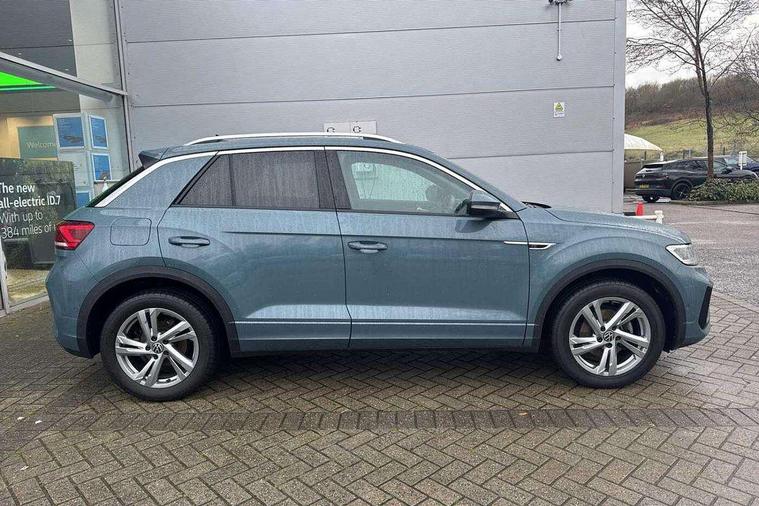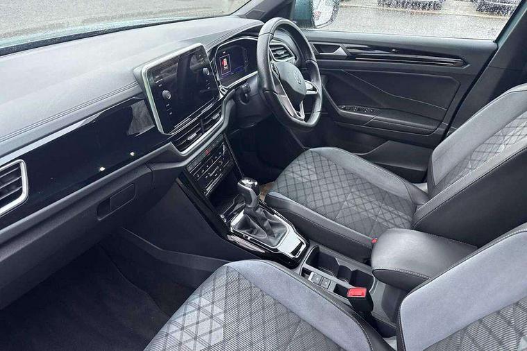 10.25" Digital cockpit pro, Bluetooth mobile phone interface, Driver alert system with fatigue detection, Driver tips and journey analysis, Emergency call service, Lane keeping system Lane Assist, Modified key software - reduce switch off time for key status change to Long no motion, Online services, Park assist including front and rear parking sensors, Service interval indicator, Tailgate/trunk lid release from outside, Think blue trainer driver tips and journey analysis, Warning sound and light for front seatbelts unfastened, Wireless app connect, Battery regeneration during braking, Start/stop function with battery regeneration, Diversity antenna for FM reception, Front and rear 6 speakers, Music playback - MP3, WMA and AAC files, Premium USB cable in choice of either Apple or Android smartphone compatibility, SD card slot, Simultaneous pairing of 2 compatible mobile devices, Title and cover art display, We Connect and We Connect Plus functionality, 3rd brake light, Auto dimming interior rear view mirror, Automatic hazard lights activation under emergency braking, Automatic headlight control with LED separate daytime running lights with coming/leaving home function, Extended roof spoiler, Exterior mirrors aspherical on driver side, convex on front passenger side, External USB type C socket and charging sockets, Front windscreen wiper with intermittent wipe and 4 position delay, Heated rear window, LED Plus headlamps, LED rear combination lamps, LED rear number plate lights, LED tail lamp rear comination lamps, Power windows with comfort operation and circuit breaker, R-Line design body coloured bumpers, Rain sensor, Rear exhaust tailpipe, Rear fog light on one side and reversing lights on both sides, Rear side wing doors, Rear wash/wipe with intermittent wipe setting, Remote electrically foldable door mirrors, puddle lights and reverse activated passenger's door mirror, 12V power socket in centre console, 3 rear head restraints, 3 seat bench in 2nd row, 4 load lashing points in luggage compartment, Air care climatronic air conditoning system with active combination filter and 2-zone temperature control, Black roof lining, Chrome plated radiator grille inserts, air vent surrounds and light switch surrounds, Door and side trim panel with leatherette insert, Drawer under drivers seat, Front + rear carpet mats, Front centre armrest, Front cupholders x 2, Front footwell illumination, Front reading light, Front scuff plates with R logo, Instrument lighting, white adjustable panel illumination, Interior ambient lighting and surround lighting, Interior light delay, Isofix child seat preparation, Leather gearshift handle, Load-through provision with cup holder when folded down ('Unsplit rear seat bench, split folding backrest, with centre armrest), Luggage compartment lighting, Single front passenger seat, Stainless steel pedals, Storage compartment in left and right luggage area, Storage compartment in rear doors, Storage compartments in driver and front passenger doors, Sunvisors with illuminated vanity mirrors, Variable boot floor, height adjustable and removable, Driver assistance pack without proactive passenger protection - T-Roc, 3 point height adj front seatbelts + pretensioners, 3 point seatbelts in outer rear with ECE label, ABS, Child locks on rear doors, Driver and front passenger airbag with front passenger airbag deactivation, Driver and front passenger safety-optimised head restraints, Drivers seatbelt reminder, Electronic parking brake, Electronic Stability Control (ESC) inc EDL (Electronic Differential Lock) and ASR (Traction Control), Front and rear passengers curtain airbag system including front side airbags, Front assist with city emergency braking and pedestrian monitoring, Front seat side impact airbags, Hill start assist, Predictive pedestrian protection, Rear disc brakes, Single tone horn, Tyre pressure loss indicator, Volkswagen roadside assistance, Alarm with interior protection, Anti-theft alarm system with interior monitoring, backup horn, and towing protection, Remote central locking with SAFELOCK, radio remote control with 2 remote control folding keys, Trims for alloy wheels,