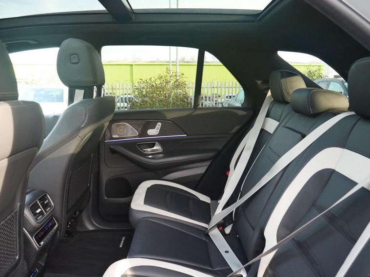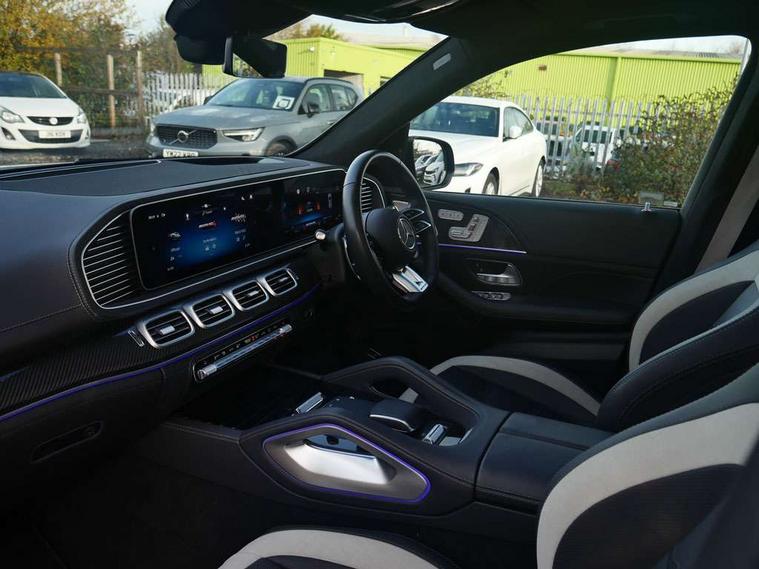 12.3 High resolution wide screen cockpit display with choice of three display styles Classic, Progressive or Sport and unique ambient lighting setting, 360 degree camera, Active parking assist with PARKTRONIC, AMG track pace, Attention assist, Brake wear warning display, Direct steer speed sensitive steering, DYNAMIC SELECT with a choice of driving modes (ECO, Comfort, Sport and Individual), Easy-pack tailgate - Powered opening/closing automatically, ECO start/stop function, Hard-disk navigation, Head up Display, MBUX augmented reality for navigation and live traffic, MBUX Interior assistant, MBUX voice control activated by keywords "Hey Mercedes", Mercedes Benz emergency call system, Mercedes me connect - vehicle set up and monitoring, Outside temperature display, Pre-installation for digital key transfer, Remote boot release, Service indicator (ASSYST), Status display for rear seat belts in instrument cluster, Traffic sign assist, Trip computer in multifunction display showing current fuel consumption, Wireless charging, Wireless smartphone integration including Apple CarPlay and Android auto, 85 litre fuel tank, AMG active ride control suspension with adaptive dampers, AMG rear axle limited slip differential lock, AMG Speedshift TCT 9 speed transmission, Carbon fibre engine covers, Mild Hybrid starter alternator, Petrol Particulate Filter (PPF), Additional USB connection, Bluetooth interface for hands free and audio streaming, Burmester surround sound system, DAB digital radio tuner, Front and rear USB ports, Sound personalisation, Adaptive brake lights, Aluminium look, illuminated running boards with rubber studs, AMG bodystyling front and rear aprons, AMG exhaust system with two black chrome rectangular twin tailpipes, AMG performance exhaust system, Auto headlights, Automatically dimming rear view mirror, Body coloured bumpers, Electric windows with one touch opening/closing and obstruction sensors, Electrically adjustable, heated, folding exterior mirrors, Exterior styling - front bumper, radiator grille and front air intakes, Heated windscreen washers, LED 3rd brake light, LED daytime running light signet, LED rear lights, Matt black roof rails, Multibeam LED headlights with adaptive highbeam assist plus, Panoramic sliding sunroof, Radio aerial integrated into rear window, Rain sensing windscreen wipers, Rear side wing doors, Rear wiper, Roof rail system, Surround lighting with animated projection of the AMG logo, Top surround of side windows in polished aluminium, Transparent Bonnet, Visible twin pipe exhaust system integrated into bumper, Waistline in polished aluminium, 3 seat bench in 2nd row, 3 spoke AMG Performance multifunction steering wheel in carbon fiber/MICROCUT, 4 way adjustable front head restraints and 2 way rear head restraints, 40:20:40 split folding rear seats, AMG floor mats, AMG steering wheel buttons, Automatic child seat recognition sensor, Black MICROCUT Headlining, Dinamica microfibre roof liner in black, Double sunvisor, Electric height/reach adjustable steering column, Electrically adjustable rear seats, Front centre armrest with stowage compartment and illuminated grab handles, Gearshift paddles on steering wheel, Glove compartment - lockable, air conditioned and illuminated, Heated rear seats, Heated steering wheel, Illuminated front door sill with AMG lettering, Luggage compartment cover, Luxury head restraints in front, Quilted seat with AMG crest in headrests, Seat occupancy sensor for front passenger seat, Single front passenger seat, Soft close doors, Sports pedals in brushed stainless steel with rubber studs, Sunvisors with illuminated vanity mirrors, Temperature controlled cupholder, Thermotronic automatic 4 zone climate control, Touchpad, Air balance package - GLE, AMG Drivers package - GLE 63, AMG night package - GLE, Driving assistance package - GLE, Energizing plus package - GLE, Exclusive Trim package - GLE, Keyless go comfort package - GLE, Memory package with 4 way lumbar support - GLE, Warmth comfort pack - GLE, Active bonnet, Airbags - driver and front passenger, front sidebag, pelvis bag and window airbags, AMG high performance composite braking system, Anti-lock braking system (ABS), Black seat belts, Childproof locks manually operated for rear doors and electrically operated for rear power windows, Drivers knee airbag, Electronic parking brake, Electronic Stability Programme (ESP), High performance perforated front brake discs and silver brake calipers with AMG lettering, ISOFIX child seat points with automatic child seat recognition, Pre safe impulse side, Red Brake caliper, Three point rear seat belts, Tyre pressure monitoring system, Warning triangle and first aid kit, Alarm system/interior protection/immobiliser, Central locking with interior switch, automatic locking and crash sensor with emergency opening function, Chrome surround in electric key, Dashcam, Guard 360 degree vehicle protection plus, Carbon fibre trim elements, Dashboard and door beltlines in nappa leather, 22" AMG cross spoke forged alloy wheels in matte black, TIREFIT with tyre inflation compressor,