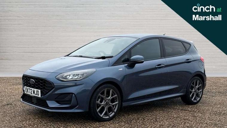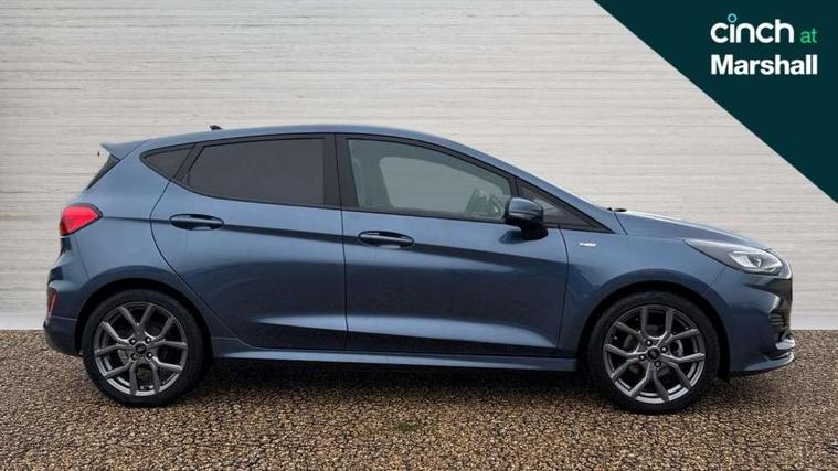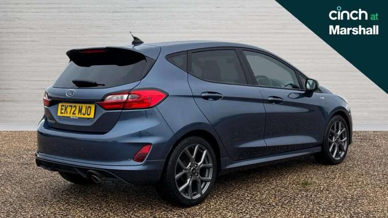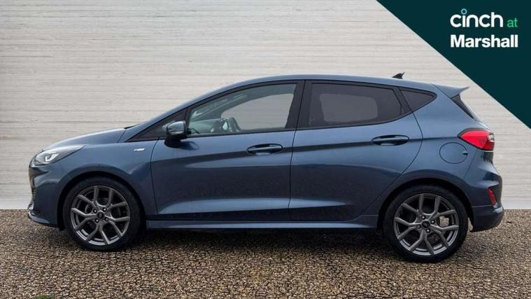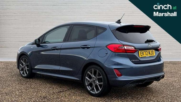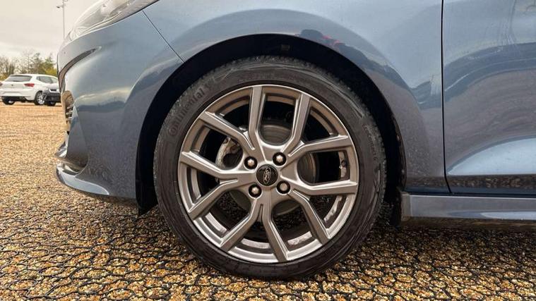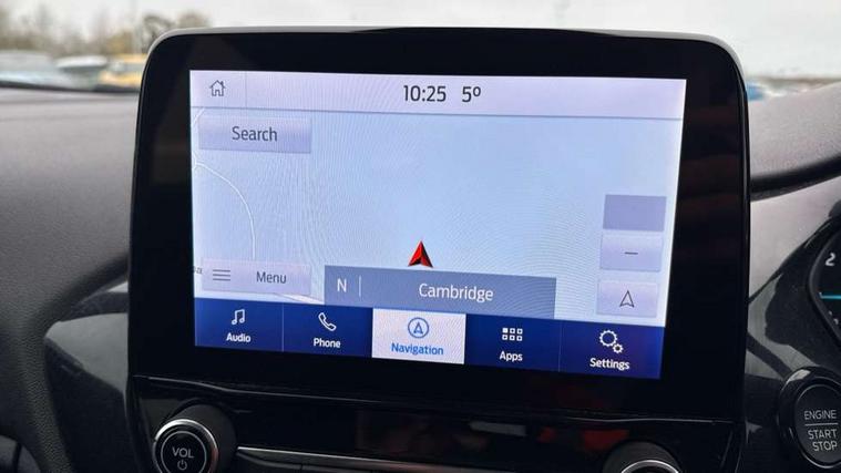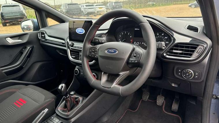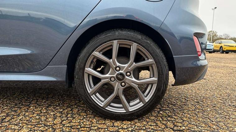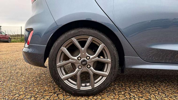 4.2" Colour TFT Ice blue illumination analogue cluster, Driver alert system, Electric power steering, Ford easy fuel, Lane keep assist, Lane keeping aid, Rear parking distance sensors, Selectable drive modes (Normal, Sport, Track), Trip computer, Sports suspension, 3rd brake light, Auto high beam, Automatic headlights, Body colour bumpers, Body colour large rear spoiler, Body coloured electrically operated with side indicators, Electric front windows/one touch facility, Electric rear windows, Quickclear heated windscreen, Rain sensing wipers and auto dimming rear view mirror, Rear privacy glass, Rear side wing doors, Rear wiper, Unique ST-Line grille, full bodystyling kit and large body coloured rear spoiler, 3 rear headrests, 3 seat bench in 2nd row, Adjustable head restraints, Black headlining, Centre console with opening armrest, 2x cupholders, 12v and USB, Cloth upholstery with red stitching, Leather gear knob, Manual 2 way passenger seat adjust, Manual 4-way driver seat adjust, Manual air conditioning, Premium floor mats, Sensico wrapped steering wheel, Single front passenger seat, 3 point seatbelts on all rear seats, Electronic stability control with hill start assist, Front and rear seat belt warning, Manual child lock in rear doors, Tyre pressure monitoring system, Keyless start with 'Ford Power' starter button, MyKey system, Remote central locking, Thatcham alarm with power door dead locks, 17" 5x2 spoke alloy wheels with rock metallic finish,