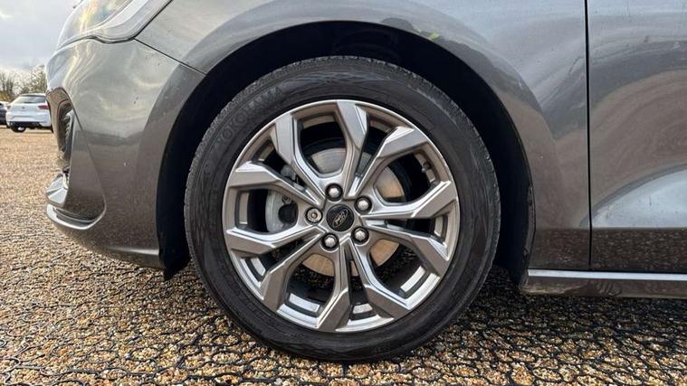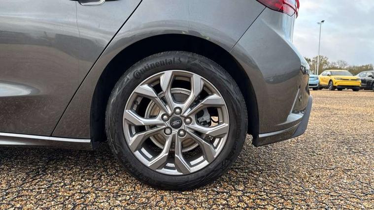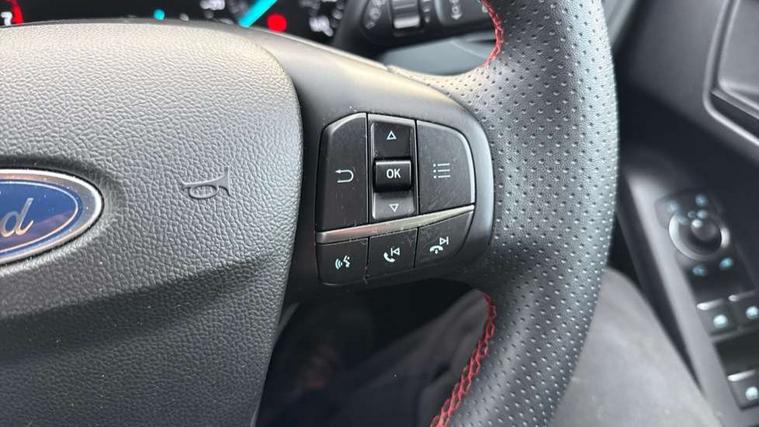 4.2" Colour TFT Ice blue illumination analogue cluster with trip computer, Bluetooth system, Digital clock, Easy fuel capless refuelling system, Eco mode, Ford SYNC 4 Navigation with 13.2'' touchscreen, DAB radio, Emergency Assistance, Apple Carplay & Android Auto, 6 speakers & FordPass Connect, Lane keeping system - lane keeping alert and lane keeping aid, PAS, Rev counter, Selectable drive mode, Service interval indicator, Sports tuned suspension, 2 USB ports, Auto headlamps (on/off), Body coloured door handles, Electrically operated front and rear windows with one touch opening and closing, Electrically operated heated power fold door mirrors with puddle lamp with side indicators, Front variable intermittent wipers with electric wash, Full fixed LED headlamps, Heated rear window, LED daytime running lamp, LED rear lamps, LED third brake light, Polished twin tailpipe, Privacy glass, Quickclear heated windscreen, Rain sensor, Rear side wing doors, Tailgate wash/wipe, Unique ST-Line grille, full bodystyling kit, and large body coloured rear spoiler, 3 rear headrests, 3 seat bench in 2nd row, Cloth upholstery, Dual zone electronic air temperature control, Height adjustable front headrests, Isofix child seat preparation, Reach + rake adjustable steering column, Single front passenger seat, 3x3 point rear seatbelts, ABS+Electronic Brake force Distribution, Auto hold function, Driver airbag, EDL traction control, Electronic parking brake, Electronic stability control, Front and rear seatbelt reminder, Front inertia reel height adjustable seatbelts with pre-tensioners, Front passenger airbag, Front side airbags, Passenger airbag deactivate switch, Post collision braking, Pre collision assist with autonomous emergency braking and pedestrian/cyclist detection, Remote/power child rear door locks, Side curtain airbags, Three rear inertia reel lap/diagonal seatbelts, Tyre pressure monitoring system, Keyless entry and keyless start, MyKey system, Remote central locking & engine immobiliser, Thatcham alarm with power door dead locks, 17" 5 spoke Rock mettalic finish alloy wheels with mini spare wheel,