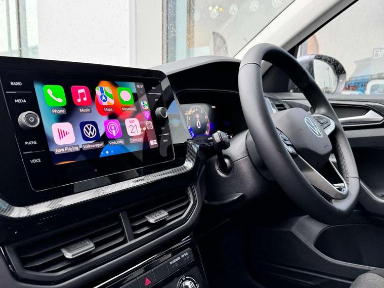 'Lights On' Reminder warning buzzer, Adaptive cruise control including front assist, forward collision warning, autonomous emergency braking, speed limiter, Advanced driver attention and drowsiness monitor, Blind spot monitoring, Car information display, Dynamic road sign display, E-Sim card for online connectivity, eCall emergency call system, Front and rear parking sensors, Low washer fluid warning light, Multifunction computer with visual gear change recommendation for fuel consumption, Multifunction front facing camera for distance control, Operating permit alteration, Power assisted steering, Preparation for navigation system with media and internet package, Preparation for We connect and We connect plus, Rear view camera, Semi-automated driving assistance, travel assist including lane keeping system Lane Assist and emergency assisst, Speedo, rev counter, electronic odometer, trip, service interval display, exterior temperature and fuel gauge, Warning sound and light for doors and tailgate open, Warning sound and light for front seatbelts unfastened, Wireless Car net app connect with Apple CarPlay, combined functionality of Apple CarPlay/Android Auto and MirrorLink, Misfuel prevention device, Start-stop system with battery regeneration (recuperation - energy recovery during braking), 2 USB C ports in front, 2 USB charging sockets on the centre console in the rear charging capacity upto 45W, Diversity antenna for FM reception, Music playback - MP3, WMA and AAC files, Radio, Automatic dimming interior rear view mirror, Automatic hazard lights activation under emergency braking, Automatic headlight control with LED separate daytime running light and coming home and leaving home feature, Black roof rails, Body colour door handles, Body colour door mirrors, Body coloured bumpers, Dynamic headlight range control with self adjusting whilst driving, Electric folding door mirror, adjustable, heated with front passenger exterior mirror lowering function, Exterior mirrors convex on the left and aspherical on the right, Front and rear electric windows, Galvanised body, Heat insulating and laminated safety glass windshield, Heat insulating darkened glass in side and rear windows, High Beam Assist, automatic sensing for switching between dipped and main beam, LED rear combination lights, LED third brake light, Lower door sills and door pillars in black, Rain sensor, Rear fog light on one side, reversing light on both sides, Rear side wing doors, Rear tinted glass 65% approx light absorbing from B pillar backwards, Rear window aerial, Rear window wiper with intermittent control, Reflectors in all doors, Scuff plates, Tailgate with integrated roof spoiler, 12V Accessory socket in centre console, 3 rear head restraints, 3 seat bench in 2nd row, 60/40 split folding rear seat backrest, Ambient lighting and logo projection, Ceramique roof lining, Cloth upholstery, Door and side trim panel, Drawer under drivers seat, Driver and front passenger sunvisor with vanity mirror, Dust and pollen filter, Front and rear reading lights X 2, Front centre armrest with storage compartment, Front seat back storage pockets, Glove compartment door with light, Heating and fresh air system with 4 stage blower, Height/reach adjust steering wheel, Instrument lighting white adjustable panel illumination, Interior light with switch off delay and dimmer, Isofix anchors for child seats on outer rear seats and front passenger seats, Leather gearshift handle, Leather wrapped multifunction steering wheel, Luggage compartment floor, Luggage compartment lighting, Manual front seats with height adjustment, Padded dashboard, Removable luggage compartment cover, Single front passenger seat, Storage compartment in drivers and front passengers door, Unsplit sliding rear seat bench, 3 point outer rear seat belts with ECE label, 3 Point seatbelt for centre rear seat, Anti-lock Braking System (ABS) with Hydraulic Brake Assist (HBA), Automatic post collision braking system, Disc brakes in front, Driver and front passenger safety-optimised head restraints, Drivers and Front Passengers airbags with front passengers airbag deactivation switch, Drum brakes in rear, ESC with EDL and ASR (traction control), Extended and predictive pedestrian/cyclist protection, Front and rear passenger curtain airbag system including front side airbags, Height adjustable front 3 point seatbelts + pretensioners, Hill start assist, Pre crash preventive occupant protection, Proactive passenger protection system in combination with front assist, Rear door child safety locks, Rigid safety cell with front and rear crumple zones, Single tone horn, Tyre pressure loss indicator, Volkswagen roadside assistance, Alarm with interior protection, Anti theft alarm system, Electronic engine immobiliser, Remote keyless entry using key fob including Start/Stop button on centre console with SAFELOCK, Remote tailgate unlocking using key fob, Low rolling resistance tyres,