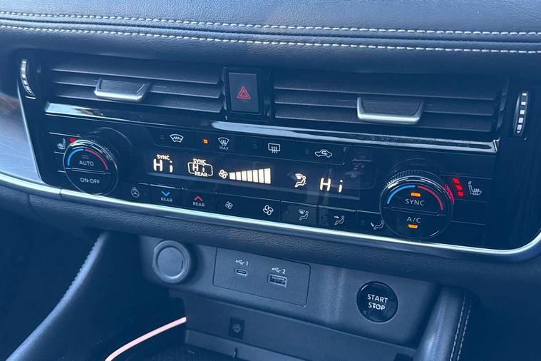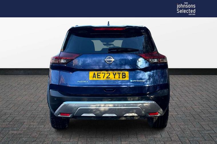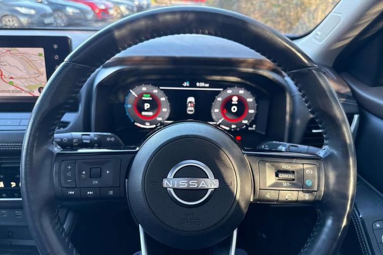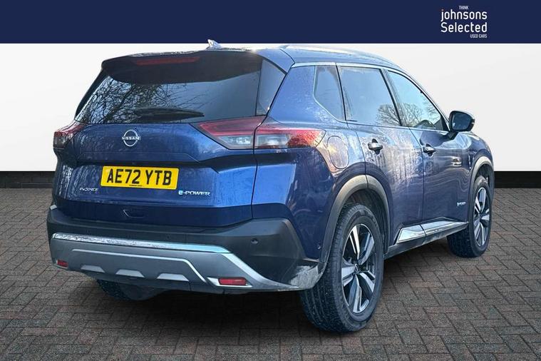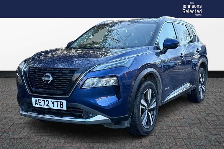 Advanced 10.8" head up display, Android auto/Apple CarPlay (Wired), Blind spot warning, Drive modes (sport, normal, eco, snow, off-road), e-Pedal step, Electric speed sensitive power steering, Emergency and breakdown call, Front and rear parking sensors, Full Digital 12.3" TFT Digital Combimeter, Google maps services - search, weather, 3D maps and Google street view, Hands free power tailgate, Idle stop/start system, Intelligent around view monitor, Intelligent driver alert system, Intelligent forward collision warning, Intelligent lane departure warning, Intelligent lane intervention, Intelligent lane keep assist, Lane departure prevention, Maximum speed limiter, Moving object detection, Nissan connect 12.3 inch touchscreen infotainment system, Nissan connect nav with TomTom traffic, Pro pilot and head up display, ProPilot park, Push button starter, Rear cross traffic alert, Rear view camera, Remote control services - door locks, lights, horn and car locator, Telematics - notifications and connectivity services, TomTom live traffic services, Traffic jam pilot, Traffic sign recognition with legal speed adjustment, Trip computer, Virtual personal assistant and firmware over the air capability, Wireless apple carplay, Wireless charging pad, 6 speakers, AM/FM audio system with DAB, Bluetooth audio streaming, Front USB connections (Type-A and Type-C), Rear USB charging only ports (Type-A and Type-C), 3rd brake light, Auto dimming rear view mirror, Auto rear wiper when reversing, Body colour mirror caps, Body coloured door handles, Bodyside mouldings, Chrome side window finisher, e-4ORCE badging, e-POWER badging, Electric auto folding door mirrors, Electrically adjustable and heated door mirrors, Follow me home headlights, Headlights auto levelling system, High beam assist, Intelligent auto headlights, LED daytime running lights, LED headlights with adaptive driving beam, LED rear lights, One touch front and rear electric windows with remote opening and closing, Openable glass roof with electric sunshades and roof rails, Partially body coloured bumpers, Rain sensing wipers, Rear privacy glass, Rear reversing light (bulb lighting), Rear roof spoiler, Rear side wing doors, Rear styling plate, Shark fin antenna, Splash free wipers, Super UV and infrared cut glass, Thermaclear heated windscreen, Three blink turn signal, 12v power socket in dashboard and luggage, 3 bench rear seats in 2nd row, 3 rear headrests, Butteryfly console, Chrome interior door handles, Driver and front passenger sunvisors with illuminated vanity mirrors, Driver seat back pocket, Electric adjustable 2 way lumbar support for driver, Electric adjustable 2 way lumbar support for passenger seat, Electrically adjustable driver seat, Front and rear heated seats, Front centre console and armrest, Front cupholders, Front door with bottle holders, Heated steering wheel, Height adjustable driver's seat, Height adjustable front headrests, Height adjustable passenger seat, Leather shift knob, Leather steering wheel, Luggage board system, Luggage space lighting, Multifunction steering wheel, Passenger seat back pocket, Rear armrest with 2 cupholders, Rear door bottle holders, Single front passenger seat, Sliding second row seats, Split folding 2nd row - 40/20/40, Steering column mounted gear shift paddles, Synthetic leather monoform upholstery, Tilt/telescopic adjustable steering wheel, Tri zone automatic climate control with pollen filter, Two rear isofix child seat anchorage points with top tether, 3x3 point rear seatbelt pretensioners + load limiters, ABS with EBD and brake assist, Active brake limited slip, Auto hold function, Child locks on rear doors, Curtain and front side, far side airbags, Driver and passenger airbags, Driver, passenger and 2nd row rear seat belt reminder, Electronic parking brake, Front seatbelt pretensioners + load limiters, Height adjustable front seatbelts, Hill start assist, Intelligent blind spot intervention, Intelligent front emergency braking with pedestrian, cyclist recognition and junction assist, Intelligent rear automatic braking, Tyre pressure monitoring system, Vehicle dynamic control, Engine immobiliser, Intelligent Key, Remote central door locking with deadlocking, Thatcham Cat.1 alarm, 19" Diamond cut alloy wheels, Tyre puncture repair kit,