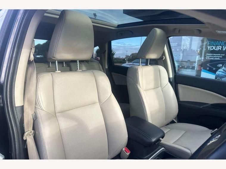 Bluetooth hands free telephone connection, Connect Navigation with 7" touchscreen, Digital Radio, Radio/CD/Mp3, Aha app integration, internet browsing, Cruise control, Electric power steering, Electric tailgate release, Front and rear parking sensors, Intelligent multi info display, Rear view camera, Service interval indicator, Speed limiter, Vehicle stability assist, 6 speakers, Steering wheel mounted controls, Subwoofer, USB/iPod connection, Aspheric door mirrors, Auto dimming rear view mirror, Automatic headlights with dusk sensor, Body colour bumpers, Body colour door handles, Body colour roof rails, Chrome door sill plates, Chrome rear garnish, Cornering light, Daytime running lights, Door mirrors tilt when reversing, Electric front windows/one touch facility, Electric rear windows + one touch facility, Electrically adjustable and heated door mirrors, Electrically retractable door mirrors, Front fog lights, Headlight washers, HID Headlights, High beam assist, Panoramic opening glass sunroof, Privacy glass, Rain sensor, Rear wiper, Shark fin roof aerial, Trailer stability assist, Welcome home function, 60/40 split folding rear seat, 8 way electric adjustable drivers seat, Accessory sockets, Ambient interior lighting, Boot light, Cargo hooks, Chrome interior door handles, Courtesy lights, Driver's electric adjustable lumbar support, Driver/passenger sunvisors with illuminated vanity mirrors, Dual zone automatic climate control, Electric lumbar adjustment on passenger's seat, Footwell ambient lighting, Front centre armrest, Front map lights, Front passenger seat height adjust, Front seatback pockets, Heated front seats, Illuminated glovebox, Isofix child seat preparation, Leather steering wheel and gear knob, Leather upholstery, Rear air vents, Rear centre armrest, Rear headrests, Tilt/telescopic adjustable steering wheel, Tonneau cover, 5 x 3 point seatbelts, ABS/EBD, Anti-whiplash front headrests, Brake assist function, City safety braking system, Deflation detection system, Dual front SRS airbags, Front and rear curtain airbags, Front side airbags, Hill start assist, Passenger airbag deactivate switch, Seatbelt warning, Honda super locks, Immobiliser, Remote keyless entry, Security alarm, Brushed alloy inlays, Temporary spare wheel,