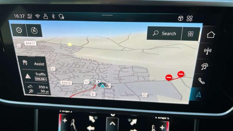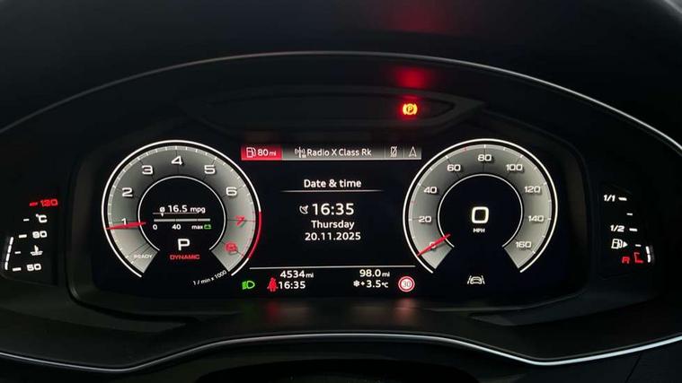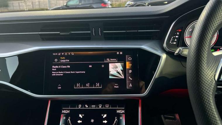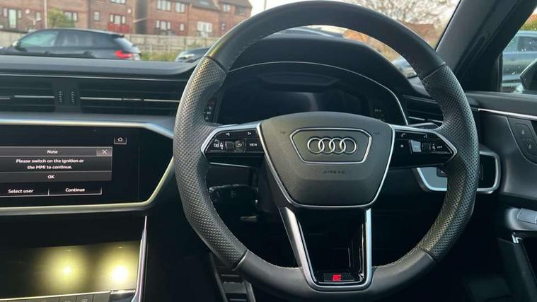 Audi connect safety and service (e-call), Audi connect with Amazon Alexa Integration, Audi drive select, Audi parking system plus - acoustic and visual park assist system for front and rear, Audi virtual cockpit, Automatic start/stop system with coasting functionality, Bluetooth interface, Camera based traffic sign recognition, Electric boot lid release, Lane departure warning system, MMI navigation plus with 10.1" and 8.6" touch screens, Progressive steering, Rear view camera, Service interval indicator, Smartphone interface includes wireless Apple carplay/Android Auto, Voice control system, Sports suspension, Audi front music interface, Audi sound system, Auxiliary input socket, DAB Digital radio, USB connection, Body coloured door mirrors, Electric front/rear windows, Electrically adjustable heated and folding + automatically dimming exterior mirrors with memory function, Frameless auto dimming interior rear view mirror, Front intermittent wipers, Heat insulating darkened glass in side and rear windows, Heat insulating glass in windshield, LED rear lights with dynamic indicators, LED signature front daytime running light, LED third brake light, Matrix LED headlights, Matt black rear diffuser with diffuser strip and tailpipes in chrome, Matt black side air intake grille with inlay in matt aluminium, Privacy glass, Radiator grille in anthracite black matt, single frame in chrome and horizontal struts in matt aluminium silver, Rain and light sensors, Rear boot, Rear side wing doors, 2 zone deluxe electronic climate control, 3 spoke high multi-function perforated leather steering wheel with contrast stitching and shift paddles, 40/20/40 split folding 3 rear seat bench in 3 parts with rear centre armrest, Audi phone box light, Black cloth headlining, Electrically adjustable front seats including seat height, fore/aft position, backrest angle and 4-way lumbar with memory for driver's seat, Front and rear floor mats, Front centre armrest, Front head restraints, Heated front seats, Height/reach adjust steering wheel, Illuminated door sill trims with S logo, Illuminated sun visors with vanity mirrors, Leather gear knob, Rear headrests, Single front passenger seat, Stainless steel pedals and foot rest, Tool kit and car jack, LED Interior Ambient Lighting Pack - A6, Non smoking pack - A6, S line exterior style pack - A6, 3 point seatbelts on all seats, Airbags - Front side, front and rear including head, Audi pre-sense front, EBD - Electronic brakeforce distribution, Electromechanical parking brake, Electronic Stability Control (ESC) including ABS, ASR and EDL, Extended pedestrian protection measures, ISOFIX child seat mounting for front passenger seat and ISOFIX child seat mounting with Top Tether for outer rear seats, Manual child proof rear door locks, Seatbelt monitoring, Tyre pressure warning light, Warning triangle and first aid kit, Anti theft alarm with tow away protection, Anti-theft wheel bolts and wheel loosening detection, Immobiliser, Keyless Go, Remote central locking, Matt brushed aluminium inlays,