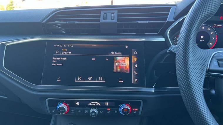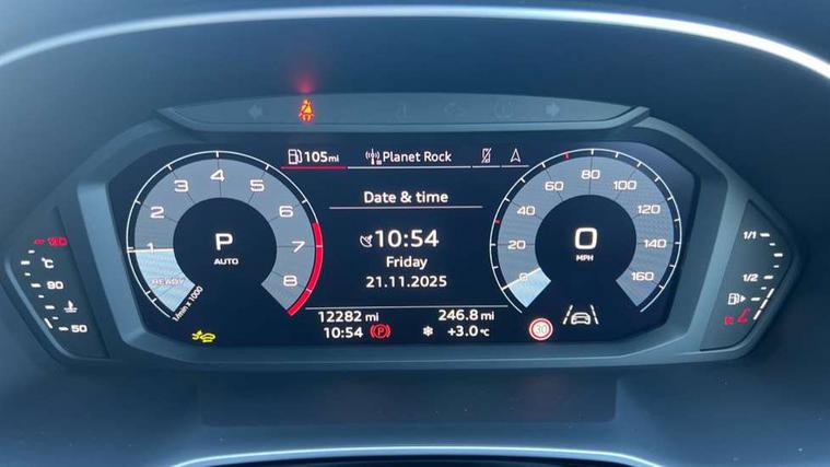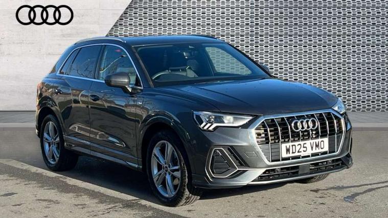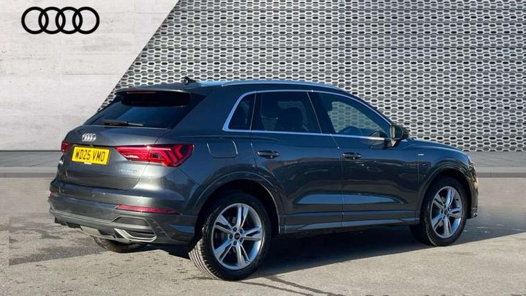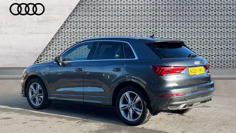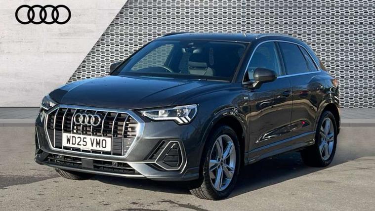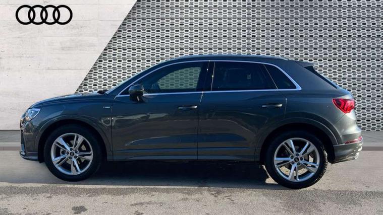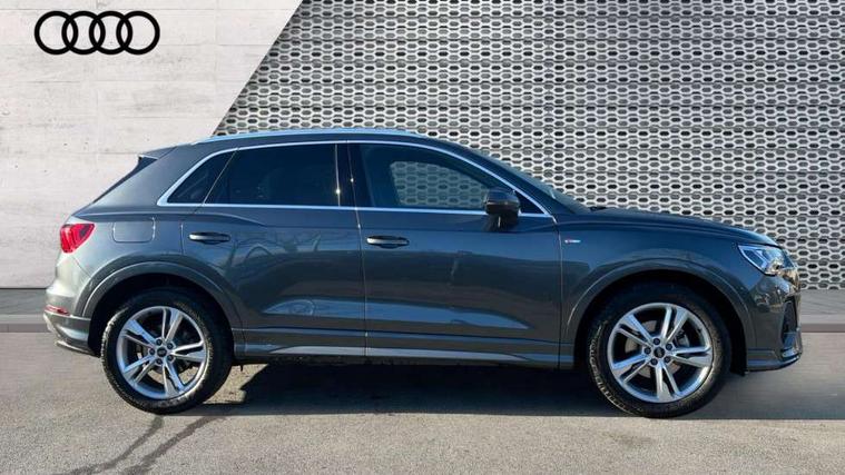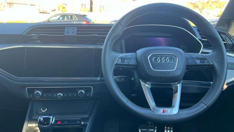 Amazon alexa Integration, Audi connect safety and service, Audi drive select, Audi lane departure warning, Audi Virtual Cockpit - 10.25" display, Bluetooth interface, Camera based traffic sign recognition, Distraction and Fatigue warning, Legal emergency call, MMI Navigation Plus with high resolution 10.1 inch touchscreen colour display, Power operated tailgate, Progressive steering, Service interval indicator, Smartphone interface includes wireless Apple carplay/Android Auto, Start stop system with recuperation, Voice control system with natural language interaction, Sports suspension, 2 USB-C ports with charge and data functions, 6 passive loudspeakers, DAB digital radio module, Acoustic windscreen, Aluminium roof rails, Aluminium window trim, Anthracite black radiator grille, Auto dimming door mirrors, Auto dimming frameless rear view mirror, Body colour front spoiler blade, Electrically folding, adjustable and heated door mirrors with integrated LED side indicators and kerb view function for passenger side, Front and rear electric windows, Front fog lights, Front side air inlets in matt platinum grey, Grille vertical bars in aluminium silver/Matt, High gloss black finish B and C pillars, LED Dynamic rear indicators, LED headlights with LED daytime running lights, LED rear lights, LED third brake light, Privacy glass dark tinted rear and rear-side windows (from B-pillar backwards), Rain and light sensors, Rear diffuser grille in grained matt black, Rear diffuser strip in matt anthracite black, Rear side wing doors, Rear wiper, S line badges on front wings, S Line front and rear bumpers and side skirts, Side skirt insert in matt Platinium grey, Variable front intermittent wipers, 12V socket in rear centre console, 3 seat bench in 2nd row, 3 spoke leather multifunction steering wheel features S badging and grips in perforated leather with contrast stitching, 40:20:40 folding with manual adjustment for 60:40 forwards/backwards position and backrest angle, Adjustable rear seat bench/backrest with centre armrest and cupholder, Black carpet mats, Black cloth headlining, Dual zone electronic climate control, Electric lumbar support, Front and rear black floor mats with contrast stitching in rock grey, Front and rear headrests, Front centre armrest, Height and reach adjustable steering wheel, Horizontal trim strip in matt platinum grey, Illuminated door sill trims with S logo, ISOFIX child seat mounting for front passenger with airbag deactivation and outer rear seat including top tether attachment point for outer rear seats, Luggage compartment sill protection in stainless steel, Manual front seats with height adjustment, Perforated leather gearknob, Single front passenger seat, Stainless steel pedals, Twin leather upholstery with front sport seats + S embossing, Non smoking pack - Q3, 3x3 point rear seatbelts, 6 airbags - Driver, front passenger, curtain and side windows, Audi pre-sense front with pedestrain and cyclist recognition, Electrically operated child locks on rear doors, Electromechanical parking brake, Electronic stabilisation control including ABS, ASR and EDL, Front seatbelt reminder, Hill descent control, Hill hold assist, Pre sense basic, Seatbelt monitoring, Tyre pressure warning, Warning triangle and first aid kit, Anti theft wheel bolts, Immobiliser, Remote central locking, Thatcham approved category 1 anti theft alarm, Aluminium look interior elements, Dark matt brushed aluminium inlay, Detail dashboard around MMI touch colour display in glass look, black with surround in aluminium look, Leatherette door armrest,