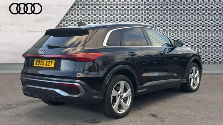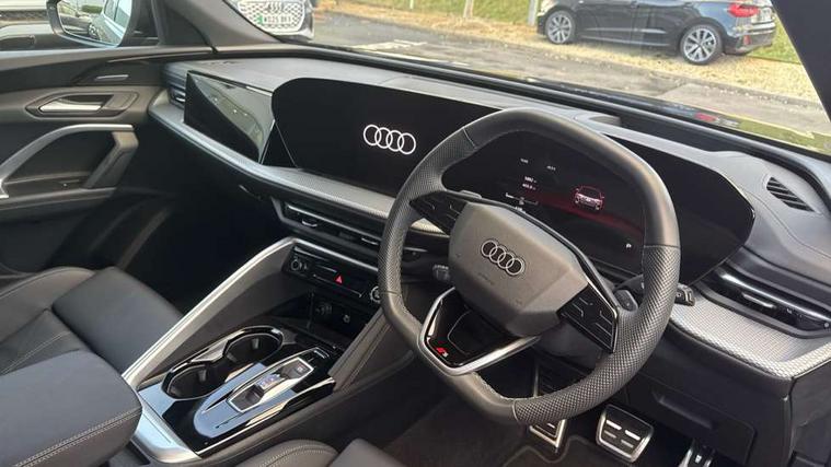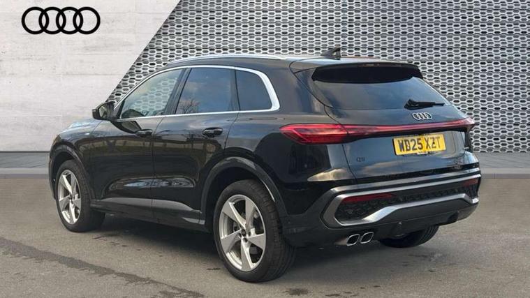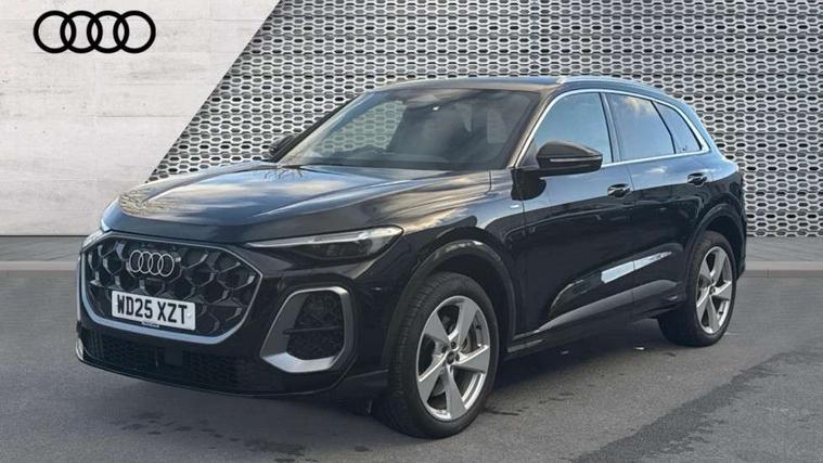 Adaptive cruise control, Advanced driver attention alert, Audi application store, Audi connect emergency call and service, Audi drive select, Audi smartphone interface, Audi virtual cockpit plus with 11.9" OLED colour display, Camera based traffic sign recognition, Fatigue monitor, Front cross traffic intersection assist, Lane departure warning system, MMI navigation plus with high resolution 14.5" OLED touchscreen colour display, Park assist plus, Parking system plus with 360 display, PAS, Reversing camera, Swerve assist and turn assist, Traffic sign based speed limiter, 2 USB-C ports in both the front and rear, Audi sound system impressive sound with 8 loudspeakers including centre speaker and subwoofer, 6-channel amplifier with a total output of 180 watts, DAB Digital radio, Smartphone compartment with wireless charging, Aluminium roof rails, Auto dimming rear view mirror, Body coloured door mirrors, Coming/leaving home lighting function, Electrically adjustable heated and folding + automatically dimming exterior mirrors, Front and rear electric windows, Front door sill trims with aluminium inlays, illuminated with 'S' logo, Grill frame, inlay and front air inlets in matt anthracite chrome, Headlight cleaning system, Heated rear window, High beam assist, High gloss window surrounds, LED headlights plus incl. digital DRL, dynamic coming and leaving home function with turning/all weather/motorway/manouevring and intersection lights, LED rear lights pro incl. dynamic rear indicators and illuminated light strip with animated coming and leaving home function, Logo projection light in exterior mirrors, Privacy glass, Projection third brake light for rear window in LED, Radiator grille in phantom black, Rear and side windows with heat insulating glass, Rear honeycombe grille in matt black with inlay in matt anthracite chrome, Rear side wing doors, Rear wash/wipe, S Line badge on the front wings, S line bumpers in contrasting Volcano grey metallic paint finish, Towbar preparation, Windscreen with acoustic glazing, 3 rear head restraints, 3 seat bench in 2nd row, 3 spoke leather steering wheel with multi-function buttons with touch control, flattened on top and bottom, with S badging and contrast stitching, 40:20:40 split folding rear seat bench with centre armrest and cup holders, Comfort centre armrest, Deluxe 3 zone electronic climate control, Front and rear floor mats, Front seats with manual adjustment for position and 4-way electric lumbar support, Front sport seats with integrated head reastrains, Headlining in black cloth, Heated front seats, i-Size child seat mounting on the front passenger side and outer rear seats, i-Size and top tether on the outer rear seats, Interior trim in aluminium look, Luggage compartment lid, electrically opening and closing, Manual steering column adjustment, Single front passenger seat, Softwrap in leatherette, Stainless steel pedals and footrest, Steering wheel grips in perforated leather and shift paddles, Ambient lighting package plus - Q5, Storage and luggage compartment pack - Q5, 3x3 point rear seatbelts, ABS, Acoustic vehicle alerting system, Driver and front passenger airbag with passenger airbag deactivation, Electric child safety locks, First aid kit with warning triangle and high visibility vests, Front emergency brake assist, Front side airbags with head airbag system and front interaction airbag, Hill hold assist, Rear seat occupant reminder, Tyre pressure loss indicator, Anti theft alarm, Anti-theft wheel bolts, Remote control key with SAFELOCK and keyless go, Accent surfaces and control buttons in gloss black, Anthracite matt brushed aluminium inlays with linear embossing, Black dashboard with contrast stitching, Upper and lower interior elements in artificial leather, Tyre repair kit,