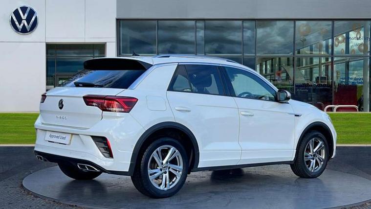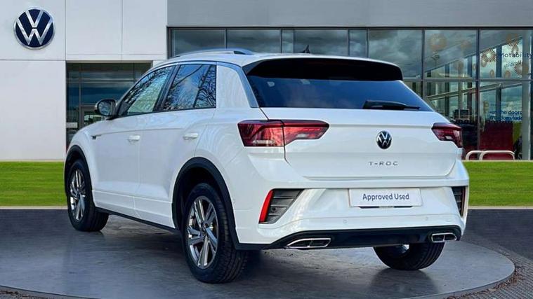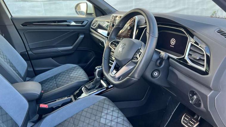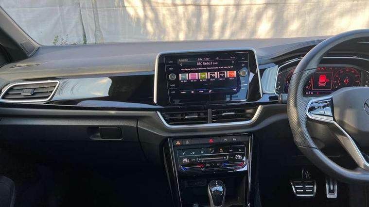10.25" Digital cockpit pro, Bluetooth mobile phone interface, Driver alert system with fatigue detection, Driver tips and journey analysis, Emergency call service, Lane keeping system Lane Assist, Modified key software - reduce switch off time for key status change to Long no motion, Online services, Park assist including front and rear parking sensors, Service interval indicator, Tailgate/trunk lid release from outside, Think blue trainer driver tips and journey analysis, Warning sound and light for front seatbelts unfastened, Wireless app connect, Battery regeneration during braking, Start/stop function with battery regeneration, Diversity antenna for FM reception, Front and rear 6 speakers, Music playback - MP3, WMA and AAC files, Premium USB cable in choice of either Apple or Android smartphone compatibility, SD card slot, Simultaneous pairing of 2 compatible mobile devices, Title and cover art display, We Connect and We Connect Plus functionality, 3rd brake light, Auto dimming interior rear view mirror, Automatic hazard lights activation under emergency braking, Automatic headlight control with LED separate daytime running lights with coming/leaving home function, Extended roof spoiler, Exterior mirrors aspherical on driver side, convex on front passenger side, External USB type C socket and charging sockets, Front windscreen wiper with intermittent wipe and 4 position delay, Heated rear window, LED Plus headlamps, LED rear combination lamps, LED rear number plate lights, LED tail lamp rear comination lamps, Power windows with comfort operation and circuit breaker, R-Line design body coloured bumpers, Rain sensor, Rear exhaust tailpipe, Rear fog light on one side and reversing lights on both sides, Rear side wing doors, Rear wash/wipe with intermittent wipe setting, Remote electrically foldable door mirrors, puddle lights and reverse activated passenger's door mirror, 12V power socket in centre console, 3 rear head restraints, 3 seat bench in 2nd row, 4 load lashing points in luggage compartment, Air care climatronic air conditoning system with active combination filter and 2-zone temperature control, Black roof lining, Chrome plated radiator grille inserts, air vent surrounds and light switch surrounds, Door and side trim panel with leatherette insert, Drawer under drivers seat, Front + rear carpet mats, Front centre armrest, Front cupholders x 2, Front footwell illumination, Front reading light, Front scuff plates with R logo, Instrument lighting, white adjustable panel illumination, Interior ambient lighting and surround lighting, Interior light delay, Isofix child seat preparation, Leather gearshift handle, Load-through provision with cup holder when folded down ('Unsplit rear seat bench, split folding backrest, with centre armrest), Luggage compartment lighting, Single front passenger seat, Stainless steel pedals, Storage compartment in left and right luggage area, Storage compartment in rear doors, Storage compartments in driver and front passenger doors, Sunvisors with illuminated vanity mirrors, Variable boot floor, height adjustable and removable, Driver assistance pack without proactive passenger protection - T-Roc, 3 point height adj front seatbelts + pretensioners, 3 point seatbelts in outer rear with ECE label, ABS, Child locks on rear doors, Driver and front passenger airbag with front passenger airbag deactivation, Driver and front passenger safety-optimised head restraints, Drivers seatbelt reminder, Electronic parking brake, Electronic Stability Control (ESC) inc EDL (Electronic Differential Lock) and ASR (Traction Control), Front and rear passengers curtain airbag system including front side airbags, Front assist with city emergency braking and pedestrian monitoring, Front seat side impact airbags, Hill start assist, Predictive pedestrian protection, Rear disc brakes, Single tone horn, Tyre pressure loss indicator, Volkswagen roadside assistance, Alarm with interior protection, Anti-theft alarm system with interior monitoring, backup horn, and towing protection, Remote central locking with SAFELOCK, radio remote control with 2 remote control folding keys, Trims for alloy wheels,