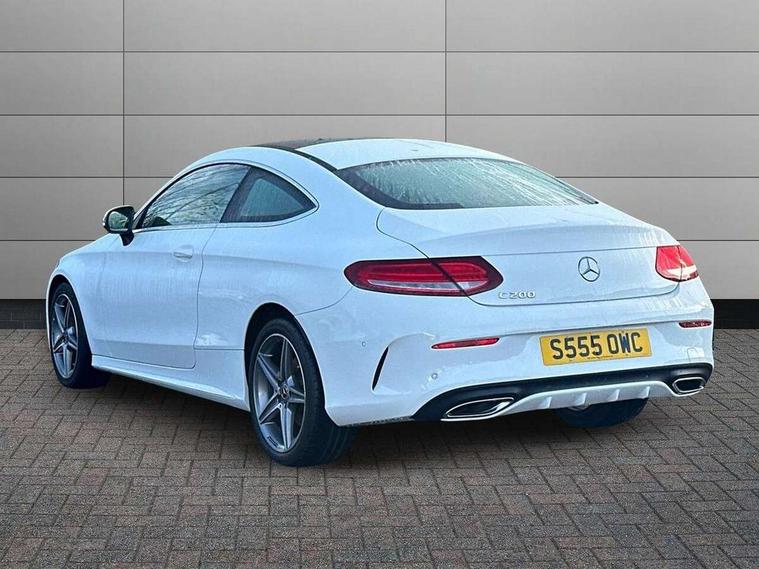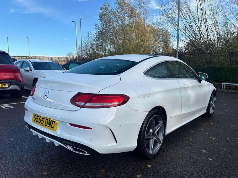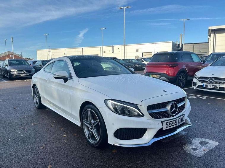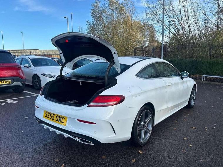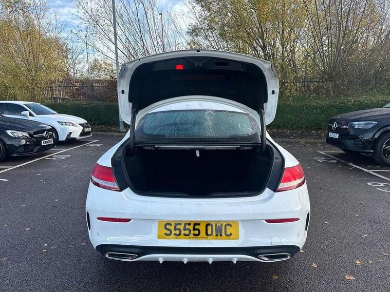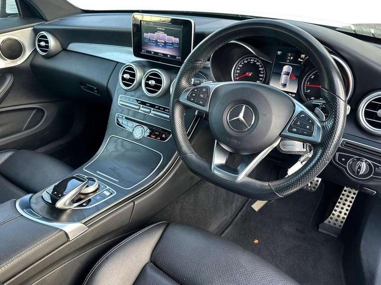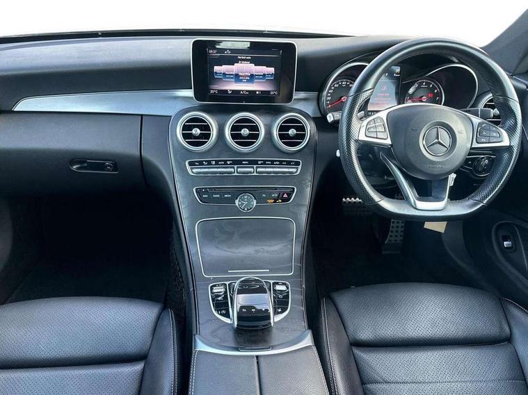 Active park assist with parktronic system, Attention assist, Bluetooth interface for hands free telephone, Collision prevention assist plus, DYNAMIC SELECT with a choice of driving modes (ECO, Comfort, Sport, Sport+ and Individual), Garmin Map Pilot navigation system with SD card, touchpad and voice control, Instrument cluster with 5.5-inch TFT multi-function display, Multi function trip computer, Outside temperature gauge, Remote boot release, Service indicator (ASSYST), Speed sensitive steering, Sport exhaust system, 2 USB ports, Audio 20 radio/CD with 7" colour display with multi touch keypad, DAB digital radio module, Frontbass loudspeakers, Media interface, Steering column mounted multifunction controls, Adaptive brake lights, AMG front, rear apron and side skirts, Auto dimming driver's door mirror, Auto dimming rear view mirror, Body coloured bumpers, Chrome grille surround, Door sill plates with "Mercedes-Benz" lettering, Electric adjustable/heated/folding door mirrors, Electric windows one touch open/close, Green tinted glass, Heated windscreen washers, LED daytime running lights, LED tail lights, Radiator grille with integral star, Rain sensor windscreen wipers, Side windows surround in polished aluminium, Twin chrome exhaust tailpipes, 2 cupholders in front centre console, 2 rear head restraints, 3 spoke flat bottom multi-function leather AMG steering wheel, 4-way lumbar support for drivers seat, 4-way lumbar support for front passenger seat, 40:20:40 split folding rear seats, AMG floormats, Auto dual-zone climate control system, Auto Mercedes-Benz child seat recognition sensor, Door courtesy lamps, Electric front seats, Electric height adjustable front seats, Front centre armrest with storage compartment, Front footwell illumination, Heated front seats, Height/reach adjustable steering column, Illuminated front/rear door handle recesses, Illuminated glovebox, Isofix rear child seat fastenings, LED reading lights, Sports pedals with stainless steel surfaces and rubber studs, Sports seats with integrated headrests, Steering wheel gearshift paddles, Sunvisors with illuminated vanity mirrors, Seat comfort pack - C Class, Stowage space pack - C Class, 2 rear seatbelts, ABS + BAS, Active bonnet, Adaptive brake system, Brake calipers with Mercedes-Benz lettering + perforated brake discs, Drivers knee airbag, Drivers pelvis airbag, Dual stage driver/passenger airbags, Electronic parking brake, ESP with ASR, Front side airbags, Hill hold control, Hill start assist, Tyre pressure monitoring system, Warning triangle and first aid kit, Window airbags, Alarm system/interior protection/immobiliser, Chrome surround in electric key, Remote central locking,