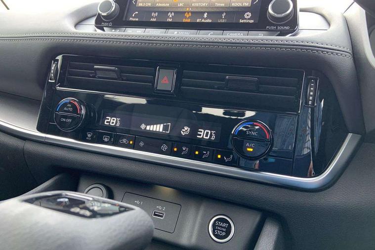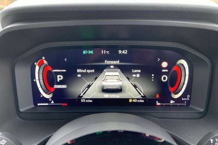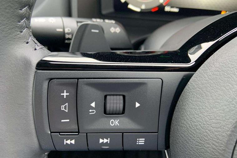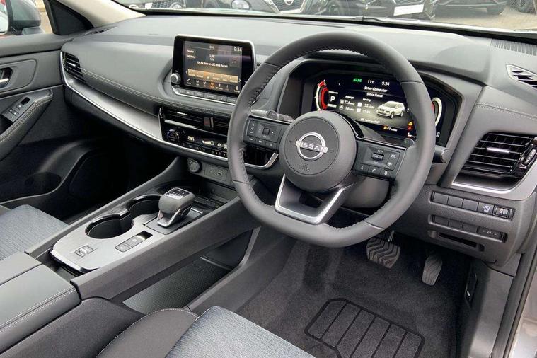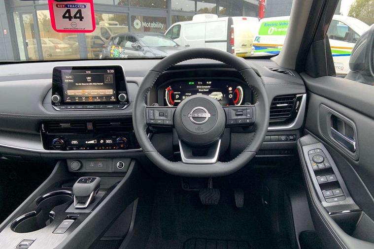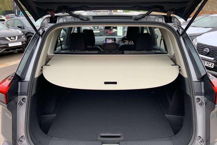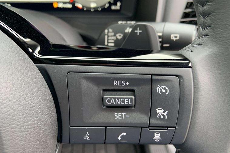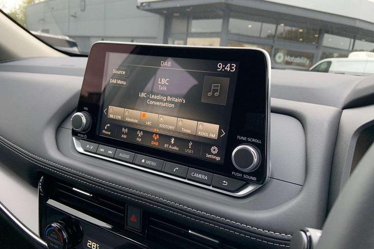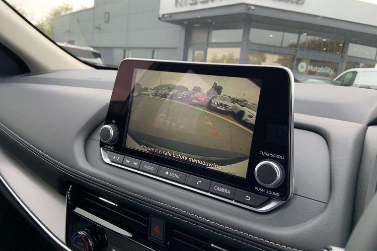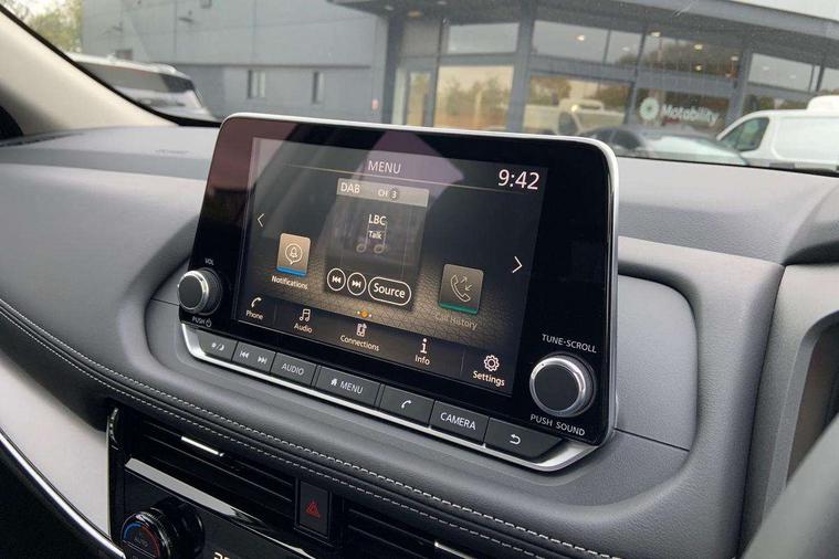 Android auto/Apple CarPlay (Wired), Blind spot warning, Drive assist custom mode, Drive modes (sport, normal, eco), Driver drowsiness and attention warning, Electric speed sensitive power steering, Emergency and breakdown call, Event data recorder, Front and rear parking sensors, Full Digital 12.3" TFT Digital Combimeter, Idle stop/start system, Intelligent driver alert system, Intelligent forward collision warning, Intelligent lane departure warning, Intelligent lane intervention, Intelligent lane keep assist, Maximum speed limiter, Moving object detection, Nissan connect 8" touchscreen infotainment system, Push button starter, Rear cross traffic alert, Rear view camera, Reversing detection, Traffic sign recognition with legal speed adjustment, Trip computer, Wireless charging pad, 6 speakers, AM/FM audio system with DAB, Bluetooth audio streaming, Front USB connections (Type-A and Type-C), Rear USB charging only ports 2 Type-C, Auto dimming rear view mirror, Auto rear wiper when reversing, Body colour mirror caps, Body coloured door handles, Bodyside mouldings, Chrome side window finisher, Electric auto folding door mirrors, Electrically adjustable and heated door mirrors, Follow me home headlights, High beam assist, Intelligent auto headlights, LED 3rd brake light, LED daytime running lights, LED Headlights, LED rear lights, One touch front and rear electric windows with remote opening and closing, Partially body coloured bumpers, Rain sensing wipers, Rear reversing light (bulb lighting), Rear roof spoiler, Rear side wing doors, Rear styling plate, Shark fin antenna, Splash free wipers, Three blink turn signal, 12v power socket in dashboard and luggage, 3 bench rear seats in 2nd row, 3 rear headrests, 60/40 split folding rear seat bench, Butteryfly console, Chrome interior door handles, Cloth monoform upholstery, Driver and front passenger sunvisors with illuminated vanity mirrors, Driver seat back pocket, Dual zone automatic climate control with pollen filter, Front centre console and armrest, Front cupholders, Front door with bottle holders, Height adjustable driver's seat, Height adjustable front headrests, Height adjustable passenger seat, Leather shift knob, Leather steering wheel, Luggage space lighting, Multifunction steering wheel, Passenger seat back pocket, Rear armrest with 2 cupholders, Rear door bottle holders, Single front passenger seat, Tilt/telescopic adjustable steering wheel, Two rear isofix child seat anchorage points with top tether, 3x3 point rear seatbelt pretensioners + load limiters, ABS with EBD and brake assist, Active brake limited slip, Auto hold function, Child locks on rear doors, Curtain and front side, far side airbags, Driver and passenger airbags, Driver, passenger and 2nd row rear seat belt reminder, Electronic parking brake, Front seatbelt pretensioners + load limiters, Height adjustable front seatbelts, Hill start assist, Intelligent blind spot intervention, Intelligent front emergency braking with pedestrian, cyclist recognition and junction assist, Intelligent rear automatic braking, Tyre pressure monitoring system, Vehicle dynamic control, Approach unlock and walk away lock, Engine immobiliser, Remote central door locking with deadlocking, Thatcham Cat.1 alarm, 18" Diamond cut alloy wheels, Tyre puncture repair kit,