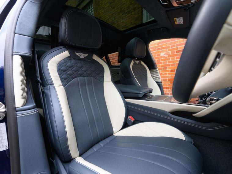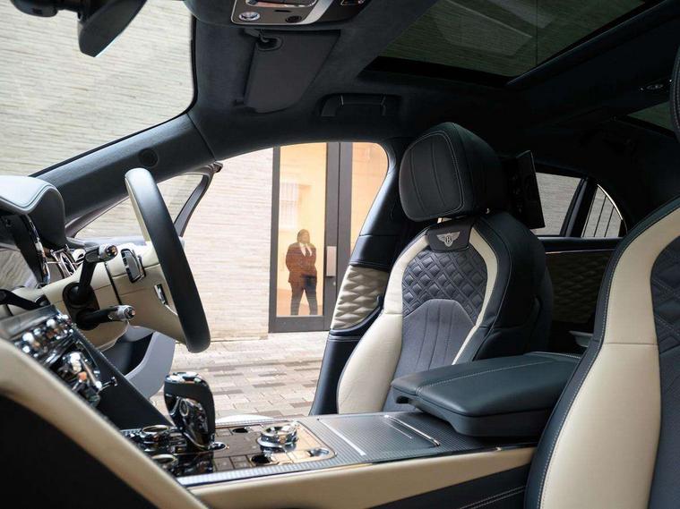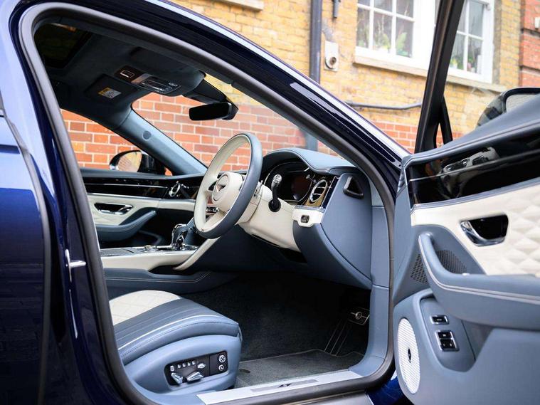4G LTE telephone module, Apple car play, Blind spot assist, Bluetooth telephone connectivity, Car computer, City assist, Continuous damping control, Emergency services call system, Engine start/stop button, Front/rear park distance control, Hands free boot opening, Inductive phone charger, Infotainment system/satellite navigation, Power latching to all doors for easy entry, Rear cross traffic alert, Speed sensitive power steering, Telephone voice dialling, Top view camera, Traffic sign recognition, Anti roll bar front and rear, Battery charger, Dynamic ride with electronic All wheel steer, Wi-Fi hot spot, 3rd brake light, Acoustic glass, Adaptive brake lights, Auto dimming door mirrors, Automatic headlamps, Body coloured bumpers, Elec/heat/adj/fold door mirror+memory, Electric front windows, Front fog lights, Full LED Matrix headlamps with high-beam assist, Hidden antennae, LED daytime running lights, Rain sensor windscreen wipers, Rear boot, Rear diffuser, Rear electric windows, Rear side wing doors, S fascia badge, S fender badge, 14 way Elec adj front seats/memory/lumbar control, 5 seats, Air Ioniser, Door lights, Easy entry/electrically adj steering column+memory, Electric rear window sunblinds, Fluted seat S design, Footwell illumination, Front head restraints, Full hide trim upholstery, Illuminated centre console storage, Isofix attachments on outer rear seats, Multi-zone automatic climate control - two zone, Rear centre armrest with 2 cupholders + storage, Rear headrests, Blackline Specification with matrix grille - Flying Spur, City specification pack - Flying Spur, Colour specification pack - Flying Spur, Comfort specification pack - Flying spur, 3 point inertia reel seatbelts on outer rear seats, ABS/EBD, Child safety lock, Driver/front passenger airbag, Drivers knee airbag, Electronic park brake with move-off assist, Electronic tyre pressure monitoring, ESP, Exit warning, Front and rear curtain airbags, Front and rear thorax airbag system, Front passenger airbag deactivation, Hydraulic Brake Assist (HBA), Motor Slip Regulation (MSR) - Engine Drag Torque Control, Pedestrian warning, Traction control, Anti-theft wheel bolts, Bentley GPS advanced tracking system, Immobiliser, Keyless entry, Keyless ignition, Preparation for vehicle tracking, Remote central locking, Ultrasonic alarm, Tyre inflation kit,