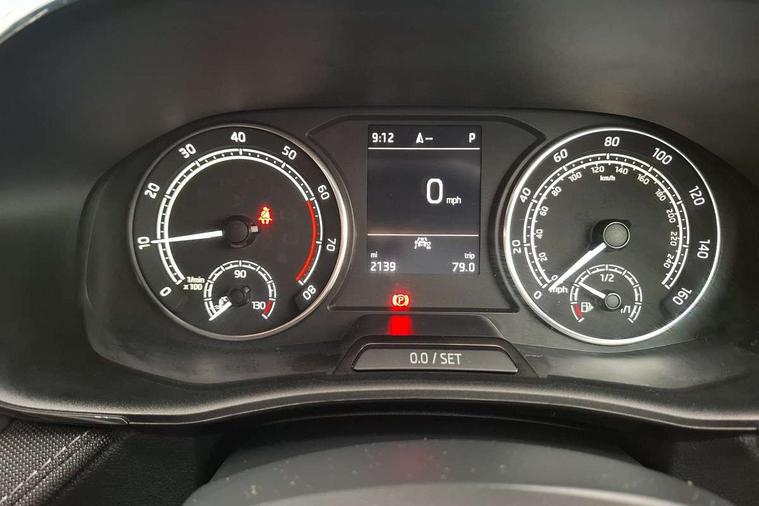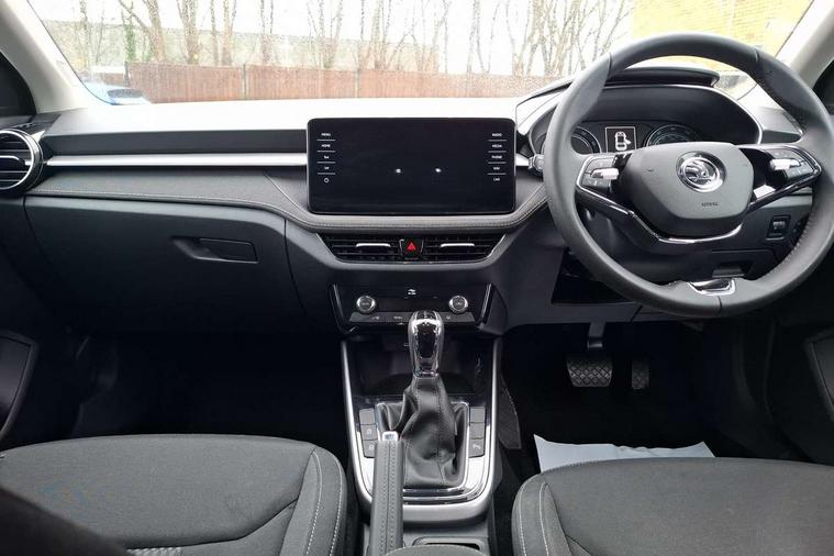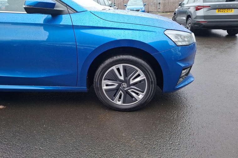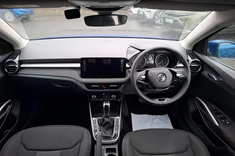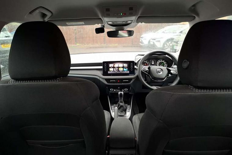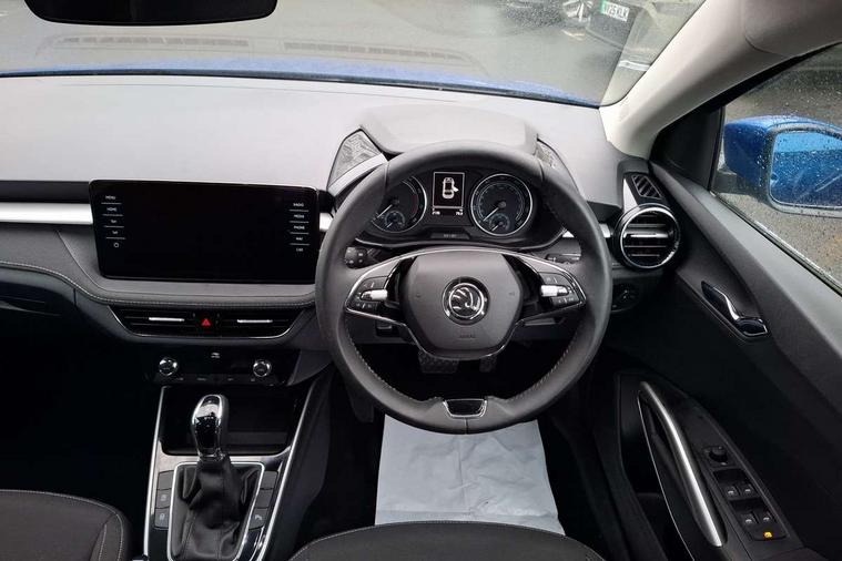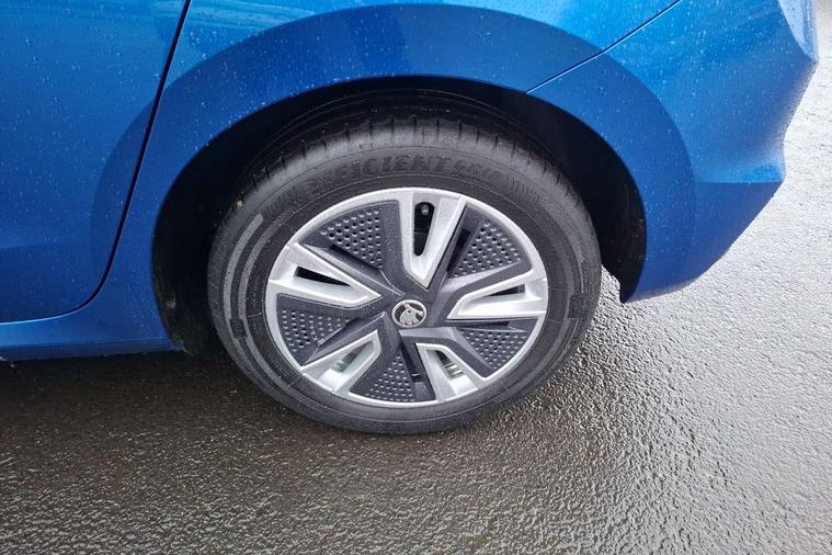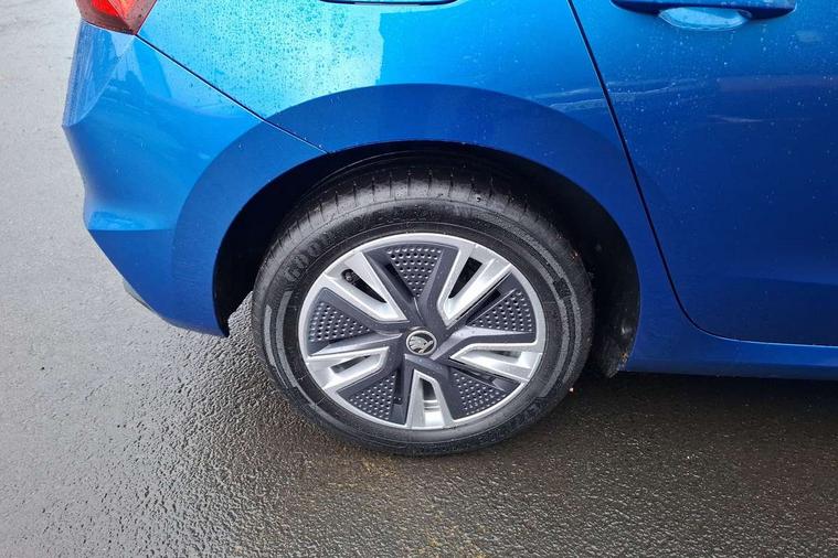 Bluetooth connection, Driver alert system - DAS, Electromechanical power steering, Exterior temperature gauge, Service interval indicator, 2x USB-C in the front (for data transmission and charging), 6 Speakers (4 in front and 2 in rear), Auxiliary socket for external MP3 player, DAB digital radio reception, Web radio, Auto dimming rear view mirror, Basic LED Headlights, Body colour door mirrors, Body coloured bumpers, Chrome window surround, Door mirror integrated indicators, Electrically adjustable and heated door mirrors, Front and rear electric windows, Front fog lights, Front window wiper intermittent control, Headlight range control - Automatic, Ice scraper in fuel cap, LED daytime running lights with coming and leaving home feature, Rain sensor, Rear LED fog light, Rear side wing doors, Rear window wiper with washing nozzles, Roof mounted spoiler, SKODA tailgate lettering in chrome, Third brake light, 3 rear headrests, Backrest split and folding, Central console with fixed cup holder and storage box, Chrome handbrake release button, Comfort seats, Fabric upholstery, Front centre armrest, Gearshift knob/handle in leather, Hand brake lever handle in leather, Height adjustable front headrests, Height adjustable front seats, Height adjustable steering wheel, ISOFIX and TopTether anchorage points to the outer rear seats, ISOFIX and TopTether on the front passenger seat, Luggage compartment lighting, Manually adjustable lumbar support in front seats, Pollen filter, Rear seat bench unsplit, Removable cup holder, Single front passenger seat, Storm grey headlining, Sun visors with mirror and airbag label on passenger side, Textile floor mats, Ticket holder, Umbrella in drivers door, 3-point height adjustable front seats belts with pretensioner and force limiter, Automatic warning lights in case of crash, Driver and passengers airbag with switch off function, e-Call+, ESC including ABS, MSR, ASR, EDS, HBA and XDS, Front and rear seat belt warning, FRONT ASSIST (AEB City and AEB Inter Urban), Front side airbags, Head airbags, Hill hold assist, One tone horn, Pedestrian protection, Three rear 3-points safety seat belts with pretensioner and force limiter including stop function for outer rear seat belts, Tyre pressure monitoring system, Anti-theft alarm system including immobiliser, interior monitoring, backup horn, and towing protection, Central locking with radio remote control, interior controls, SAFE function and 2 foldable keys, KESSY - Keyless engine start/stop, Chrome edged air vents, Satin black door and side trim panel in front, Anti-theft wheel bolts protection, Super-low rolling resistance tyres,