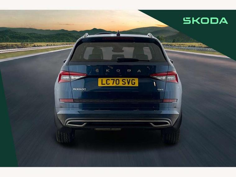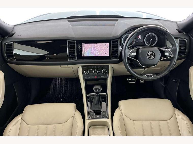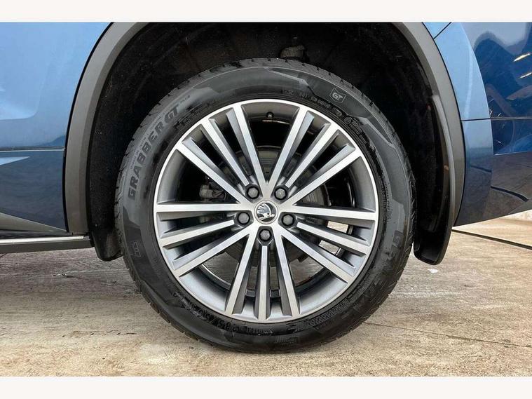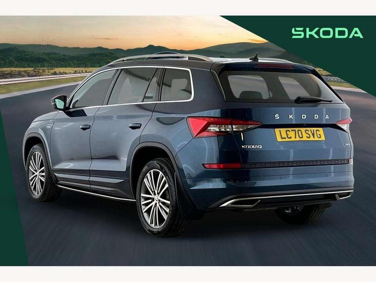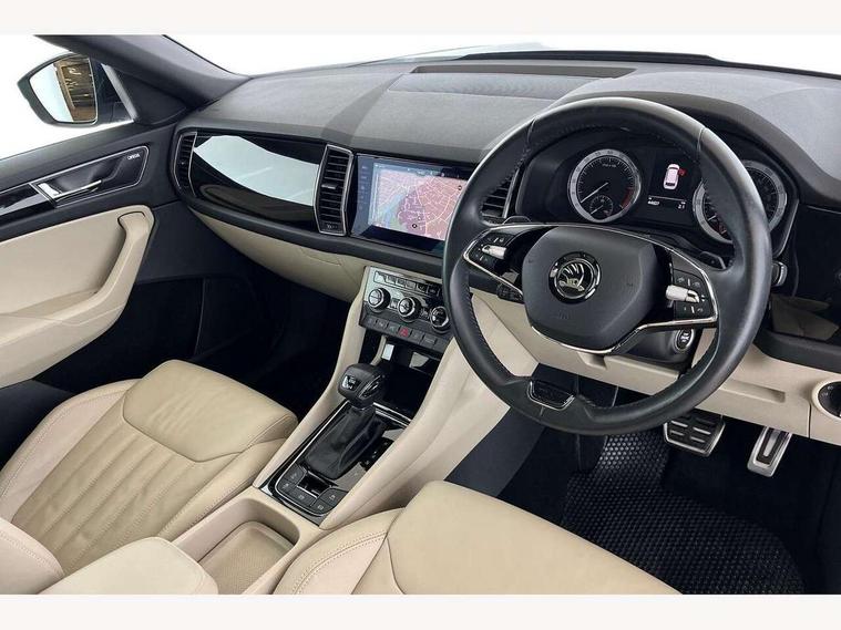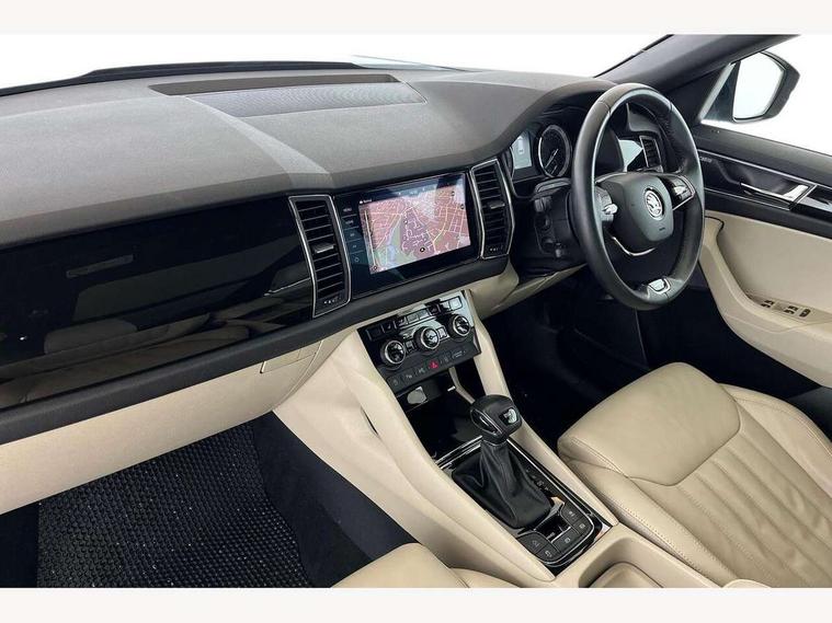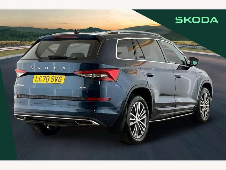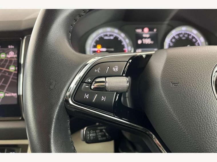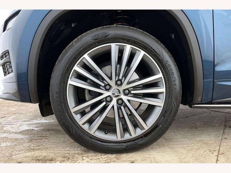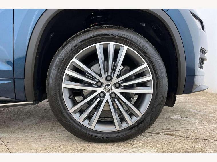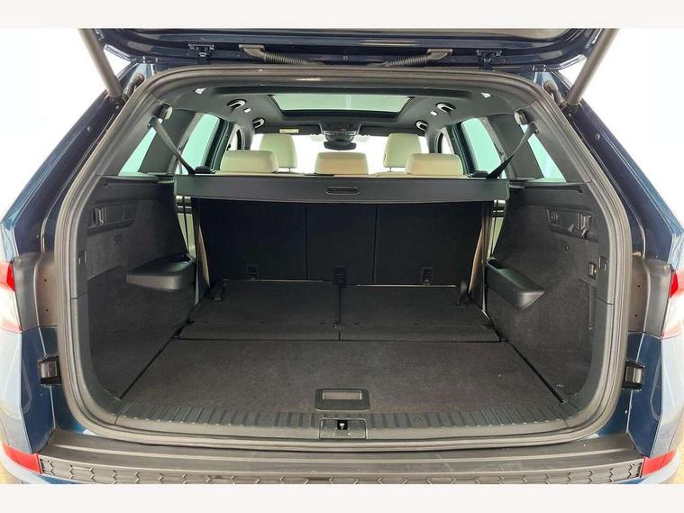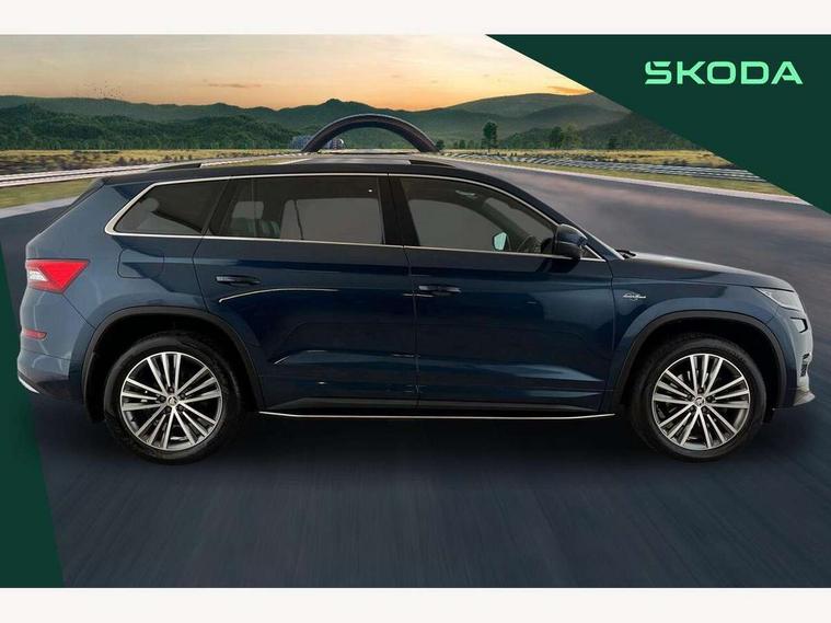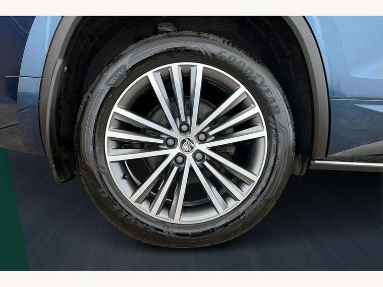 Bluetooth system, Columbus satellite navigation with 9.2" touch screen and integrated Wi-Fi + WLAN and web radio, Digital voice enhancement, ECO Stop/start function, Exterior temperature indicator, Map care, Phone box, Progressive power assisted steering, SmartLink plus, Speed limiter, USB C Port x 2 in front centre console, Bolero Radio, Canton sound system, DAB Digital radio, DVD System, Aero front windscreen wipers with intermittent function, Aero rear window wiper, Auto dimming rear view mirror, Automatic activation of hazard warning lights, Black door steps with Kodiaq label, Black electric window control buttons, Black wheel arch surrounds, Body colour bumpers, Body colour door mirrors and handles, Body colour door panels, Chrome grille in frame and ribs, Electric front and rear windows, Electrically adjustable/heated/foldable and auto dimming door mirrors with memory function, Full LED Headlights with adaptive front light system and LED daytime running lights, Headlight washers, Heated rear window, Heated windscreen with heated windscreen washer nozzles, High beam assist, Invisible tailpipe, LED front fog lights with static cornering light function, LED rear fog light, LED rear lights with high functionality, LED third brake light in rear spoiler, Light assistant (coming home/tunnel light), Panoramic sunroof, Rain and light sensors, Rear bumper with visible design exhaust pipes and diffuser, Rear spoiler, Safety reflectors on front and rear doors, Silver roof rails, Sunset privacy glass, Without engine designation, 12V socket in boot, 2 rails with 2 hooks including 4 hooks for net programme, 4 foldable roof handles with rear coat hooks, 4 lashing points on luggage floor, 60:40 foldable rear seat with sliding adjustment and backrest angle adjustment, Aluminium pedals, Ambient lighting, Bottle holders in door panel in the 1.5 litre front and 1 litre rear, Cargo storage compartments, Centre console with open storage box, cup holder and 12V socket, Chrome headlight control button, Chrome interior door handles, Coat hooks on B pillar, Covered storage compartment on driver side, Decor in piano black with Laurin & Klement logo on front seats, Electrically adjustable front seats with lumbar support and memory function, Front and rear door armrest with black adductor trim, Front and rear height adjustable headrests, Front centre armrest with storage compartment, cup holder and 12V socket, Front courtesy lights, Gear shift lever with chrome frame and black gloss insert, Illuminated and cooled glovebox, Illuminated luggage compartment, Isofix child seat fittings in outer rear seats with top tether, Leather upholstery with L&K logo, Manually adjustable steering column, Net programme in boot (1x horizontal Net, 2x vertical Nets), Overhead glasses storage compartment, Paddles on steering wheel for DSG gearbox, Pollen filter, Rear centre armrest with cupholders, Roll up luggage compartment cover with intermediate position, Small Bags on the inner sides of the front backrests, Stitching to armrest in doors, Storage compartment in lower middle instrument panel with closing, Three rear height adjustable headrests, Ticket holder on A Pillar, Umbrella in door panel, Variable boot floor, Welcome animation with Laurin & Klement logo, LED Interior Light pack - Kodiaq Scout/Sport Line/VRS/Laurin + Klement, Auto door release and activation of warning lights, Curtain airbags, Driver and passenger airbags, Electronic parking brake with hill hold control, Emergency rear braking signal, ESC (incl. ABS+MSR+ASR+EDS+HBA+DSR+RBS+MKB), Front and rear three point safety belt on all seats, Front assist includes AEB city/urban, Front passenger airbag deactivation switch, Front side airbags, Fuel cut off safety device, Head and knee airbags, Rear disc brakes, Safety vest holder in door, Seat belt reminder for all seats, Tailgate unlocking from outside, Two tone horn, Tyre pressure monitor, Warning lights in front doors, Alarm with interior monitoring and tilt sensor with safe function, Immobiliser, Keyless entry and start system (KESSY), Remote central locking, Piano black dash inserts, Plaquette L&K front fenders, 19" Sirius anthracite alloy wheels with anti-theft wheel bolts, Temporary spare wheel,