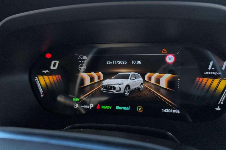 'Lights On' Reminder warning buzzer, 12.3" colour touchscreen, 3 driving modes Normal, Eco, Sport, 3 Energy regeneration modes (1, 2, 3), 360 degree camera with rear sensor, 7" Driver display, Adaptive cruise control, Android Auto, Apple CarPlay, Blind zone detection with lane change assist, Bluetooth connectivity, eCall emergency call system, Forward collision warning, Intelligent speed limit assist, iSmartphone connectivity, Lane keep assist with lane departure warning system, PAS, Rear cross traffic alert, Rear parking sensors, Satellite navigation with speed limit recognition, Traffic jam assist, Trip computer, Unsteady driving warning, 1x USB port at rear (power only) type A, 2x USB ports at Front (1x data and power type A, x1 power only type C) and 1x rearview mirror USB power only - type A, 6 speaker audio system, DAB audio, Radio/MP3 player, USB/aux input socket, Auto headlights, Body colour bumpers, Body colour door handles, Body colour electric adjustable folding heated door mirrors, Chrome side window trim, Follow me home headlights, Front and rear aero wiper, Front and rear electric windows with driver's one-touch up/down, Heated rear window, Intelligent headlamp control, LED centre brake light, LED daytime running lights, LED projector headlights, LED rear lights, Rain sensing wipers, Rear privacy glass, Rear side wing doors, Rear spoiler, Rear wiper, Silver roof rails, 12V power sockets, 2nd row 60/40 split/fold, 3 rear headrests, 3 seat bench in 2nd row, 4 way manually adjustable passenger seat, 6 way electric adjustable drivers seat, Adjustable dual height boot floor, Adjustable rear headrests, Automatic air conditioning, Boot light, Driver's footrest, Front centre armrest with storage, Front cupholders, Front grab handles, Front headrests, Front interior courtesy light with time delay and reading lights, Front reading lights, Front seat back map pockets, Front sun visors with driver and passenger mirrors, Glovebox, Heated front seats, Heated steering wheel, Illuminated switches and controls, Internal chrome door handles, Leather style upholstery, Manual lumbar support on driver seat, Multifunctional steering wheel, Rear grab handle, Single front passenger seat, Tilt adjustable steering column, 3x3 point rear seatbelts, ABS/EBD, Active emergency braking with pedestrian/Bicycle detection, Anti rolling protection, Automatic unlocking of doors in case of impact, Dual front airbags, EBA, Electric parking brake with auto hold function, ESP, Front passenger airbag deactivation switch, Front seatbelts (3-point + pretensioner + load limiter), Front side airbags, Fuel cut off safety device, Hill start assist, Rear door child safety locks, Rear isofix x2, Rear passenger seatbelt alert, Seatbelt reminder for driver and front passenger, Side curtain airbags, Tyre pressure monitoring system, Alarm system and engine immobiliser, Automatic latching door, Keyless entry, Remote Central Locking with Fold-away Key, Speed sensing door locks, 18" Sabre alloy wheels, Tyre repair kit,