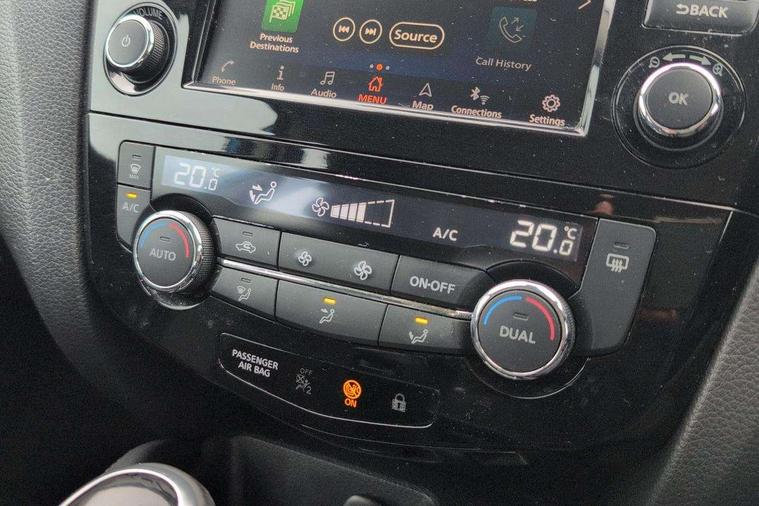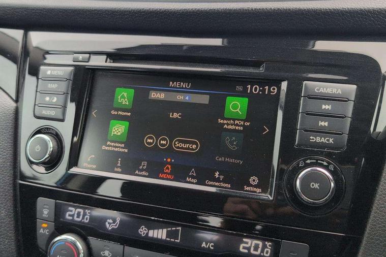 Advanced drive assist display 5'' TFT coloured screen, Android Auto, Apple CarPlay preparation, Bluetooth connectivity, Cruise control + speed limiter, Electric speed sensitive power steering, Front parking sensors, Lane departure warning system, Nissan connect evo 7" touchscreen navigation and entertainment system, Normal or sport selectable steering, Outside temperature sensor, Rear parking sensors, Rear view camera, Service interval indicator, Smartphone integration, Stop/start system, Tomtom connected services, Traffic sign recognition, Trip computer, Voice control system, Nissan chassis control (intelligent ride control, intelligent trace control, intelligent engine brake), 6 speakers, AM/FM radio, CD audio system, Aux-in socket, DAB Digital radio, Steering wheel mounted audio controls, USB port, Anti dazzle rear view mirror, Auto wipers, Body colour bumpers, Body coloured door handles, Body coloured door mirrors, Chrome window surround, Daytime running lights dip function when turn signal applied, Electric folding door mirrors, Electric front and rear windows with one touch illuminated window controls, Electric front/rear windows, Electrically adjustable door mirrors, Front fog lights, Halogen headlights, Heated door mirrors, High beam assist, Intelligent auto headlights, LED indicators in door mirrors, Rear roof spoiler, Rear wiper with reverse link, Shark fin antenna, Signature LED daytime running lights, Underbody vortex generators, 2 X front 12v power sockets, 3 height adjustable rear headrests, 60/40 split folding rear seat, Ambient lighting in centre console, Boot lighting, Centre console storage box/armrest, Chrome interior door handles, Cloth upholstery, Driver's seat manual height adjust, Dual zone climate control, Front and rear door pockets with bottle holders, Front and rear seat belt pre-tensioners with load limiters, Height adjustable front headrests, ISOFIX on outer rear seats, Leather D shaped steering wheel, Leather gear lever, Leather knee pad, Manual height adjustable front passenger seat, Manual lumbar support on driver seat, Parcel shelf stow function under luggage board, Pollen filter, Rear armrest with 2 cupholders, Tilt/telescopic adjustable steering wheel, 6 airbags - Driver, front passenger, curtain and side airbags, ABS, ESP, EBD and brake assist, Auto hold function, Child locks on rear doors, Electronic parking brake, Front and rear seat belt warning, Front passenger airbag deactivation, Height adjustable front seatbelts, Hill start assist, Intelligent emergency braking with pedestrian recognition, Three 3 point rear seatbelts, Tyre pressure monitoring system, Anti-theft immobiliser, Remote central locking, Thatcham Cat.1 alarm, Piano black dash trim, 17" Alloy wheels, Tyre puncture repair kit,