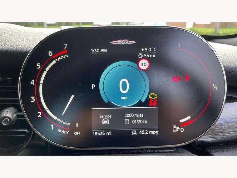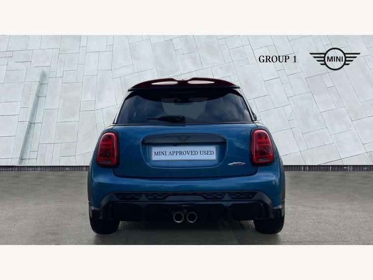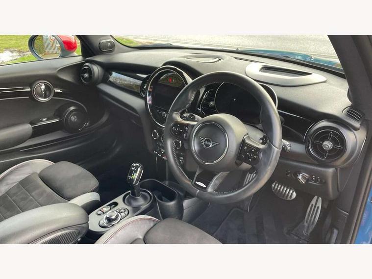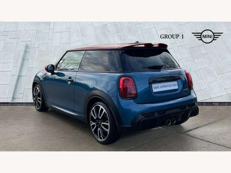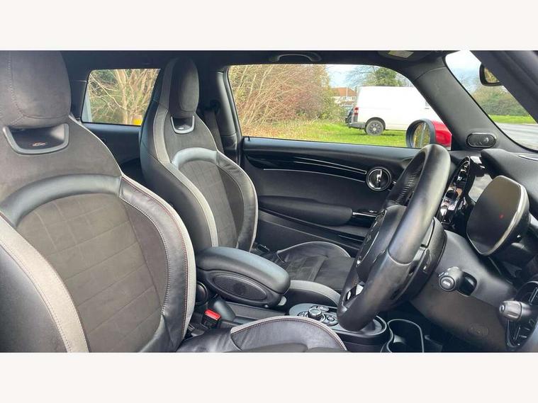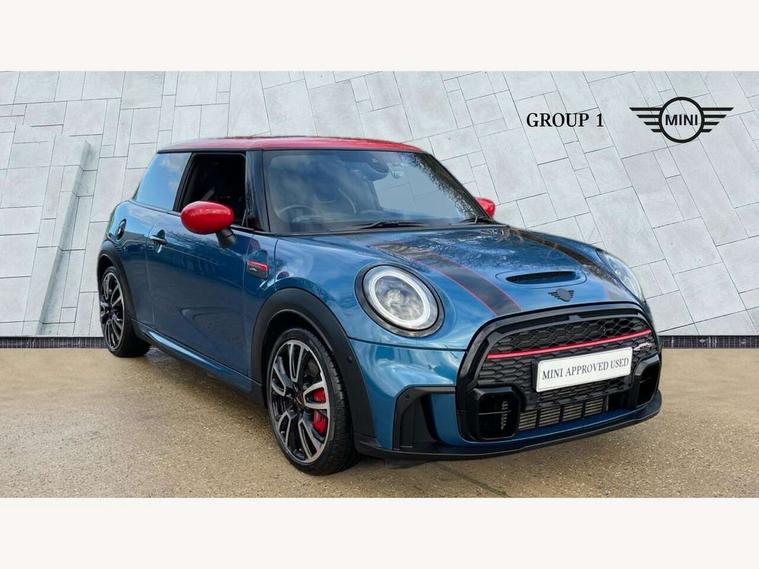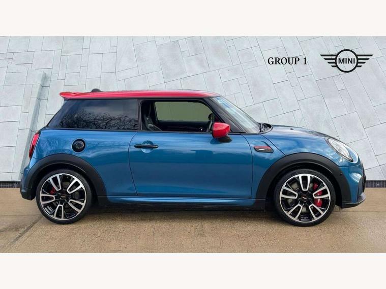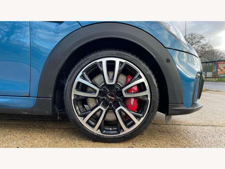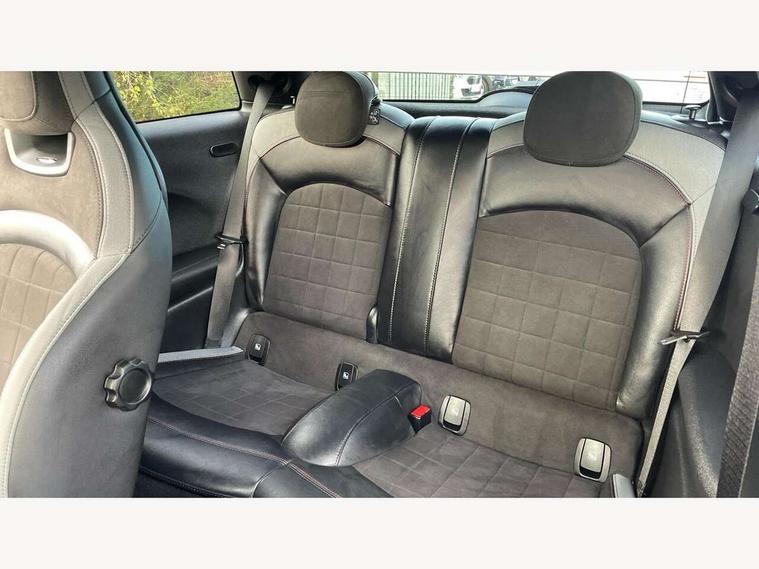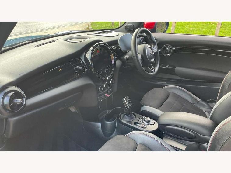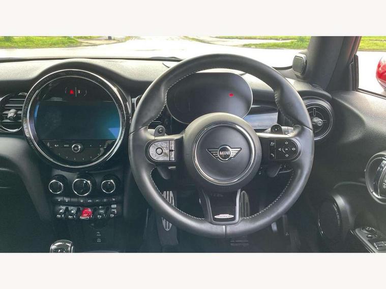Apple CarPlay, Automatic start/stop function with brake energy recuperation, Compatible mobile phone bluetooth with audio streaming, Cruise control with brake assist, Electro-mechanical speed dependant steering assistance, Flexible car sharing preparation, Instrument cluster, MINI Driving Modes - centre toggle switch to control driving setting (sport, mid and green), Mini E-call, MINI TeleServices, On board computer, Rear park distance control, Service interval indicator, Double Vanos system, Eight speed steptronic sport transmission, with gearshift paddles, Fully variable valve control, High precision injection, Performance Control, 8.8" touchscreen with LED ring, FM tuner and DAB digital radio, 3rd brake light, Automatic headlight activation switch, Bonnet scoop, Dynamic brake lights, Electric front windows, Heated rear window, Heated windscreen washer jets, JCW Aerodynamic kit - Front and rear bumpers with sporty JCW styling and part-painted side sills with MINI John Cooper Works door sill finishers, John Cooper Works logo above an individual grille strut in Chilli Red, John Cooper Works rear spoiler, LED headlight with closed ring and daytime driving lights, Radiator grille piano black border with honeycomb structure in black matt, Rain sensor window wipers, Rear fog lights, Rear LED lights with union jack design, Rear window wiper, Side scuttle panel with integrated indicator, Side scuttle with MINI John Cooper Works logo in black high-gloss with red border, Sun/heat protection glass, Two central exhaust tailpipes with chrome finisher, White indicator lenses, 12V Accessory socket in centre console, 2 seat bench in 2nd row, 4 lashing eyes in luggage compartment, 60/40 split folding rear seat, Anthracite headliner including grab handles and clothes hooks, Carbon black colour line - Knee roll and door armrest, Chrome interior highlights, Cupholders, Front and rear isofix with front passenger airbag deactivation, Front floor mats in velour, Glove compartment, Height and length steering column adjustment, Interior lighting with 12 different colours across the dashboard, underneath door bezel with illuminated laser-engraved design on central display, JCW Sport seats with integrated headrests, adjustable thigh support and John Cooper Works logo, Leatherette gearshift lever and handbrake gaiters, LED reading lights, vanity mirror lights, front foot well light and spotlight on front seats, Manual air conditioning, Mechanical seat adjustment - forward/back & backrest for front seats and driver seat height adjust, Multifunction steering wheel, Passenger seat height adjuster, Rubberised stainless steel pedals, Single front passenger seat, Storage compartments in doors, Storage pocket on back of front seats, Sunvisors with vanity mirrors, Walknappa leather steering wheel with grey seam and John Cooper Works badge on Piano Black lower steering wheel spoke, Navigation pack without Apple Carplay - Mini Hatchback, Piano black exterior pack - JCW, 3 point seatbelts on all four seats, 4-piston fixed-calliper brakes front, 6 Airbags - front, side, head and seat belt tensioners, Anti-lock braking system (ABS), DSC - Dynamic Stability Control, Front and rear disc brakes, Red brake callipers with John Cooper Works logo, Single tone fanfare horn, Tyre pressure monitoring system, Alarm system with tilt sensor, monitoring doors, bonnet interior and tailgate, Electronic vehicle immobiliser, Start/stop toggle with keyless go, Tool kit,