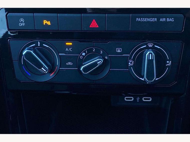 'Lights On' Reminder warning buzzer, Advanced driver attention and drowsiness monitor, Blind spot monitoring, Car information display, Dynamic road sign display, E-Sim card for online connectivity, eCall emergency call system, Front and rear parking sensors, Front assist, forward collision warning, autonomous emergency braking and speed limiter, Low washer fluid warning light, Multifunction computer with visual gear change recommendation for fuel consumption, Multifunction front facing camera for distance control, Operating permit alteration, Power assisted steering, Predictive adaptive cruise control, Preparation for navigation system with media and internet package, Preparation for We connect and We connect plus, Rear view camera, Semi-automated driving assistance, travel assist including lane keeping system Lane Assist and emergency assisst, Speedo, rev counter, electronic odometer, trip, service interval display, exterior temperature and fuel gauge, Warning sound and light for doors and tailgate open, Warning sound and light for front seatbelts unfastened, Wireless Car net app connect with Apple CarPlay, combined functionality of Apple CarPlay/Android Auto and MirrorLink, Wireless charging, Misfuel prevention device, Start-stop system with battery regeneration (recuperation - energy recovery during braking), 2 USB C ports in front, 2 USB charging sockets on the centre console in the rear charging capacity upto 45W, Diversity antenna for FM reception, Music playback - MP3, WMA and AAC files, Radio, Automatic dimming interior rear view mirror, Automatic hazard lights activation under emergency braking, Automatic headlight control with LED separate daytime running light and coming home and leaving home feature, Black roof rails, Body colour door handles, Body colour door mirrors, Body coloured bumpers, Dynamic headlight range control with self adjusting whilst driving, Electric folding door mirror, adjustable, heated with front passenger exterior mirror lowering function, Exterior mirrors convex on the left and aspherical on the right, Front and rear electric windows, Galvanised body, Heat insulating and laminated safety glass windshield, Heat insulating darkened glass in side and rear windows, High Beam Assist, automatic sensing for switching between dipped and main beam, LED Headlights, LED rear combination lights, LED third brake light, Lower door sills and door pillars in black, Rain sensor, Rear fog light on one side, reversing light on both sides, Rear side wing doors, Rear window aerial, Rear window wiper with intermittent control, Reflectors in all doors, Scuff plates, Tailgate with integrated roof spoiler, 12V Accessory socket in centre console, 3 rear head restraints, 3 seat bench in 2nd row, 60/40 split folding rear seat backrest, Ambient lighting and logo projection, Ceramique roof lining, Cloth upholstery, Door and side trim panel, Drawer under drivers seat, Driver and front passenger sunvisor with vanity mirror, Dust and pollen filter, Front and rear reading lights X 2, Front centre armrest with storage compartment, Front seat back storage pockets, Glove compartment door with light, Heating and fresh air system with 4 stage blower, Height/reach adjust steering wheel, Instrument lighting white adjustable panel illumination, Interior light with switch off delay and dimmer, Isofix anchors for child seats on outer rear seats and front passenger seats, Leather gearshift handle, Leather wrapped multifunction steering wheel, Luggage compartment floor, Luggage compartment lighting, Manual front seats with height adjustment, Padded dashboard, Removable luggage compartment cover, Single front passenger seat, Storage compartment in drivers and front passengers door, Unsplit sliding rear seat bench, 3 point outer rear seat belts with ECE label, 3 Point seatbelt for centre rear seat, Anti-lock Braking System (ABS) with Hydraulic Brake Assist (HBA), Automatic post collision braking system, Disc brakes in front, Driver and front passenger safety-optimised head restraints, Drivers and Front Passengers airbags with front passengers airbag deactivation switch, Drum brakes in rear, ESC with EDL and ASR (traction control), Extended and predictive pedestrian/cyclist protection, Front and rear passenger curtain airbag system including front side airbags, Height adjustable front 3 point seatbelts + pretensioners, Hill start assist, Pre crash preventive occupant protection, Proactive passenger protection system in combination with front assist, Rear door child safety locks, Rigid safety cell with front and rear crumple zones, Single tone horn, Tyre pressure loss indicator, Volkswagen roadside assistance, Alarm with interior protection, Anti theft alarm system, Electronic engine immobiliser, Remote keyless entry using key fob including Start/Stop button on centre console with SAFELOCK, Remote tailgate unlocking using key fob, Low rolling resistance tyres,