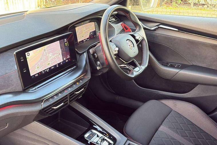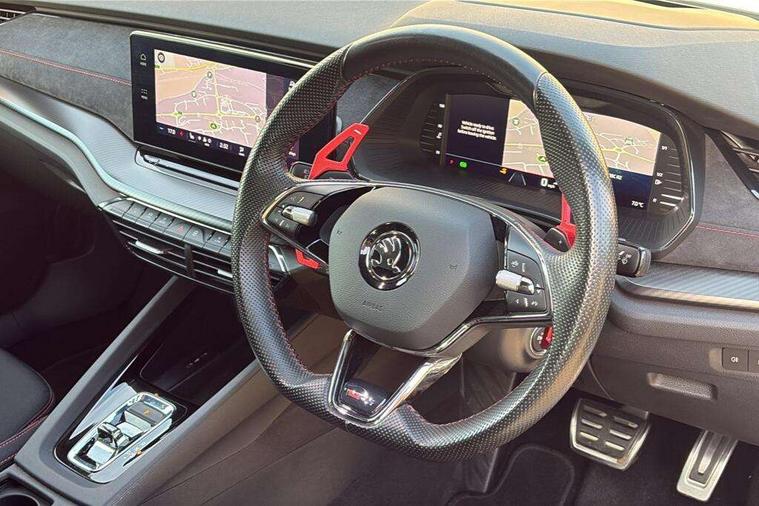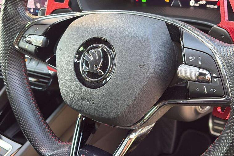 1x USB Type C port in rear view mirror (charging only), 2x USB Type C ports in rear of front centre armrest (charging only), Blind spot detection+electrically adjust, heated, folding, driver side auto-dimming+passenger tilt by reversing door mirrors with memory+boarding spots, Bluetooth system, Colour multifunction trip computer, Columbus satellite navigation with 10" touchscreen display, Drive mode selector, Front assist system, Progressive dynamic steering, Smartlink (includes android auto and mirrorlink), Speed limiter, Turn Assist, Virtual Cockpit - 10.25" digital display, Voice control system, Wireless SmartLink for Apple Car Play, Electronically controlled limited slip differential, Front and rear stabilizers, Sports suspension with 15mm lower, 2x USB Type C ports (for charging and data transfer), DAB Digital radio, Swing radio with 8.25" touchscreen, Aero front windscreen wipers with intermittent function, Auto dimming rear view mirror, Body colour door handles, Chrome exhaust tailpipes, Door sills with vRS logo, Electric front and rear windows, Exterior gloss black sports styling including front grille, side strip, window surrounds, door mirror and badging, Full LED Matrix headlights with AFS, rear LED lights and dynamic indicators and cornering front fog lights, Heated rear windscreen, High level third brake light, Ice scraper in fuel cap, Rain and light sensors, Rear fog light on one side, Rear privacy glass, vRS bumpers and lip spoiler, 3 rear headrests, 4 foldable roof handles, Alcantara padded dash panel with contrast stitching, Aluminium pedals, Black headlining, Chrome inner door handles, Cloth upholstery, Front centre armrest, Front head restraints, Heated front seats, Height adjustable driver and passenger seat with lumbar support, Illuminated air conditioned glovebox, Leather trimmed gearshift lever, Luggage compartment lighting x1 light, Mechanical rear seat release, Parcel shelf - folding, Satin black textured with artificial stiching in dash board pads, Sun visors with mirrors, Sunglasses storage, Textile floor mat set, Three spoke leather sports multifunction steering wheel with paddles, Ticket holder, Umbrella in door panel, Unsplit rear bench seat and split folding backrest, LED interior light pack - Octavia, 3 point front/outer rear seatbelts+pre-tensioners, Alarm with interior monitoring, tilt sensor and back up horn, Automatic door unlocking in case of crash, Automatic fuel cut off in case of crash, Automatic warning lights in case of emergency braking, Drivers knee airbag, Electronic parking brake, Emergency call and proactive services, ESC including ABS, EBV, MSR, ASR, EDS, HBA, DSR, Front and rear disc brakes, Head and curtain airbags, Hill hold control, Hill start assist, ISOFIX on front passenger seat and outer rear seats, Passenger airbag deactivate switch, Red brake calipers, Two tone horn, Tyre pressure monitor, Visual and acoustic seat belt reminder, Warning reflectors in front door, Door locks with immobiliser, Keyless entry and start/stop including rear doors, Remote central locking, Carbon optic decorative inserts, Gloss black air vent surrounds, 19" Altair anthracite alloy wheels,