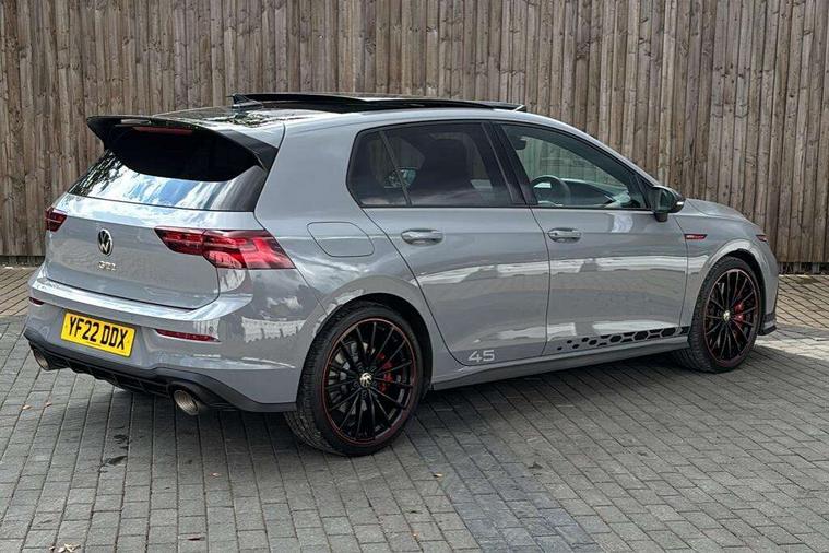 Adaptive cruise control (ACC) with speed limiter and front assist (reacting to vehicles pedestrians and cyclists), Car2X communication, Digital cockpit pro - 10.25" high resolution TFT dash display screen with customizable menus and information, Driver alert system, Driver profile selection, Dynamic road sign display, eCall - Emergency call service for SOS calls to emergency response, Lane assist, Lane change assistant, Mobile phone interface with wireless inductive charging function, Progressive steering, Speedo, rev counter, electronic odometer, trip, service interval display, exterior temperature and fuel gauge, Start/Stop function, Travel assist with emergency side assist with electrically foldable door mirrors, Warning buzzer and light for front seatbelts unfastened, Wireless app connect, Front differential lock, Petrol Particulate Filter, XDS electronic differential lock for improved traction and handling, Premium USB cable in choice of either Apple or Android smartphone compatibility, '45' lettering on the side sill panel and on the boot lid, Advanced high beam control dynamic light assist for LED matrix headlamps, Akrapovic titanium sport exhaust system, Ambient lighting, exterior illuminated styling elements at the sides, Auto dimming rear view mirror, Automatic headlamp activation with Coming home and Leaving home feature, Black painted roof, upper shell of the spoiler and door mirror covers, Body colour bumpers, Body colour door handles, Front and rear electric windows, GTI Clubsport styled bumpers, Heat insulating glass windscreen, Heated rear windscreen, High level 3rd brake light, Highway light, Illuminated front grille, IQ.Light - LED Matrix headlights, dynamic headlight control with advanced high beam control matrix dipped main beam + LED DRL + 22 LED lights, LED front fog lights with 5 honeycomb design, LED License plate illumination, LED rear combination lamp inlcuding dynamic turn signal, Performance rear spoiler, Rain sensor, Rear fog light on one side and reversing lights on both sides, Rear tinted glass 65% light absorbing from B pillar backwards, Rear windscreen washer and wiper with interval delay, Remote electrically heated, adjustable and foldable door mirrors, including door mirror puddle lights and reverse activated kerb-view adjustment on pa, Welcome light, 12V socket in front centre console, 12V socket in luggage compartment, 3 rear head restraints, 3 zone climate with controls in the rear, 45 decal and badge on steering wheel, Aluminium gear knob, Ambient lighting - Customisable 30 colour ambient lighting, Black roof lining, Brushed stainless steel pedals, Centre console, Chrome plated surround to electric mirror button, window switch and air vent surrounds, Door insert in Artvelours, Drivers and front passengers sun visors with vanity mirrors, Front + rear carpet mats, Front centre armrest with storage compartment, Front cupholders x 2, Front reading lights x 2 incorporating LED technology, Front seat lumbar support adjuster, Front sports seats, Glovebox, GTI lettering on the backrests of the front sport seats, Height adjustable front seats, Height and reach adjustable steering wheel, Isofix child seat preparation for 2 rear child seats and front passenger seat, Leather wrapped multifunction sports heated steering wheel with paddle shift, Luggage compartment lighting, Removable luggage compartment cover, Side trim panel and arm support in leatherette, Split folding backrest with centre armrest and unsplit rear seat bench, Woven fabric storage compartments in front and rear doors, 3 point height adj front seatbelts + pretensioners, 3 rear three point seatbelts, ABS, Driver and front passenger airbag with front passenger airbag deactivation, Drivers and front passengers safety optimised head restraints, Electronic parking brake with auto hold, ESC (Electronic Stability Control), Extended pedestrian protection measures, Front and rear passengers curtain airbag system including front side airbags, Front disc brakes, Rear disc brakes, Two tone horn, Tyre pressure monitoring system, Alarm with interior protection and deactivation via infotainment system, Electronic engine immobiliser, Keyless entry with start/stop button on centre console, Black metal chrome decorative inserts in dash and front door trim panels, Soul dashboard, 19" Scottsdale alloy wheels with anti theft wheel bolts, Tyre mobility kit Includes 12V compressor and tyre sealant,