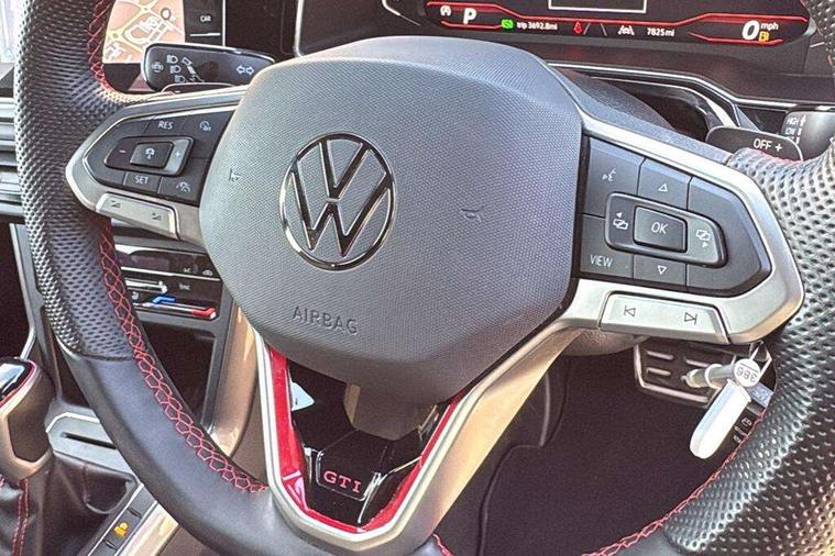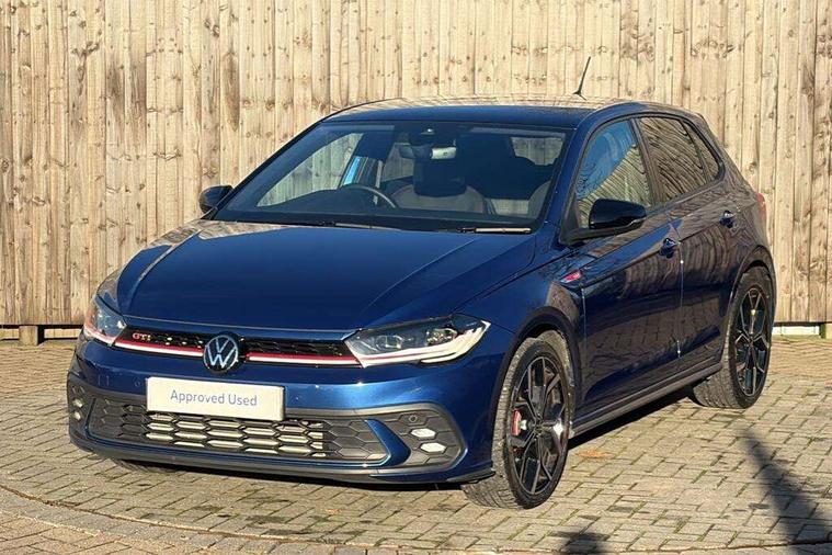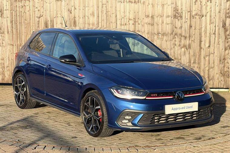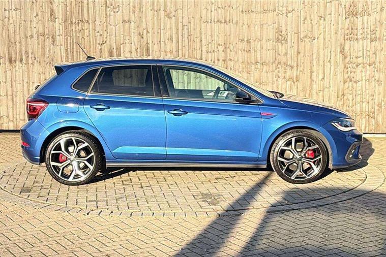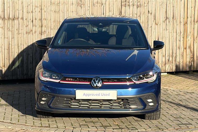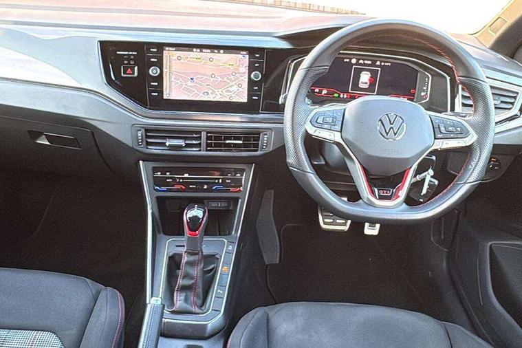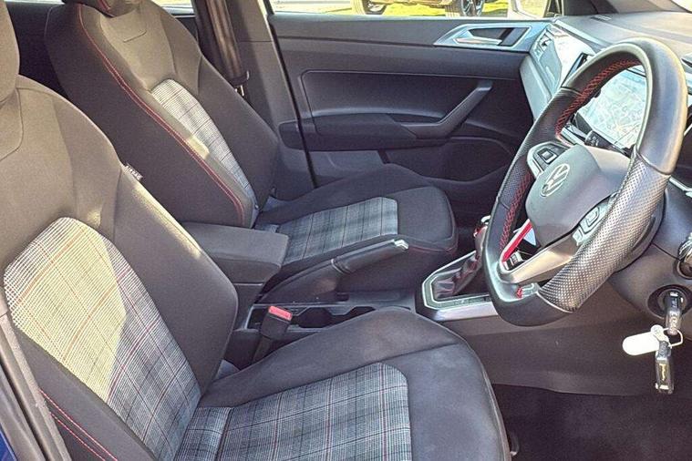 Adaptive cruise control with follow-to-stop and speed limiter, Advanced driver attention and drowsiness monitor, Bluetooth mobile phone interface, Digital Cockpit Pro with 10.25" Display, Dynamic road sign display, Eco mode, Emergency call service, Multifunction camera, Power assisted speed sensitive steering, Preparation for We connect and We connect plus, Speedo and rev counter, electronic odometer, trip, service interval display and fuel gauge, Travel Assist - Lane keeping system and traffic jam assist, Travel assist including emergency assist, Trip computer, Warning signal and warning light for front and rear seatbelts not fastened, Washer fluid level indicator, Wireless app connect, Adaptive chassis control, Front wheel drive, Heavy duty rear axle, Rear shock absorpion sports version, Sports select suspension lowered by 15mm, Start-stop system with battery regeneration (recuperation - energy recovery during braking), DAB Digital radio, Diversity antenna for FM reception, Front and rear 6 speakers, Body colour bumpers, Body colour door handles, Electric front windows, Front scuff plates in aluminium with GTI logo, Heat insulating glass windscreen, Power folding adjustable/heated exterior mirrors and front passenger exterior mirror lowering function, Rain sensor, Rear electric windows, Rear fog light, Rear side wing doors, Rear windscreen washer and wiper with interval delay, Sport bumpers with air intakes with honeycomb structure, Third brake light, Twin chrome exhaust tailpipes, 12V power socket in centre console, 2 USB-C ports in the front, 2 USB-C charging sockets on the center console in the rear, 3 rear head restraints, 60/40 split folding rear seat and rear seat bench not split, Air care climatronic air conditoning system with active combination filter and 2-zone temperature control, Black roof lining, Carpet mats, front and rear, Chrome plated radiator grille inserts, air vent surrounds and light switch surrounds, Door and side trim panel, Driver and front passenger seat height adjustment, Driver/passenger sunvisors with illuminated vanity mirrors, Front centre armrest, Front footwell illumination, Front seat backrest storage pockets, GTI sports gearshift knob in aluminium leather, Handbrake lever handle in leather, Headliner in recycled material, Isofix child seat preparation easy-fit (for two outer rear seats, and front passenger seat) compatible with I-size, LED interior light with switch off delay and dimmer, 2 reading lights front and rear, Luggage compartment cover, Luggage compartment floor, Luggage compartment lighting, Lumbar adjustment for front seats, Single front passenger seat, Stainless steel pedals, Standard pedal cluster, Three spoke leather wrapped multifunction sports steering wheel with shifting paddles, IQ LED matrix headlights pack - Polo, Light and sight pack - Polo GTI, 3 point height adj front seatbelts + pretensioners, 3x3 point rear seatbelts, ABS, Driver and front passenger airbag with front passenger airbag deactivation, Drivers and front passengers safety optimised head restraints, ESC (Electronic stability control) + EDL (Electronic Differntial lock) and ASR (Traction control), Extended and predictive pedestrian/ cyclist protection, Front and rear disc brakes with red brake calipers, Front curtain and side airbags with center airbag, Hill hold control, Manual child lock in rear doors, Two tone horn, Tyre pressure loss indicator, Alarm with interior protection, Anti-theft alarm system with interior monitoring, backup horn, and towing protection, Anti-theft wheel bolts, Electronic engine immobiliser, Chrome applications on rotary light, mirror adjustment, window regulator switches, outlet with frame in black, Low rolling resistance tyres,