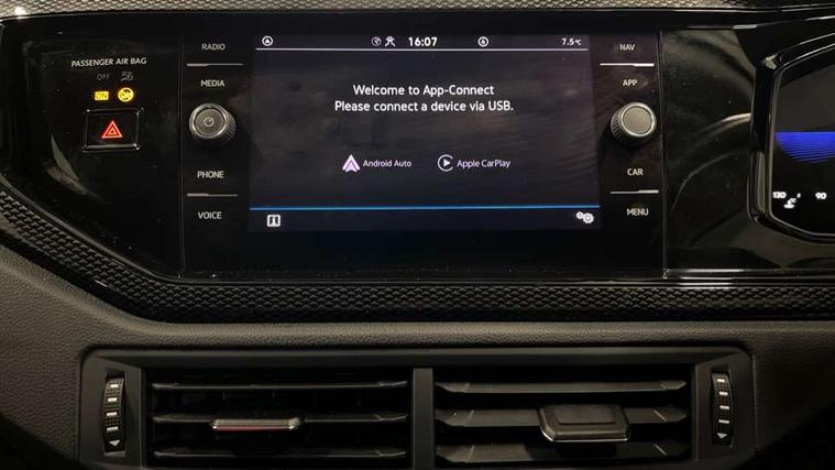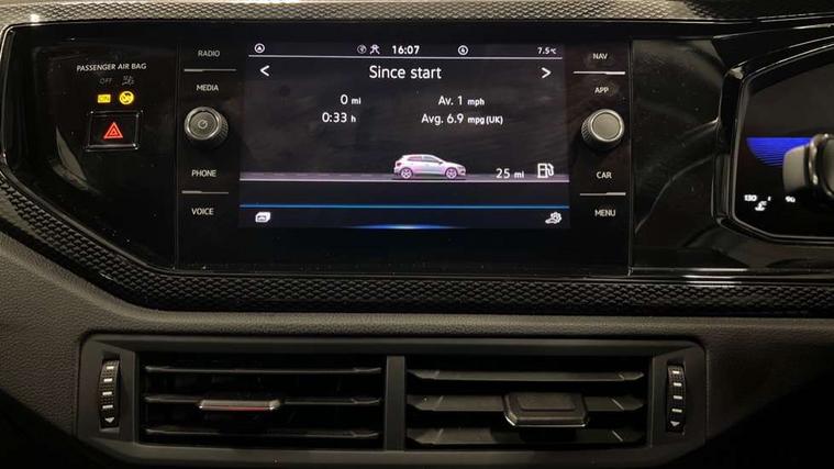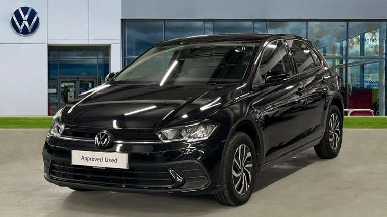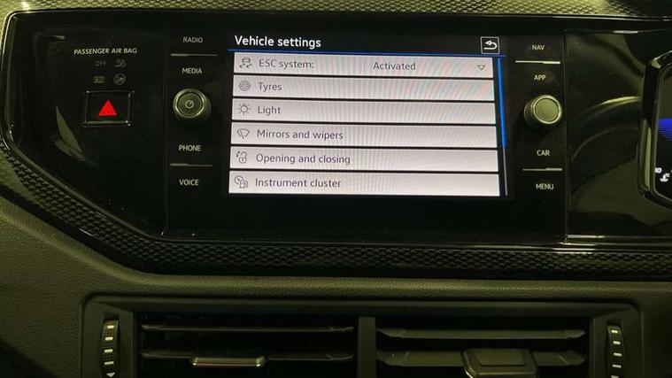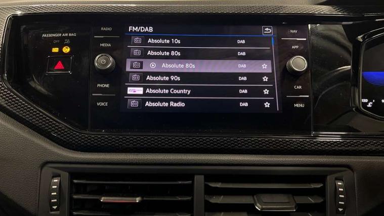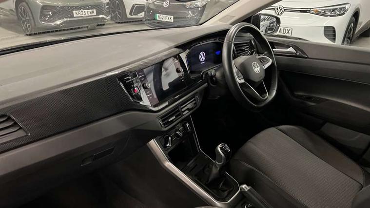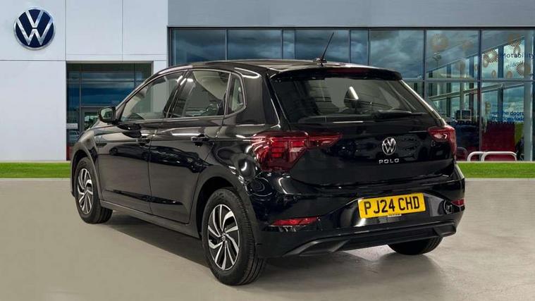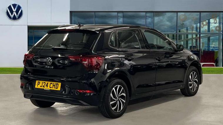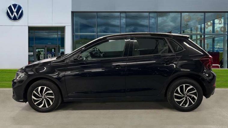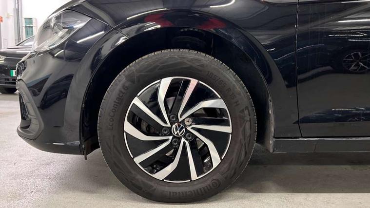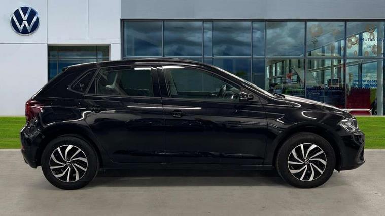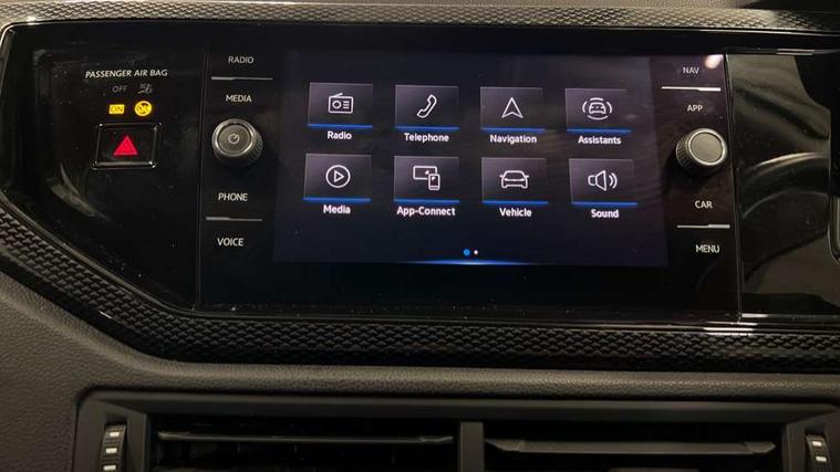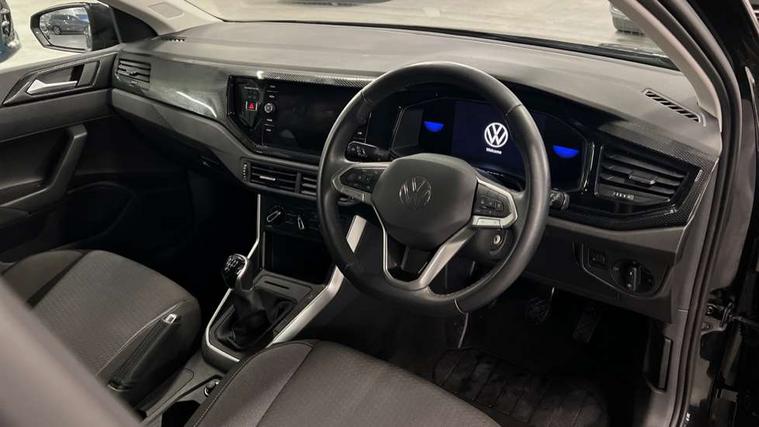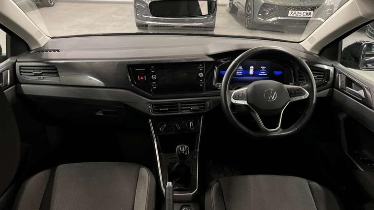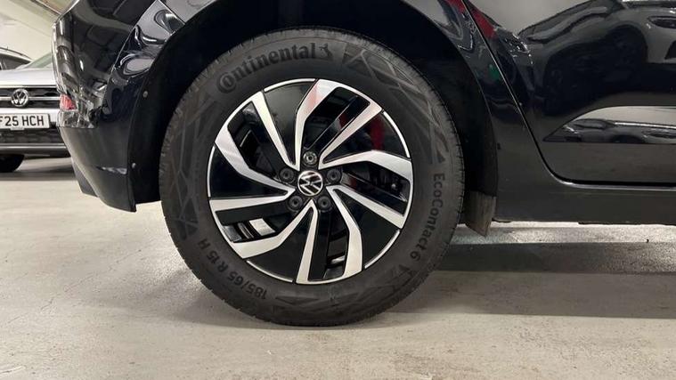 Adaptive cruise control without follow-to-stop and speed limiter, Advanced driver attention and drowsiness monitor, Bluetooth mobile phone interface, Dynamic road sign display, Emergency call service, Power assisted speed sensitive steering, Preparation for navigation system with media and internet package, Preparation for We connect and We connect plus, Speedo and rev counter, electronic odometer, trip, service interval display and exterior temperature gauge, Standard rear axle, Travel Assist - Lane keeping system and traffic jam assist, Travel assist including emergency assist, Trip computer, Warning signal and warning light for front and rear seatbelts not fastened, Washer fluid level indicator, Wireless app connect, Front wheel drive, Rear shock absorpion, Start-stop system with battery regeneration (recuperation - energy recovery during braking), DAB Digital radio, Diversity antenna for FM reception, Front and rear 6 speakers, Automatic dimming interior rear view mirror, Automatic headlight control with LED separate daytime running lights with coming/leaving home function, Body colour bumpers with chrome inserts, Body colour door handles, Body colour door mirrors, Electric front windows, Engine badge deletion, Headlight range adjustment, Heat insulating and laminated safety glass windshield, Heat insulating darkened glass in side and rear windows, Heat insulating glass windscreen, LED Headlights, LED rear combination lamps, Power folding adjustable/heated exterior mirrors and front passenger exterior mirror lowering function, Rain sensor, Rear electric windows, Rear fog light, Rear side wing doors, Rear windscreen washer and wiper with interval delay, Third brake light, 12V power socket in centre console, 2 front and 2 rear reading lights with switch off delay and dimmer, 2 USB-C ports in the front, 2 USB-C charging sockets on the center console in the rear, 3 rear head restraints, 60/40 split folding rear seat and rear seat bench not split, Ceramique roof lining, Chrome plated radiator grille inserts, air vent surrounds and light switch surrounds, Door and side trim panel, Driver and front passenger seat height adjustment, Driver/passenger sunvisors with illuminated vanity mirrors, Front centre armrest, Front seat backrest storage pockets, Front standard seats, Handbrake lever handle in leather, Hartley/Thomas cloth upholstery, Headliner in recycled material, Isofix child seat preparation easy-fit (for two outer rear seats, and front passenger seat) compatible with I-size, Leather trimmed gear knob, Luggage compartment cover, Luggage compartment lighting, Removable luggage compartment floor, Single front passenger seat, Standard climatic zones, Standard pedal cluster, Three spoke leather wrapped multifunction steering wheel, Light and vision pack - Polo, 3 point height adj front seatbelts + pretensioners, 3x3 point rear seatbelts, ABS, Driver and front passenger airbag with front passenger airbag deactivation, Drivers and front passengers safety optimised head restraints, ESC (Electronic stability control) + EDL (Electronic Differntial lock) and ASR (Traction control), Extended and predictive pedestrian/ cyclist protection, Front assist with autonomous emergency braking (for Adaptive Cruise Control ACC up to 130 mph), Front curtain and side airbags with center airbag, Front disc brakes, Hill hold control, Manual child lock in rear doors, Rear drum brakes, Single tone horn, Tyre pressure loss indicator, Alarm with interior protection, Anti-theft alarm system with interior monitoring, backup horn, and towing protection, Anti-theft wheel bolts, Electronic engine immobiliser, Lava stone black gloss/matt decorative inserts in dash and front door panels, Low rolling resistance tyres,