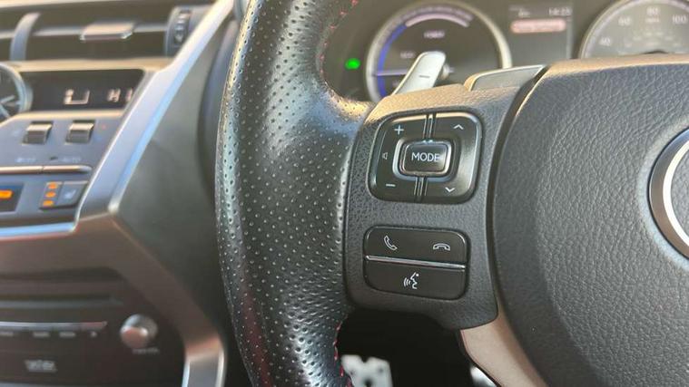 8" colour display screen, Adaptive cruise control + pre-crash system, Analogue clock, Blind spot monitoring, Bluetooth telephone connectivity, Drive mode selector, Electric speed sensitive power steering, Head up Display, Intelligent park assist, Lane keep assist, Multimedia display, Premium navigation system, Push button starter, Rear cross traffic alert, Remote touch interface, Service interval indicator, Surround camera system, Traffic sign recognition, Trip computer, Adaptive variable suspension, Performance dampers, VDIM, Vehicle Stability Control (VSC), Aux input, DAB Digital radio, DVD System, Mark Levinson audio with 14 speakers, Steering wheel mounted audio controls, USB connection, Adaptive high beam assist, Black front grille, Black mirror caps, Body colour bumpers, Chrome grille surround, Door mirror memory, Electric windows-anti jam+driver side one touch, Electric/heated/folding door mirrors, Electrochromatic rear view mirror, Headlight washers, Illuminated door handles, LED daytime running lights, LED front fog lights with static cornering light function, LED Headlights, LED rear lights, Privacy glass, Puddle lights in exterior door handles, Rain sensor windscreen wipers, Rear wiper, Roof rails, Roof spoiler, Shark fin roof aerial, 12V socket in centre console and luggage area, 2 cupholders in front centre console, 3 spoke heated leather steering wheel, 60/40 split folding rear seat, 8 way electrically adjustable front seats, Active sound control, Adjustable height seatbelt anchor, Adjustable rear seat backrest, Aluminium pedals, Aluminium scuff plates, Centre armrest with storage box, Driver seat memory function, Driver's electric adjustable lumbar support, Dual climate control air conditioning system, Electric adjustable steering column, Front and rear textile carpet mats, Front seat back map pockets, Gearshift paddles, Heated front seats, Heated steering wheel, Isofix child seat attachment, Leather gear lever, Leather upholstery, LED interior illumination, Rear air vents, Rear centre armrest with 2 cupholders, Rear headrests, Shopping hook in boot, Sliding sunvisors with illuminated vanity mirrors, Tie down hooks in luggage area, Convenience pack - NX, 3x3 point rear seatbelts, ABS, Active front headrests, Curtain airbags, Driver/Front Passenger airbags, Driver/front passenger side airbags, Drivers knee airbag, EBD + Brake Assist, Electronic parking brake, Front/rear seatbelt pre-tensioners, Hill start assist, Passenger airbag cut-off device, Traction control, Tyre pressure warning, Alarm, Immobiliser, Locking wheel nuts, Remote central double locking, Smart keyless entry, Speed sensitive power door locks, Aluminium interior trim, Space saver spare wheel,