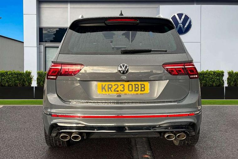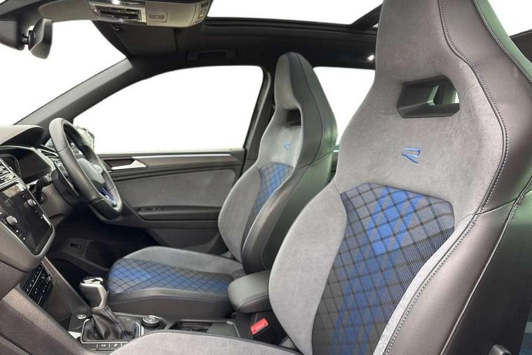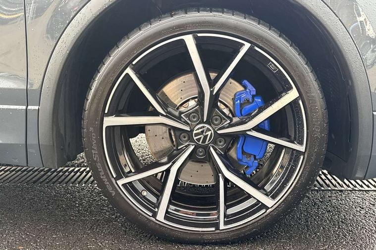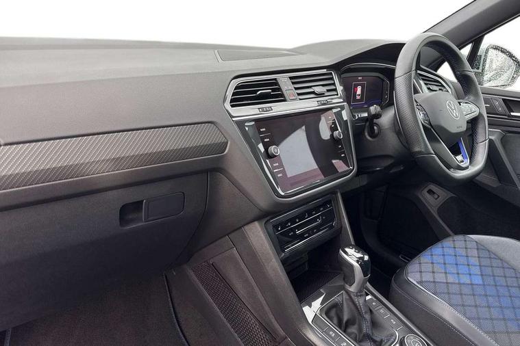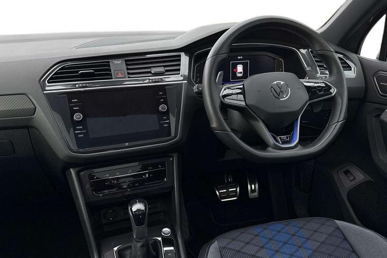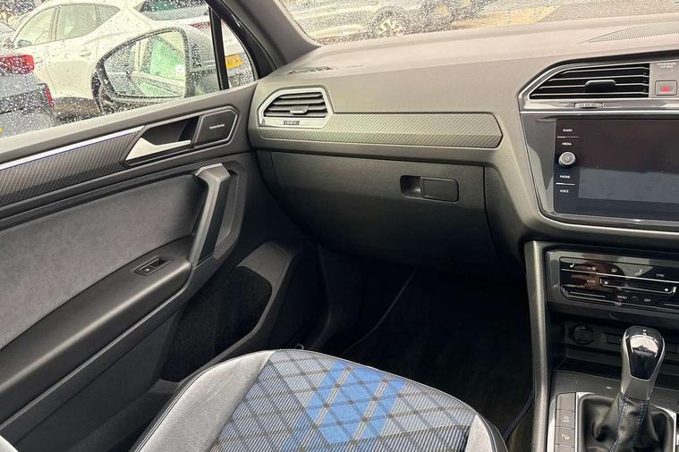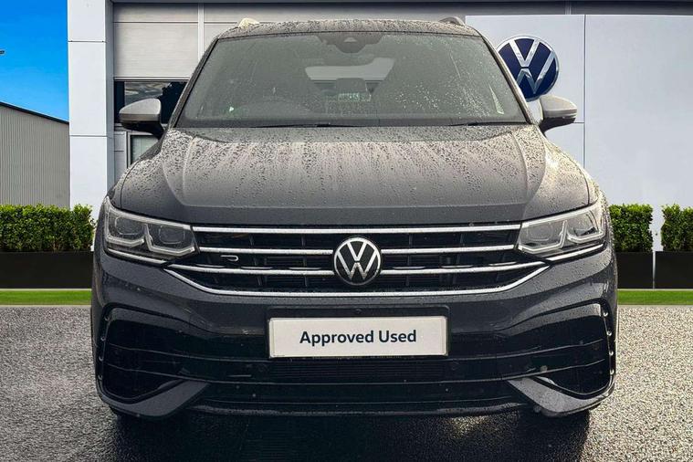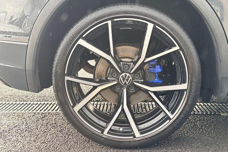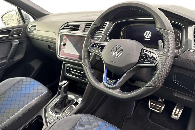 Adaptive cruise control ACC stop and go including speed limiter, App-Connect incl. App-Connect Wireless for Apple CarPlay and Android Auto, Bluetooth phone integration system, Distance control assist, Driver alert system, Driver profile selection, Dynamic road sign display, eCall emergency call system, Electromechanical speed sensitive power steering, Engine start/stop button, Instrument cluster mph speedometer Great Britain, Lane keeping system Lane Assist, Lights on warning, Motorised electric tailgate operated via key fob, drivers door and foot movement under tailgate, Multifunction front facing camera, Outside temperature display, Premium multifunction display with multi colour display, Rev counter, Revision / skills operating concept travel assistant, Service interval indicator, Speed limit display, Start/stop system with regenerative braking, Tailgate/trunk lid unlocking from outside, Trip computer, Warning sound and light for doors and tailgate open, ACC - Adaptive chassis contol with adaptive dampers, All wheel drive - 4Motion, Battery regeneration during braking, XDS electronic differential lock for improved traction and handling, 4 X 20 watt output, 8 Speakers, Diversity antenna for FM reception, SD card slot, Simultaneous pairing of 2 compatible mobile devices, SMS functionality - read, compose and send SMS messages using touch-screen display, Title and cover art display, USB C ports, Auto dimming interior rear view mirror, Automatic headlight control system, Body colour door handles, Body coloured door mirrors with integrated indicators, Chrome matt mirror covers, Chrome moldings on the side windows, Coming/leaving home lighting function, Dynamic headlight range control, Front and rear electric windows, Front illuminated door sills with R logo, Heated rear window, High level 3rd brake light, IQ light-Adv high beam, Dynamic light assist for LED matrix headlamp+LED separate DRL+DCL, dark red rear LED tech, Poor weather light+ cornering light, Laminated safety glass windshield, heat and sound insulating, LED rear number plate lights, License plate carrier in front and rear, Poor weather light and cornering light, Privacy glass for rear side windows and rear window, R-Logo light projection, R-Logo on radiator grille with side panels and rear, R-specific diffuser, painted black with cut out for trailer hitch, R-Specific front and rear bumpers, Rain sensor windscreen wipers, Rear fog lamp, Rear side wing doors, Rear spoiler in R style, Rear windscreen washer and wiper with interval delay, Side and rear windows in heat insulating glass, Silver anodised roof rails, Trailer Stability Programme, Windscreen wipers/ intermittent wipe + 4 position delay, 12V outlet in center console rear and in luggage compartment, 12V outlet in front and tray, 2 cup holders in front, 2 LED front reading lights, 2 LED rear reading lights, 3 bench rear seats in 2nd row, 3 rear headrests, 4 load lashing points, 40:20:40 split folding rear seats, Air Care Climatronic 3 zone automatic climate control with enhanced air filter and controls in the rear, Backrest release for left front seat, Black headlining, Climate control unit rear with touch function, Door and side trim panel in foam film, insert in leatherette, Floor mats with R-Logo and stitching, Front centre armrest, Front footwell illumination, Front seats head restraints (x-adjustment), Height adjustable front seats, Height/reach adjust steering wheel, Instrument lighting white adjustable panel illumination, Interior light with delay, Isofix Preparation 2 Rear child seats, Leather gear knob, Lighting door sill trim at front with R Logo, Lockable cooled glovebox, Luggage compartment lighting, Luggage net, Pedals and footrest in stainless steel, R Specific key caps, R-specific sport skin with R Logo in active Info dsiplay, R-taster (direct selection of race mode/ flap control), Rear bench seat asymetrically split folding, longitudinally movable and folding with load-through hatch and center armrest, Remote unlocking for rear seat backrest, Removable luggage cover, Removable rear headrests, Safety optimised front head restraints, Single front passenger seat, Sliding/reclining rear seats, Standard rear seat release, Storage compartment in driver's door, Storage compartment in passenger's door, Storage compartment in rear doors, Storage compartments in luggage area left and right, Storage tray on dashboard, Sun visors with illuminated vanity mirrors, Top sports seats integrated headrest, blue R-Logo in front seats, seat centre panels and outer rear seats in fabric inner side bolster art Velors, Variable boot floor, height adjustable and removable, Easy open and close pack with safelock - Tiguan, 3 point seat belt for centre rear seats, 3 point seat belts with seat belt pretensioners for the outer rear seats, Active bonnet, Curtain airbags for front and rear passengers, Driver/Front Passenger airbags, Drivers knee airbag, Electronic parking brake with auto hold, Electronic Stability Control with driver steering recommendation, ABS, ASR, EDL, EDTC and trailer stabilization, Front assist with autonomous emergency braking (for Adaptive Cruise Control ACC up to 130 mph), Front disc brakes, Front passenger airbag deactivation, Front side airbags, Height adjustable front 3 point seatbelts + pretensioners, Hill hold control, Manual child proof rear door locks, Pedestrian monitoring system, Power assisted brakes, Proactive passenger protection system in combination with front assist, Rear disc brakes, Rigid safety cell with front and rear crumple zones, Two tone horn, Tyre pressure monitoring system, Warning sound and light for front seat belts if unfastened, Anti theft alarm system with interior monitoring, backup horn and towing protection, Anti theft wheel bolts, Central locking system with safelock radio remote control and 2 remote control folding keys, Electronic engine immobiliser, Tool kit, Tyre mobility kit Includes 12V compressor and tyre sealant,