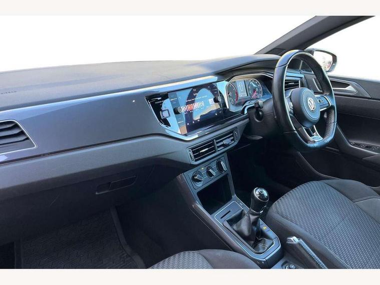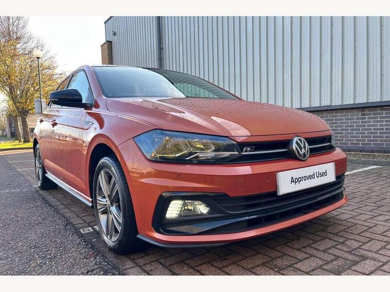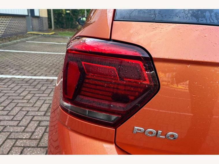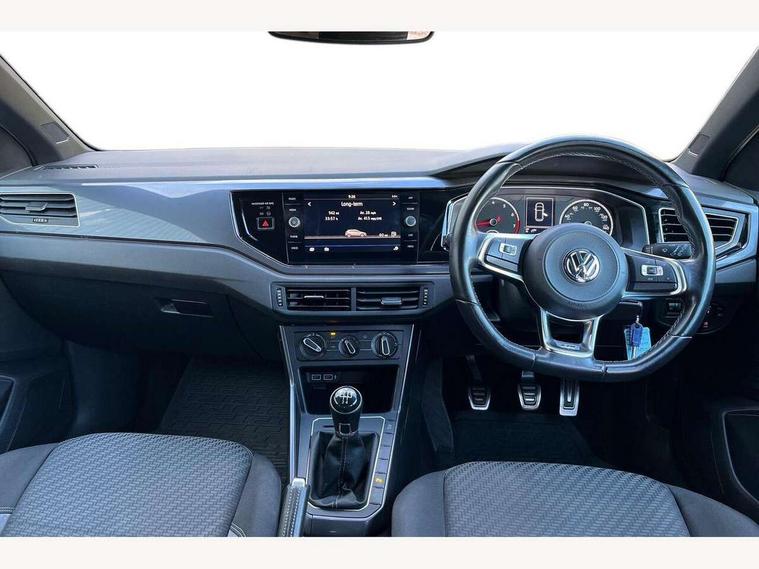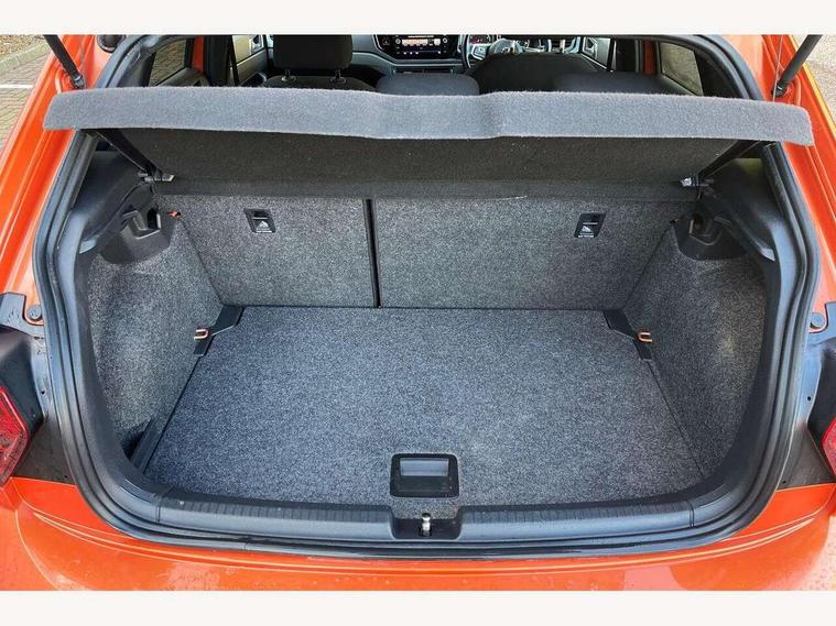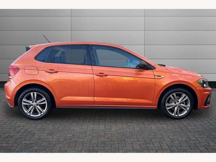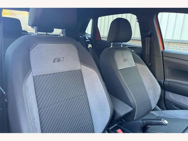 App-Connect, Bluetooth Telephone preparation, Driver alert system, Multifunction colour display, PAS - speed related, Service interval indicator, Start/stop system, Trip computer, Warning buzzer and light for front seatbelts unfastened, Battery regeneration during braking, 6 speakers, Composition media system with radio, glovebox mounted CD, colour touch screen, SD card, aux-in, USB, multimedia interface, DAB Digital radio, Automatic dimming interior rear view mirror with rain sensor, Automatic headlamp activation, Black grille with chrome surround, Black radiator grille with chrome insert, Body colour bumpers, Body colour door handles, Body colour rear spoiler, Body coloured side sills, Chrome insert to lower bumper, Chrome trimmed front air intake surrounds, Electric folding door mirrors, Electric front windows, Electric operated/heated door mirrors, Front fog lights including static cornering, Front wash/wipe with interval delay, Fully galvanised body, Heated rear window with auto timer, High level 3rd brake light, LED darkened rear light clusters, LED daytime running lights, LED rear number plate lights, Manual coming/automatic leaving home lighting function, R Line body kit, Rear diffuser, Rear electric windows, Rear windscreen washer and wiper with interval delay, Stainless steel door sill protection, Twin chrome exhaust tailpipes, 12V power socket in centre console, 2 bag hooks in luggage compartment, 2 cupholders, 3 rear head restraints, 3 spoke steering wheel, 60/40 split folding rear seat, Ambient lighting, Carbon flag cloth upholstery, Chrome-plated electric window button surround, Driver/front passenger seat height adjustment + underseat drawers, Driver/passenger sunvisors with illuminated vanity mirrors, Dust/pollen filter, Front + rear carpet mats, Front centre armrest with storage compartment, Front seat backrest storage nets, Front sport seats, Front/rear reading lights, Glovebox, Handbrake grip button in chrome effect, Height/reach adjustable steering column, Instrument lighting, white adjustable panel illumination, Interior light with delay, Isofix Preparation 2 Rear child seats, Jack and tool kit, Leather multifunction steering wheel, LED footwell lights, Luggage compartment cover, removable, Luggage compartment lighting, Matt chrome gear lever gaiter surround, R Line badge, Stainless steel pedals, Storage compartment in front doors, Storage compartment in rear doors, Storage compartment under front seats, Titanium black headlining, Titanium black roof lining, Variable boot floor, Variable Luggage compartment, Light and sight pack - Polo, R Line styling pack - Polo, 3 point height adj front seatbelts + pretensioners, 3x3 point rear seatbelts, ABS, Automatic post collision braking, Driver/front passenger airbag, Driver/Passenger whiplash optimised head restraints, ESP with EDL + ASR, Front and rear passengers curtain airbag system including front side airbags, Front passenger airbag deactivation, Front/rear disc brakes, HBA (Hydraulic Brake Assist), Hill hold control, Two tone horn, Tyre pressure monitoring system, Alarm with remote central locking and interior protection, Electronic engine immobiliser, Chrome plated electric mirror adjustment light switch surround, Cortina silver air vent surround, Matt chrome interior trim, Snow shadow steel dashboard pads, Steering wheel aluminium inserts, Space saver spare wheel,