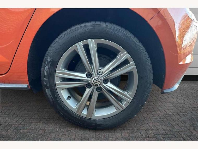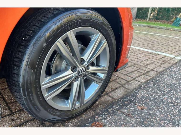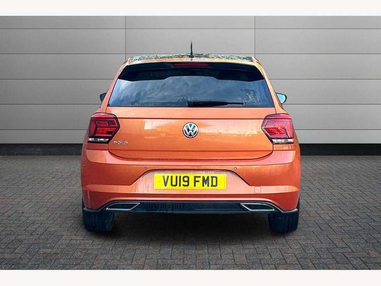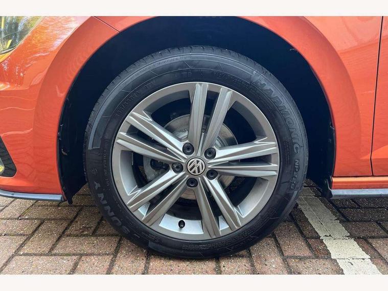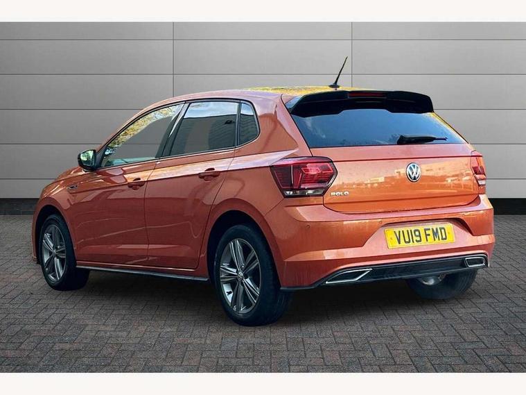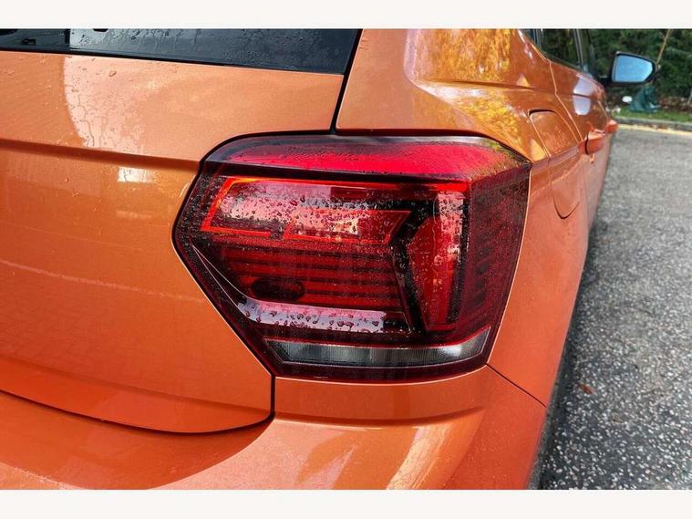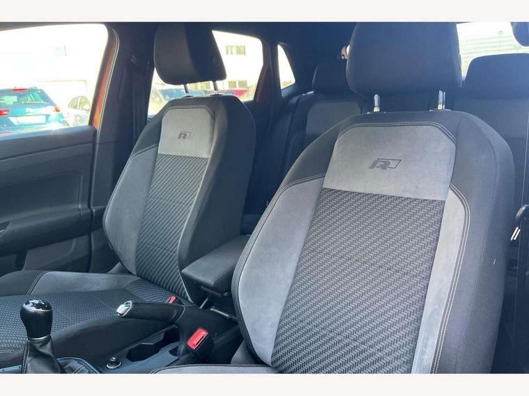 App-Connect, Bluetooth Telephone preparation, Driver alert system, Multifunction colour display, PAS - speed related, Service interval indicator, Start/stop system, Trip computer, Warning buzzer and light for front seatbelts unfastened, Battery regeneration during braking, 6 speakers, Composition media system with radio, glovebox mounted CD, colour touch screen, SD card, aux-in, USB, multimedia interface, DAB Digital radio, Automatic dimming interior rear view mirror with rain sensor, Automatic headlamp activation, Black grille with chrome surround, Black radiator grille with chrome insert, Body colour bumpers, Body colour door handles, Body colour rear spoiler, Body coloured side sills, Chrome insert to lower bumper, Chrome trimmed front air intake surrounds, Electric folding door mirrors, Electric front windows, Electric operated/heated door mirrors, Front fog lights including static cornering, Front wash/wipe with interval delay, Fully galvanised body, Heated rear window with auto timer, High level 3rd brake light, LED darkened rear light clusters, LED daytime running lights, LED rear number plate lights, Manual coming/automatic leaving home lighting function, R Line body kit, Rear diffuser, Rear electric windows, Rear windscreen washer and wiper with interval delay, Stainless steel door sill protection, Twin chrome exhaust tailpipes, 12V power socket in centre console, 2 bag hooks in luggage compartment, 2 cupholders, 3 rear head restraints, 3 spoke steering wheel, 60/40 split folding rear seat, Ambient lighting, Carbon flag cloth upholstery, Chrome-plated electric window button surround, Driver/front passenger seat height adjustment + underseat drawers, Driver/passenger sunvisors with illuminated vanity mirrors, Dust/pollen filter, Front + rear carpet mats, Front centre armrest with storage compartment, Front seat backrest storage nets, Front sport seats, Front/rear reading lights, Glovebox, Handbrake grip button in chrome effect, Height/reach adjustable steering column, Instrument lighting, white adjustable panel illumination, Interior light with delay, Isofix Preparation 2 Rear child seats, Jack and tool kit, Leather multifunction steering wheel, LED footwell lights, Luggage compartment cover, removable, Luggage compartment lighting, Matt chrome gear lever gaiter surround, R Line badge, Stainless steel pedals, Storage compartment in front doors, Storage compartment in rear doors, Storage compartment under front seats, Titanium black headlining, Titanium black roof lining, Variable boot floor, Variable Luggage compartment, Light and sight pack - Polo, R Line styling pack - Polo, 3 point height adj front seatbelts + pretensioners, 3x3 point rear seatbelts, ABS, Automatic post collision braking, Driver/front passenger airbag, Driver/Passenger whiplash optimised head restraints, ESP with EDL + ASR, Front and rear passengers curtain airbag system including front side airbags, Front passenger airbag deactivation, Front/rear disc brakes, HBA (Hydraulic Brake Assist), Hill hold control, Two tone horn, Tyre pressure monitoring system, Alarm with remote central locking and interior protection, Electronic engine immobiliser, Chrome plated electric mirror adjustment light switch surround, Cortina silver air vent surround, Matt chrome interior trim, Snow shadow steel dashboard pads, Steering wheel aluminium inserts, Space saver spare wheel,