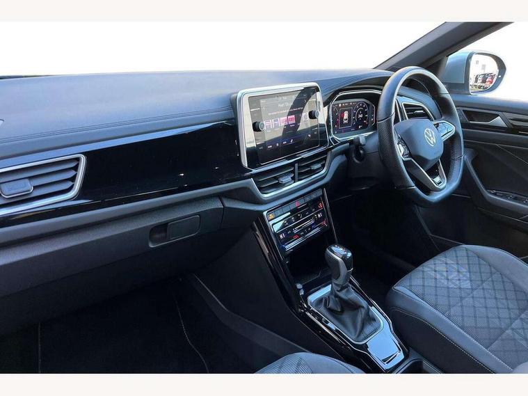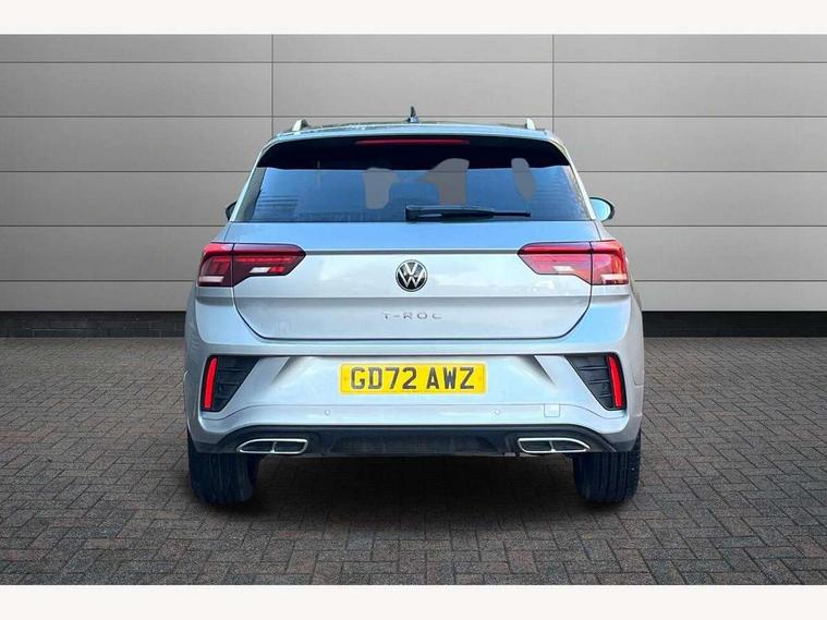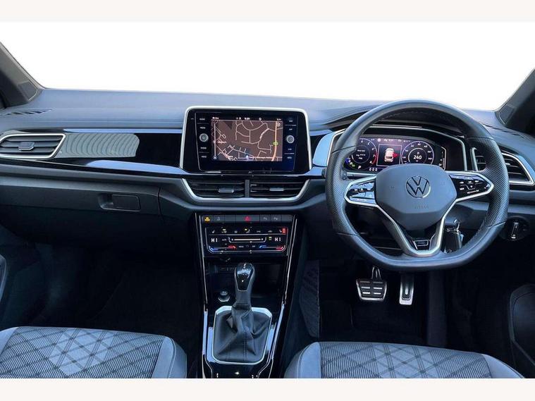 10.25" Digital cockpit pro, Bluetooth mobile phone interface, Driver alert system with fatigue detection, Driver tips and journey analysis, Emergency call service, Lane keeping system Lane Assist, Modified key software - reduce switch off time for key status change to Long no motion, Online services, Park assist including front and rear parking sensors, Service interval indicator, Tailgate/trunk lid release from outside, Think blue trainer driver tips and journey analysis, Warning sound and light for front seatbelts unfastened, Wireless app connect, Battery regeneration during braking, Start/stop function with battery regeneration, Diversity antenna for FM reception, Front and rear 6 speakers, Music playback - MP3, WMA and AAC files, Premium USB cable in choice of either Apple or Android smartphone compatibility, SD card slot, Simultaneous pairing of 2 compatible mobile devices, Title and cover art display, We Connect and We Connect Plus functionality, 3rd brake light, Auto dimming interior rear view mirror, Automatic hazard lights activation under emergency braking, Automatic headlight control with LED separate daytime running lights with coming/leaving home function, Extended roof spoiler, Exterior mirrors aspherical on driver side, convex on front passenger side, External USB type C socket and charging sockets, Front windscreen wiper with intermittent wipe and 4 position delay, Heated rear window, LED Plus headlamps, LED rear combination lamps, LED rear number plate lights, LED tail lamp rear comination lamps, Power windows with comfort operation and circuit breaker, R-Line design body coloured bumpers, Rain sensor, Rear exhaust tailpipe, Rear fog light on one side and reversing lights on both sides, Rear side wing doors, Rear wash/wipe with intermittent wipe setting, Remote electrically foldable door mirrors, puddle lights and reverse activated passenger's door mirror, 12V power socket in centre console, 3 rear head restraints, 3 seat bench in 2nd row, 4 load lashing points in luggage compartment, Air care climatronic air conditoning system with active combination filter and 2-zone temperature control, Black roof lining, Chrome plated radiator grille inserts, air vent surrounds and light switch surrounds, Door and side trim panel with leatherette insert, Drawer under drivers seat, Front + rear carpet mats, Front centre armrest, Front cupholders x 2, Front footwell illumination, Front reading light, Front scuff plates with R logo, Instrument lighting, white adjustable panel illumination, Interior ambient lighting and surround lighting, Interior light delay, Isofix child seat preparation, Leather gearshift handle, Load-through provision with cup holder when folded down ('Unsplit rear seat bench, split folding backrest, with centre armrest), Luggage compartment lighting, Single front passenger seat, Stainless steel pedals, Storage compartment in left and right luggage area, Storage compartment in rear doors, Storage compartments in driver and front passenger doors, Sunvisors with illuminated vanity mirrors, Variable boot floor, height adjustable and removable, Driver assistance pack without proactive passenger protection - T-Roc, 3 point height adj front seatbelts + pretensioners, 3 point seatbelts in outer rear with ECE label, ABS, Child locks on rear doors, Driver and front passenger airbag with front passenger airbag deactivation, Driver and front passenger safety-optimised head restraints, Drivers seatbelt reminder, Electronic parking brake, Electronic Stability Control (ESC) inc EDL (Electronic Differential Lock) and ASR (Traction Control), Front and rear passengers curtain airbag system including front side airbags, Front assist with city emergency braking and pedestrian monitoring, Front seat side impact airbags, Hill start assist, Predictive pedestrian protection, Rear disc brakes, Single tone horn, Tyre pressure loss indicator, Volkswagen roadside assistance, Alarm with interior protection, Anti-theft alarm system with interior monitoring, backup horn, and towing protection, Remote central locking with SAFELOCK, radio remote control with 2 remote control folding keys, Trims for alloy wheels,