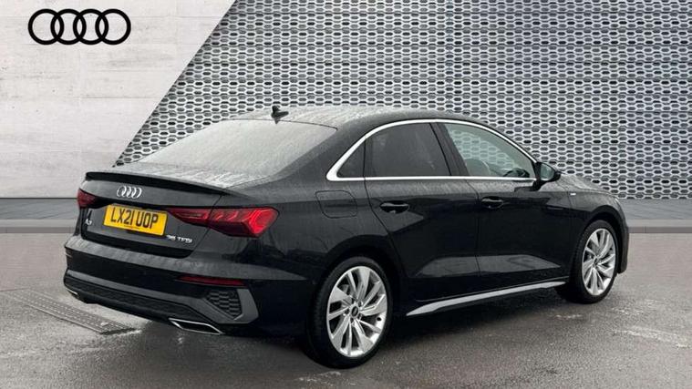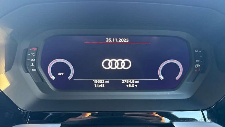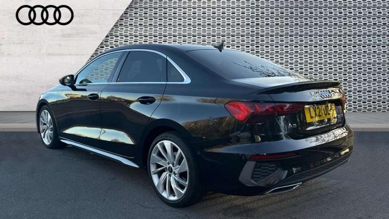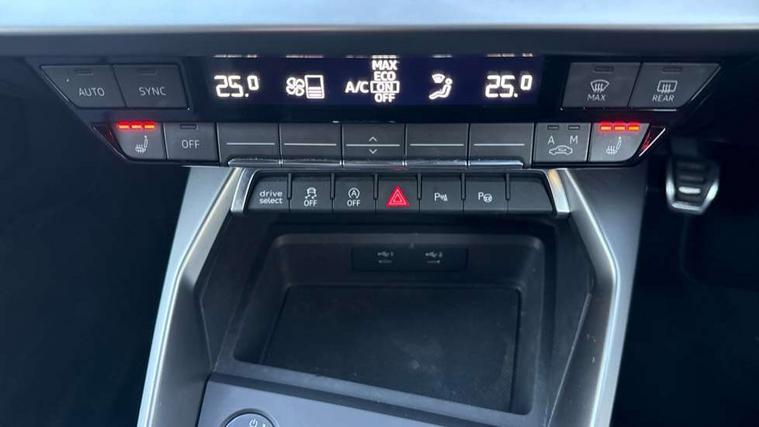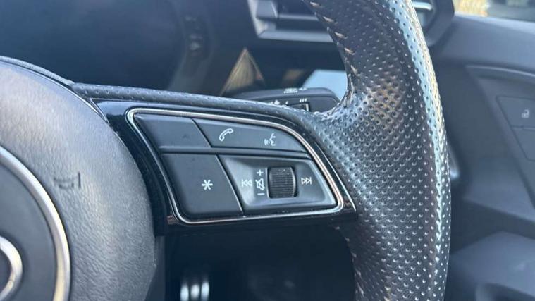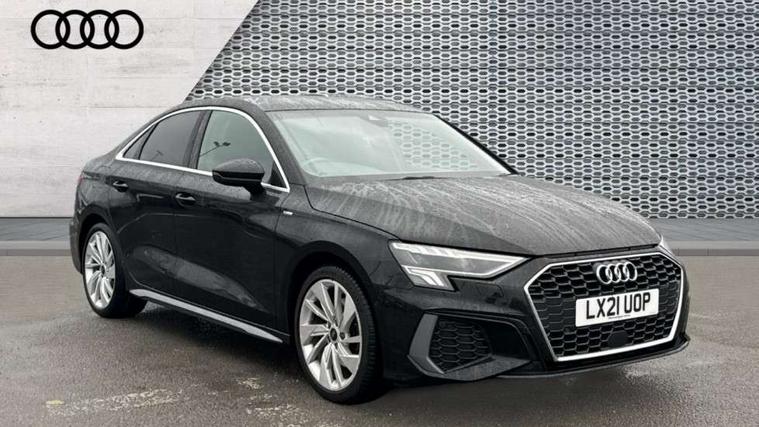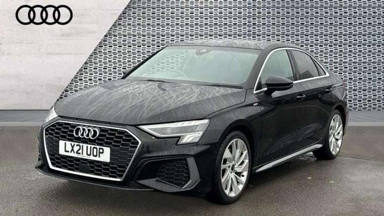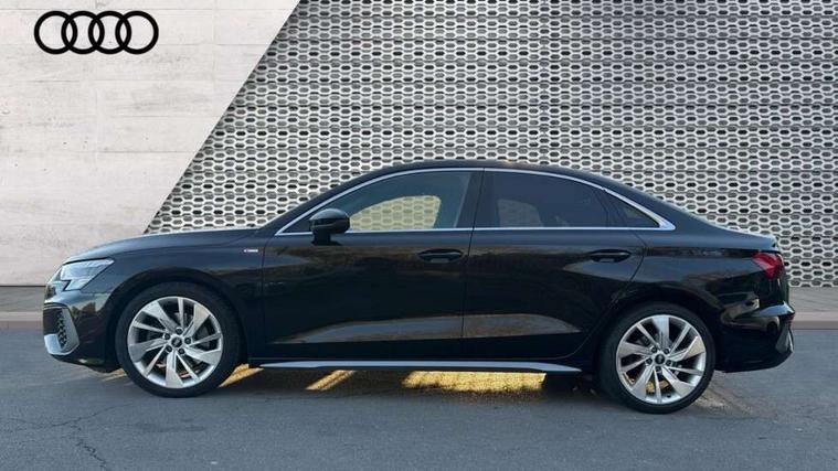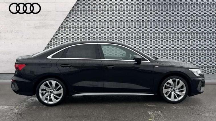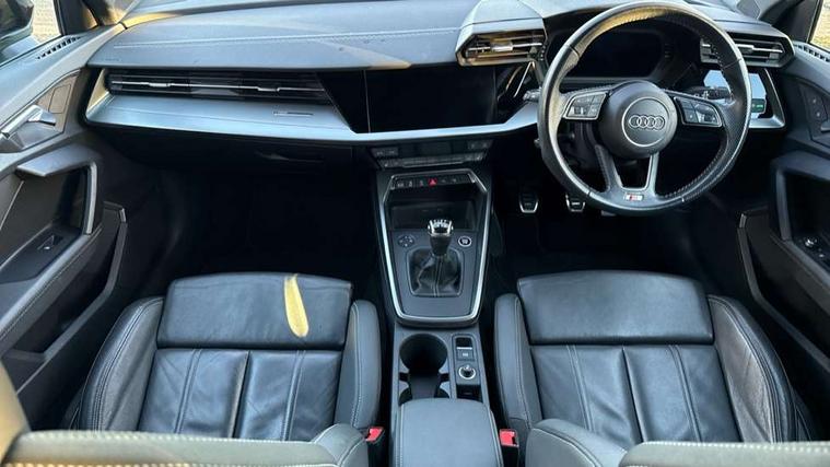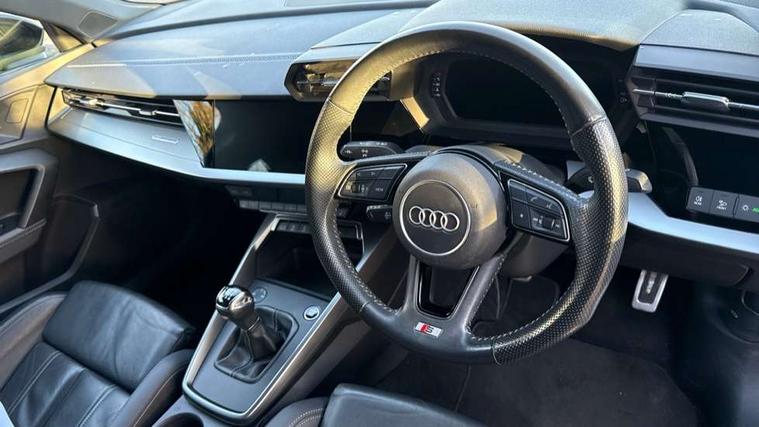 Aluminium air vent surrounds, Aluminium trim elements, Dark spectrum aluminium inlays, accent surfaces in the dashboard and centre console in platinum grey silk effect paint finish, Aluminium interior elements pack - A3 Saloon, S line styling pack - A3 Saloon, 3x3 point rear seat belts, Driver and front passenger airbag with passenger airbag deactivation, Electronic Stabilisation Control (ESC) including ABS, ASR and EDL, First aid kit with warning triangle and 2 safety vests, Front side airbags with head airbags and interaction airbag, Hill hold assist, Pre-sense front with pedestrian and cyclist detection, Seatbelt monitoring, Tyre pressure loss indicator, Anti theft alarm, Anti-theft wheel bolts, Electronically operated child lock, Immobiliser, Remote control central locking, 6 passive loudspeakers, CD player, DAB Digital radio, Acoustic glass windscreen, Aluminium window trim, Auto dimming frameless rear view mirror, Electrically adjustable/heated/folding/dimming door mirrors with kerb view includes integrated LED indications + kerb view function for passenger side, Front electric windows, Illuminated door sills with aluminium inserts at the front with S logo, LED daytime running lights, Light and rain sensors, Model and engine designation badges at rear, Privacy glass - dark tinted rear window, rear door and side windows, Rear electric windows, S line bumpers, S roof spoiler, 12V socket and storage compartment in front centre console, 40/20/40 split folding rear seat bench with cupholder, Black cloth headlining, Dual zone electronic climate control, Front and rear centre armrest in leather, Front and rear headrests, Front/rear floor mats, Height and reach adjustable steering wheel, Interior lighting - glove compartment light and right hand side, Luggage compartment floor covering, Manual boot compartment lid, Manually adjustable front seats, Seat side bolsters, Stainless steel pedals and front footrest, Twin leather upholstery with front sports seats S embossed logo, 2x USB Type C ports (for charging and data transfer), Audi connect emergency call and service, Audi drive select (Auto, Comfort, Dynamic, Efficiency and Individual), Audi smartphone interface, Audi Virtual Cockpit - 10.25" digital and colour instrument cluster, Automatic start/stop system with recuperation, Bluetooth interface, Collision avoidance assistant, Cruise control + speed limiter, Electromechanical power speed sensitive steering, Lane departure warning system, MMI Navigation Plus with high resolution 10.1" colour touch screen display, Rear parking sensors, Service indicator, Voice control system with natural language interaction,