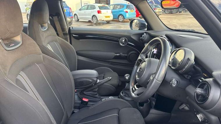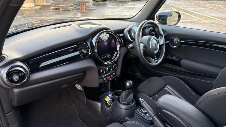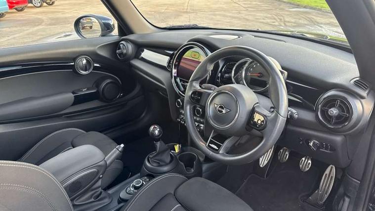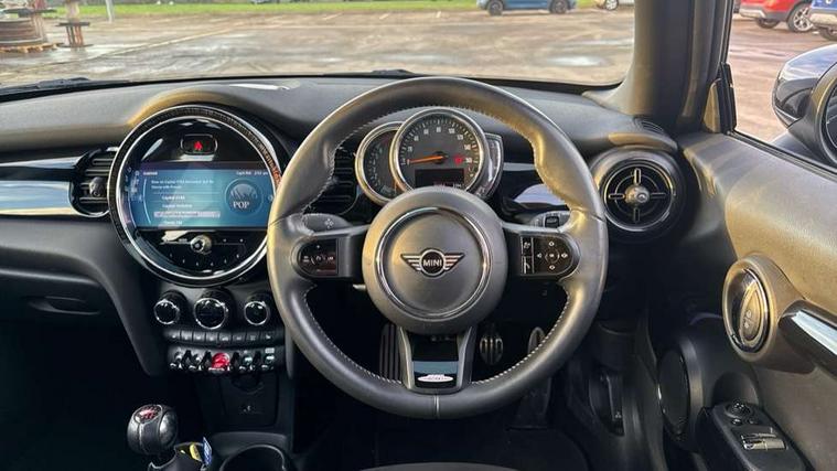 Apple CarPlay, Automatic start/stop function with brake energy recuperation, Compatible mobile phone bluetooth with audio streaming, Cruise control with brake assist, Electro-mechanical speed dependant steering assistance, Flexible car sharing preparation, Instrument cluster, MINI Driving Modes - centre toggle switch to control driving setting (sport, mid and green), Mini E-call, MINI TeleServices, On board computer, Rear park distance control, Service interval indicator, 6 Speed manual transmission including gear change indicator display, Double Vanos system, Fully variable valve control, High precision injection, Intelligent adaptive suspension, Performance Control, 8.8" touchscreen with LED ring, FM tuner and DAB digital radio, 3rd brake light, Automatic headlight activation switch, Body colour fuel filler cap, Chrome border high gloss black slats radiator grille, Dynamic brake lights, Electric front windows, Exhaust tailpipe on left with chrome finisher, Heated rear window, Heated windscreen washer jets, JCW Aerodynamic kit - Front and rear bumpers with sporty JCW styling and part-painted side sills with MINI John Cooper Works door sill finishers, John Cooper Works rear spoiler, LED headlight with closed ring and daytime driving lights, Metal door sill strips with MINI imprint, Model logo Cooper on right of tailgate, Rain sensor window wipers, Rear fog lights, Rear LED lights with union jack design, Rear window wiper, Side scuttle panel with integrated indicator, Sun/heat protection glass, White indicator lenses, 12V Accessory socket in centre console, 2 seat bench in 2nd row, 4 lashing eyes in luggage compartment, 60/40 split folding rear seat, Anthracite headliner including grab handles and clothes hooks, Carbon black colour line - Knee roll and door armrest, Chrome interior highlights, Cupholders, Front and rear isofix with front passenger airbag deactivation, Front floor mats in velour, Glove compartment, Height and length steering column adjustment, Interior lighting with 12 different colours across the dashboard, underneath door bezel with illuminated laser-engraved design on central display, JCW Sport seats with integrated headrests, adjustable thigh support and John Cooper Works logo, Leatherette gearshift lever and handbrake gaiters, LED reading lights, vanity mirror lights, front foot well light and spotlight on front seats, Manual air conditioning, Mechanical seat adjustment - forward/back & backrest for front seats and driver seat height adjust, Multifunction steering wheel, Passenger seat height adjuster, Single front passenger seat, Storage compartments in doors, Sunvisors with vanity mirrors, Walknappa leather steering wheel with grey seam and John Cooper Works badge on Piano Black lower steering wheel spoke, Piano black exterior pack - Mini Hatchback Cooper, 3 point seatbelts on all four seats, 6 Airbags - front, side, head and seat belt tensioners, Anti-lock braking system (ABS), DSC - Dynamic Stability Control, Front and rear disc brakes, Single tone fanfare horn, Tyre pressure monitoring system, Alarm system with tilt sensor, monitoring doors, bonnet interior and tailgate, Electronic vehicle immobiliser, Start/stop toggle with keyless go, Piano black interior trim, Tool kit,