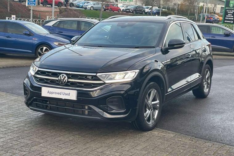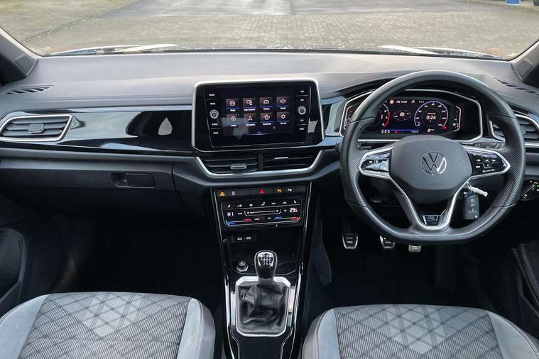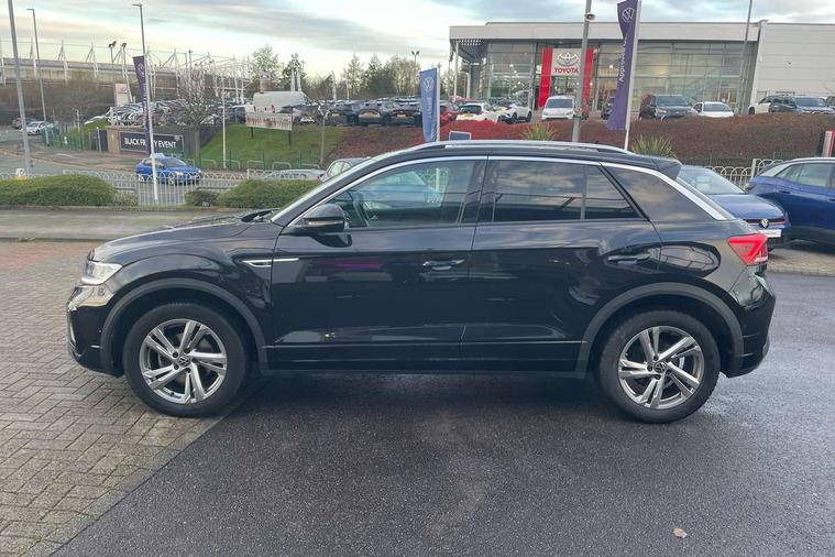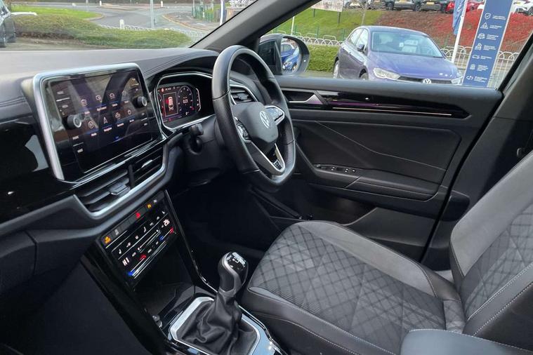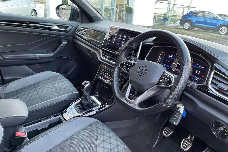 10.25" Digital cockpit pro, Bluetooth mobile phone interface, Driver alert system with fatigue detection, Driver tips and journey analysis, Emergency call service, Lane keeping system Lane Assist, Modified key software - reduce switch off time for key status change to Long no motion, Online services, Park assist including front and rear parking sensors, Service interval indicator, Tailgate/trunk lid release from outside, Think blue trainer driver tips and journey analysis, Warning sound and light for front seatbelts unfastened, Wireless app connect, Battery regeneration during braking, Start/stop function with battery regeneration, Diversity antenna for FM reception, Front and rear 6 speakers, Music playback - MP3, WMA and AAC files, Premium USB cable in choice of either Apple or Android smartphone compatibility, SD card slot, Simultaneous pairing of 2 compatible mobile devices, Title and cover art display, We Connect and We Connect Plus functionality, 3rd brake light, Auto dimming interior rear view mirror, Automatic hazard lights activation under emergency braking, Automatic headlight control with LED separate daytime running lights with coming/leaving home function, Extended roof spoiler, Exterior mirrors aspherical on driver side, convex on front passenger side, External USB type C socket and charging sockets, Front windscreen wiper with intermittent wipe and 4 position delay, Heated rear window, LED Plus headlamps, LED rear combination lamps, LED rear number plate lights, LED tail lamp rear comination lamps, Power windows with comfort operation and circuit breaker, R-Line design body coloured bumpers, Rain sensor, Rear exhaust tailpipe, Rear fog light on one side and reversing lights on both sides, Rear side wing doors, Rear wash/wipe with intermittent wipe setting, Remote electrically foldable door mirrors, puddle lights and reverse activated passenger's door mirror, 12V power socket in centre console, 3 rear head restraints, 3 seat bench in 2nd row, 4 load lashing points in luggage compartment, Air care climatronic air conditoning system with active combination filter and 2-zone temperature control, Black roof lining, Chrome plated radiator grille inserts, air vent surrounds and light switch surrounds, Door and side trim panel with leatherette insert, Drawer under drivers seat, Front + rear carpet mats, Front centre armrest, Front cupholders x 2, Front footwell illumination, Front reading light, Front scuff plates with R logo, Instrument lighting, white adjustable panel illumination, Interior ambient lighting and surround lighting, Interior light delay, Isofix child seat preparation, Leather gearshift handle, Load-through provision with cup holder when folded down ('Unsplit rear seat bench, split folding backrest, with centre armrest), Luggage compartment lighting, Single front passenger seat, Stainless steel pedals, Storage compartment in left and right luggage area, Storage compartment in rear doors, Storage compartments in driver and front passenger doors, Sunvisors with illuminated vanity mirrors, Variable boot floor, height adjustable and removable, Driver assistance pack without proactive passenger protection - T-Roc, 3 point height adj front seatbelts + pretensioners, 3 point seatbelts in outer rear with ECE label, ABS, Child locks on rear doors, Driver and front passenger airbag with front passenger airbag deactivation, Driver and front passenger safety-optimised head restraints, Drivers seatbelt reminder, Electronic parking brake, Electronic Stability Control (ESC) inc EDL (Electronic Differential Lock) and ASR (Traction Control), Front and rear passengers curtain airbag system including front side airbags, Front assist with city emergency braking and pedestrian monitoring, Front seat side impact airbags, Hill start assist, Predictive pedestrian protection, Rear disc brakes, Single tone horn, Tyre pressure loss indicator, Volkswagen roadside assistance, Alarm with interior protection, Anti-theft alarm system with interior monitoring, backup horn, and towing protection, Remote central locking with SAFELOCK, radio remote control with 2 remote control folding keys, Trims for alloy wheels,