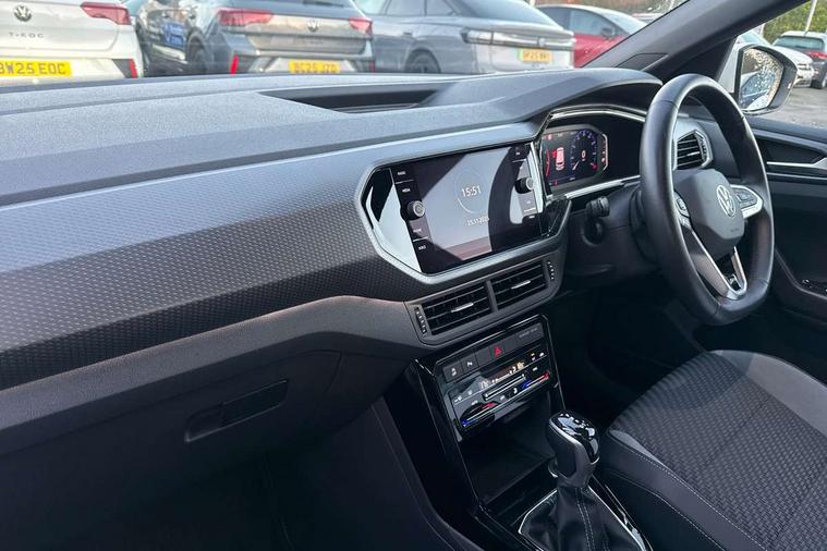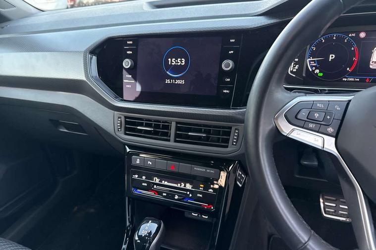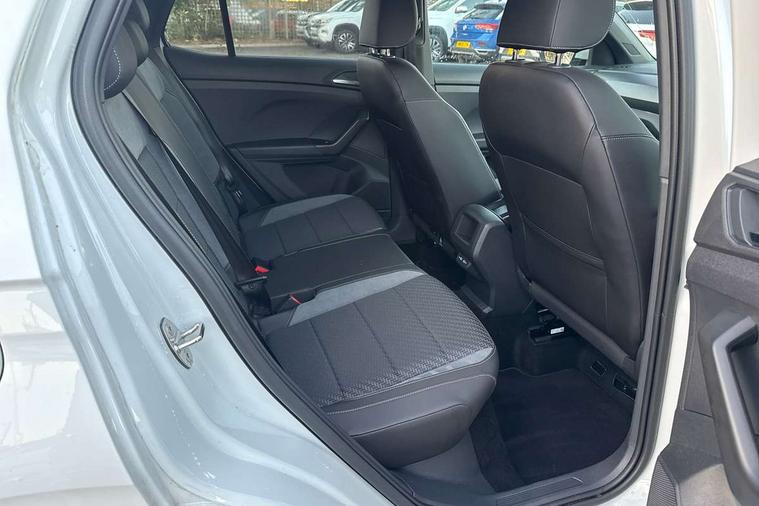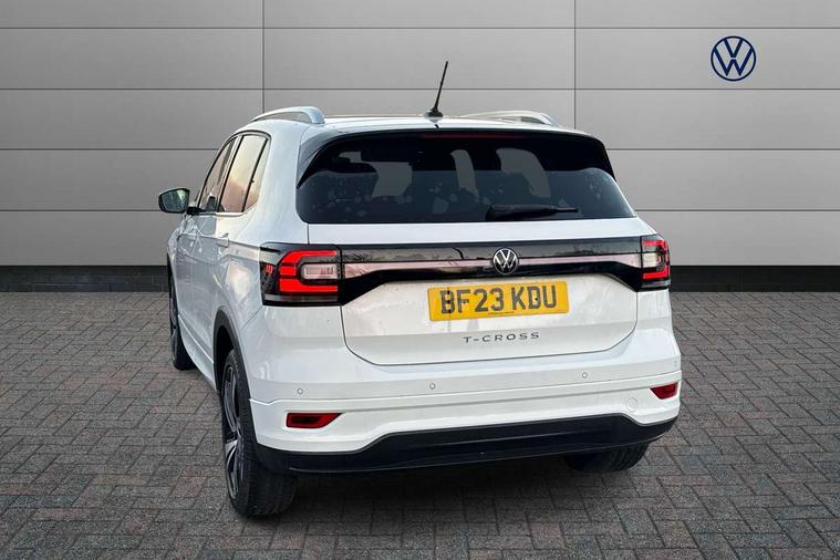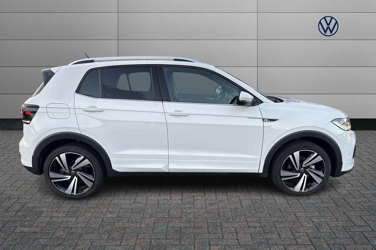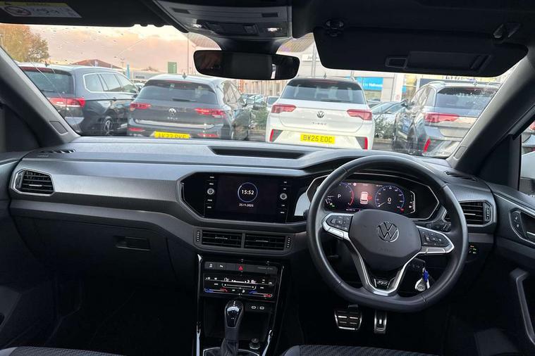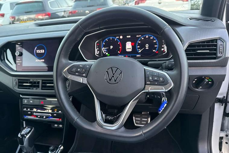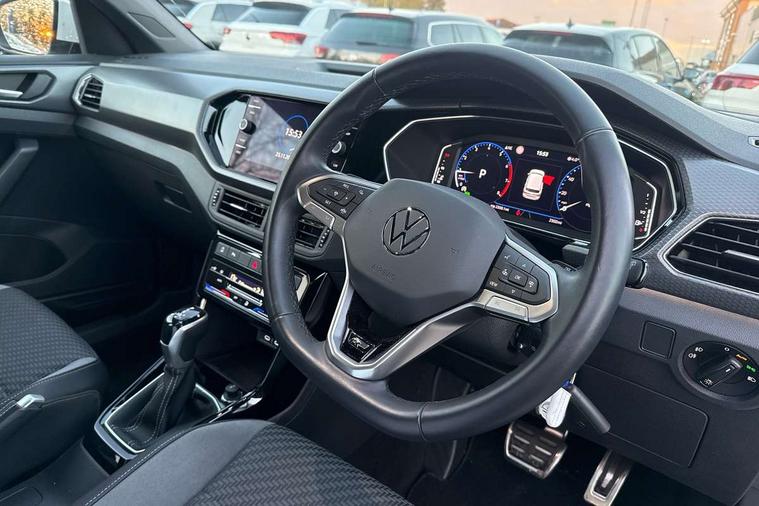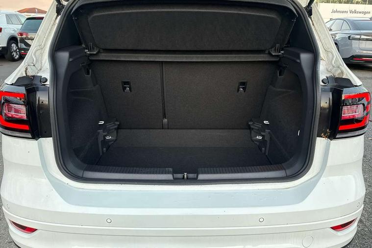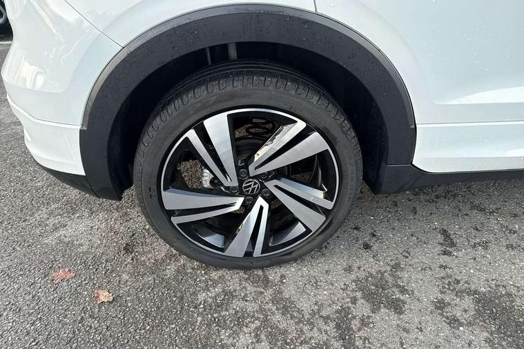 'Lights On' Reminder warning buzzer, 2D/3D map view, Active info display - 10.25" High resolution TFT dash display screen, Adaptive cruise control including front assist, forward collision warning, autonomous emergency braking, speed limiter, Blind spot monitoring, Bluetooth telephone and audio connection for compatible devices, Car information display, Driver alert system, eCall emergency call system, Lane assist, Low washer fluid warning light, Multifunction computer with visual gear change recommendation for fuel consumption, Operating permit alteration, Power assisted speed sensitive steering, Speed limit display, Speedo, rev counter, electronic odometer, trip, service interval display, exterior temperature and fuel gauge, Stop/start system, Warning sound and light for doors and tailgate open, Warning sound and light for front seatbelts unfastened, We connect plus preparation, Wireless Car net app connect with Apple CarPlay, combined functionality of Apple CarPlay/Android Auto and MirrorLink, Battery regeneration during braking, Misfuel prevention device, 2x USB connection with USB charging sockets and in rear centre console, DAB Digital radio receiver, Diversity antenna for FM reception, Multi device interface (MDI) with USB connection, Music playback - MP3, WMA and AAC files, Premium USB cable for Apple or Android smartphone compatibility, Simultaneous pairing of 2 compatible mobile devices, SMS Functionality, Three route options - Fast, Short, Eco, Title and cover art display, Automatic hazard lights activation under emergency braking, Body colour door handles, Body colour door mirrors with integrated indicators, Body colour rear roof spoiler, Body coloured bumpers, Dusk sensor + automatic driving lights, Electrically foldable, adjustable and heated door mirrors with reverse activated kerb view adjustment on passenger's side, Front and rear electric windows, Front fog lights with static cornering function, Galvanised body, Heated rear window, LED third brake light, Lower door sills and door pillars in black, Radiator grille with chrome trim and chrome bezel front fog lamp, Rear fog light on one side, reversing light on both sides, Rear lights incorporating LED technology, Rear side wing doors, Rear tinted glass 65% approx light absorbing from B pillar backwards, Rear window aerial, Rear windscreen washer and wiper with interval delay, Reflectors in all doors, Silver roof rails, Stainless steel door sill protection, Tailgate with integrated roof spoiler, Unique R Line badging, Windscreen wipers/ intermittent wipe + 4 position delay, 12V Accessory socket in centre console, 2 Front and rear reading lights incorporating LED technology, 2 Zone electronic climate control with automatic air recirculation, 3 rear head restraints and 3 rear three point seat belts with ECE label, 3 seat bench in 2nd row, 60/40 split folding rear seat backrest, Ambient lighting and sourround lighting, Black headlining, Branded points of interest, Brushed stainless steel pedals, Carbon flag cloth upholstery, Drawer under drivers seat, Driver and front passenger sunvisor with vanity mirror, Driver's sunvisor with ticket holder, Dust and pollen filter, Front and rear carpet mats with contrast stitching, Front centre armrest with storage compartment, Front footwell illumination, Front seat back storage pockets, Front seat R Line logo with rear seat backrest, Front sports seat with height and lumbar adjustment, Glovebox, Heating and fresh air system with 4 stage blower, Height/reach adjust steering wheel, Instrument lighting white adjustable panel illumination, Interior light with delay, Isofix child seat preparation for 2 rear child seats, Leather trimmed three spoke multifunction steering wheel with contrast stitching and aluminium inserts with R Line logo, Luggage compartment cover, Luggage compartment lighting, Moveable and foldable Rear bench seat, Scuff plates in door apertures, Steering wheel paddle shift, Storage compartment in drivers and front passengers door, Variable boot floor, R Line styling pack - T-cross, 3-point seat belts in front with electric tensioner + height adjustment, Anti-lock Braking System (ABS) with Hydraulic Brake Assist (HBA), Automatic post collision braking system, Driver and front passenger safety-optimised head restraints, Drivers and Front Passengers airbags with front passengers airbag deactivation switch, ESC with EDL, ASR, EDTC and trailer stabilisation function, Front and rear curtain airbags, Front seat side impact airbags, Hill start assist, Pre crash preventive occupant protection, Proactive passenger protection system in combination with front assist, Rear door child safety locks, Rigid safety cell with front and rear crumple zones, Single torn horn, Tyre pressure loss indicator, Volkswagen roadside assistance, Alarm with interior protection and deactivation via infotainment system, Child security locks in rear doors, Electronic engine immobiliser, Remote tailgate unlocking using key fob, Race decorative inserts in dash and doors, 18" Nevada black alloy wheels, Breakdown kit,