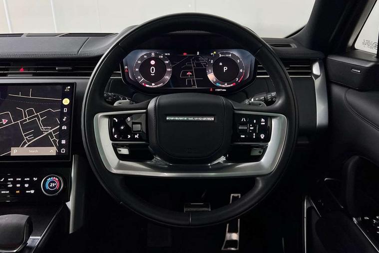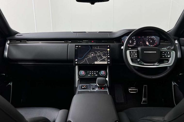 13.1" Touchscreen, 3D surround camera inc frwd traffic detection, vehicle clearance guidance, 3D view, clearsight ground view, manoevure light, 360 parking aid, wade sensing, Adaptive cruise control with steering assist, All Terrain Info Centre, All wheel steering, Android Auto, Apple car play, Blind spot assist, Bluetooth connectivity streaming, Driver condition response, Eco mode, Electric power assisted steering (EPAS), Emergency call service, Front and rear parking aid, Head up Display, Interactive driver display, Lane keep assist, Powered gesture tailgate/boot lid, Rear collision monitor, Rear traffic monitor, Remote, Traffic sign recognition with adaptive speed limiter, Wi-Fi Enabled with data plan, Wireless device charging with phone signal booster, 8 speed automatic transmission, Active damper technology system, Adaptive dynamics, All terrain progress control, All Wheel Drive (AWD), Automatic access height, Terrain Response 2 Auto, Twin speed transfer box, Digital Audio Broadcast radio-DAB, Pivi pro including smart settings, Connected navigation pro, nuance speech, USB socket, Acoustic laminated windscreen, Animated directional indicators, Automatic headlights, Automatic levelling headlights, Centre high mounted stop light, ClearSight interior rear view mirror, Electric windows with one touch open/close and anti trap, Flush deployable exterior door handles, Front and rear recovery eyes, Front fog lights, Headlamp power wash, Heated rear window, Heated washer jets, LED tail lights, Power fold, auto-dimming, heated door mirrors with approach lights, Rain sensing windscreen wipers, Range rover badge, Rear boot, Rear fog lights, Rear side wing doors, Rear wash/wipe, Side repeater indicators in mirror, Trailer stability assist, Winter wiper park position, 12V power sockets, 3 seat bench in 2nd row, Air quality sensor, Bright metal pedals, Cabin air purification pro, Cabin lighting, Customer configurable single point entry, Driver and passenger front seat armrests, Easy boot loading, Ebony Carpet, Front and rear cupholders, Front and rear grab handles, Front head restraints, Gearshift paddles, Heated steering wheel, Hook in load space, Loadspace light, Luggage tie down in loadspace, Multifunction steering wheel, Rear centre armrest, Rear head restraints, Rear ISOFIX, Single front passenger seat, Twin blade sunvisors with Illuminated vanity mirrors, Upper and lower glovebox, Online pack with data plan - Range Rover, 3x3 point rear seat belts, Anti-lock braking system (ABS), Brake hold function, Cornering brake control (CBC), Customer configurable autolock, DSC - Dynamic Stability Control, Electronic brake force distribution, Electronic parking brake, Electronic traction control, Emergency brake assist, Emergency braking, Front airbags with passenger seat occupant detector, Front side airbags, Hill descent control, Hill launch assist, Illuminated seat belt buckles, Low traction launch, Occupant protection assist, Power operated child locks, Roll stability control, Tyre pressure monitoring system (TPMS), Immobiliser, Intrusion sensor and alarm, Keyless entry, Locking wheel nuts, Remote central locking, Noble chrome controls,